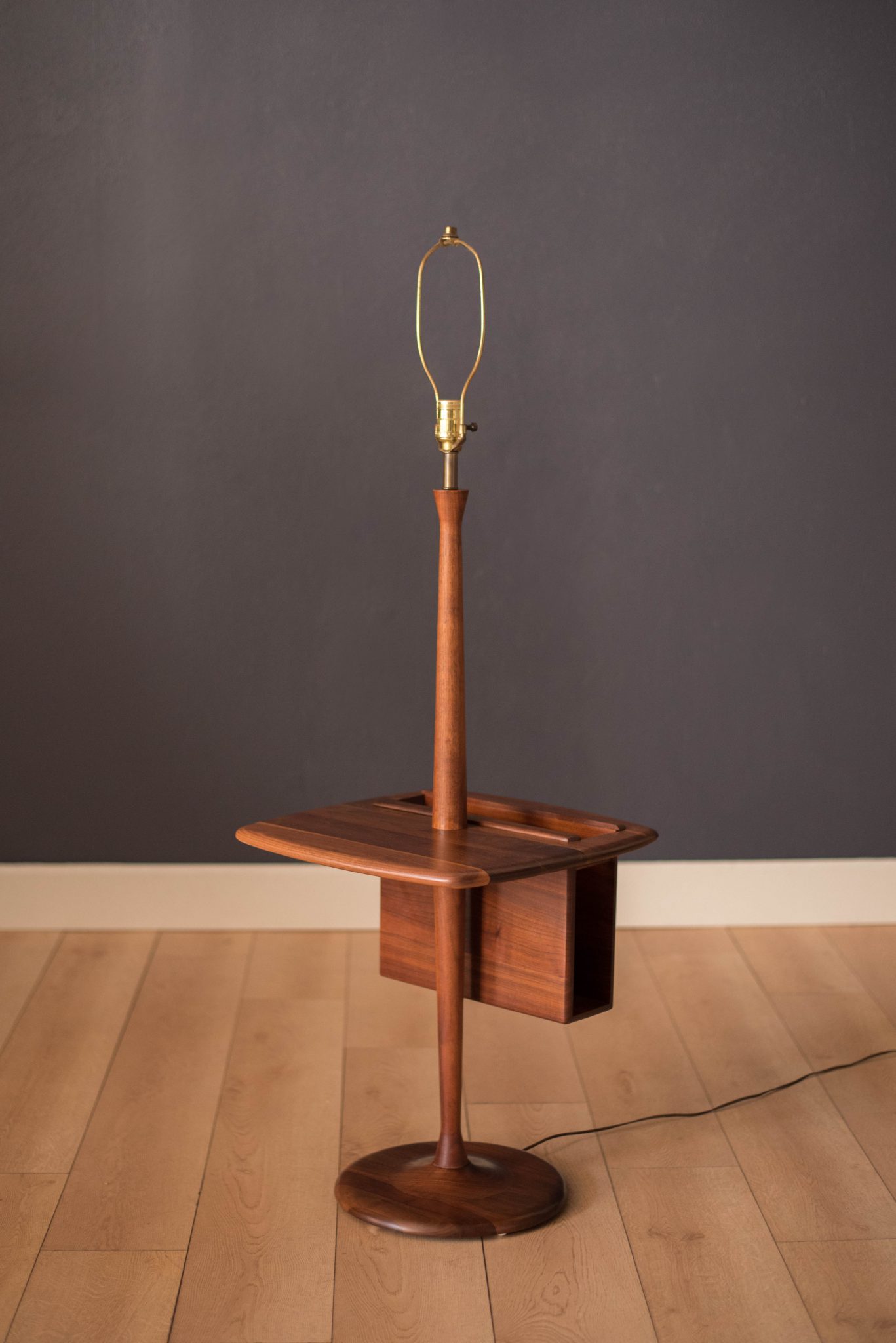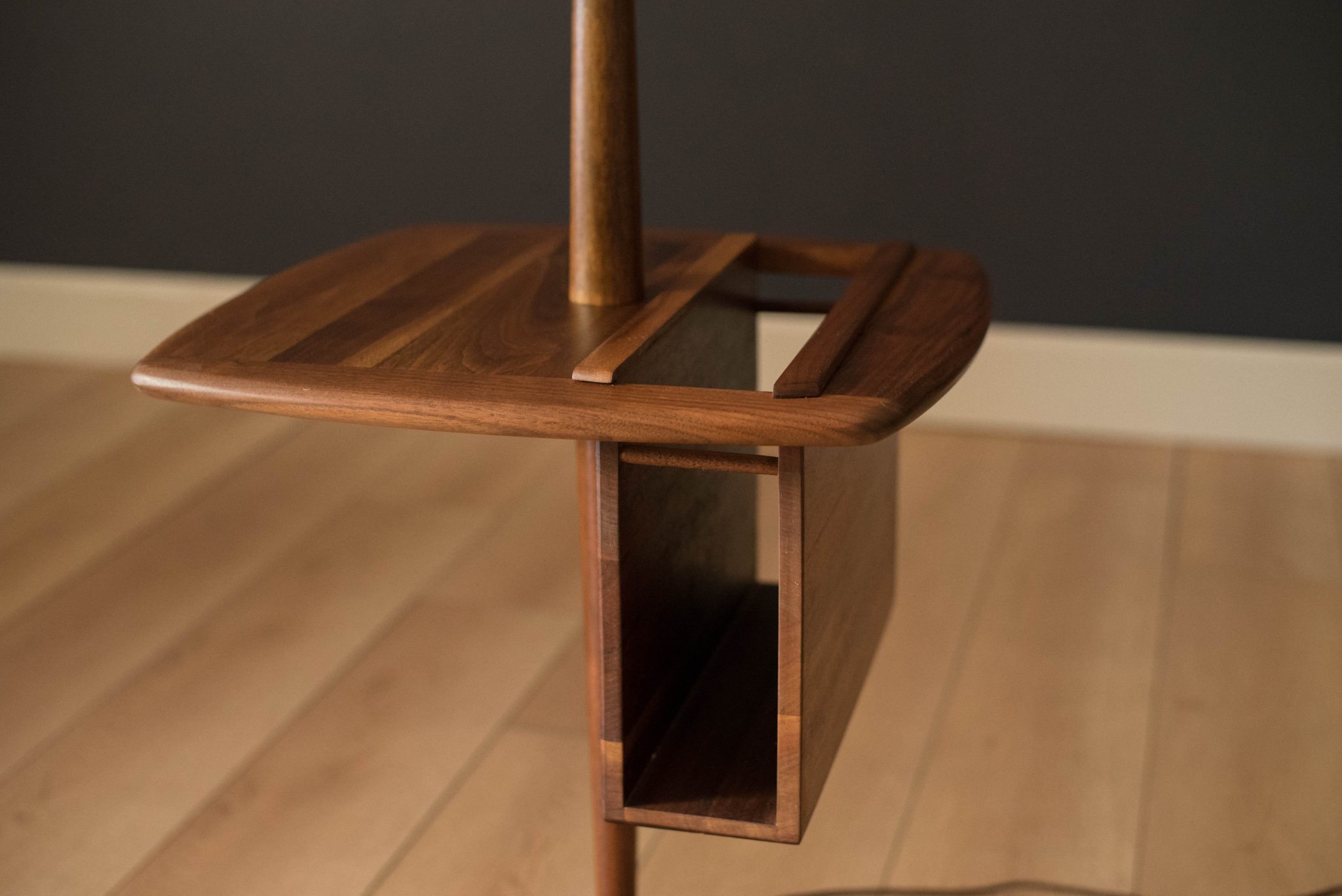 Mid Century Walnut Laurel Floor Lamp with Magazine Rack