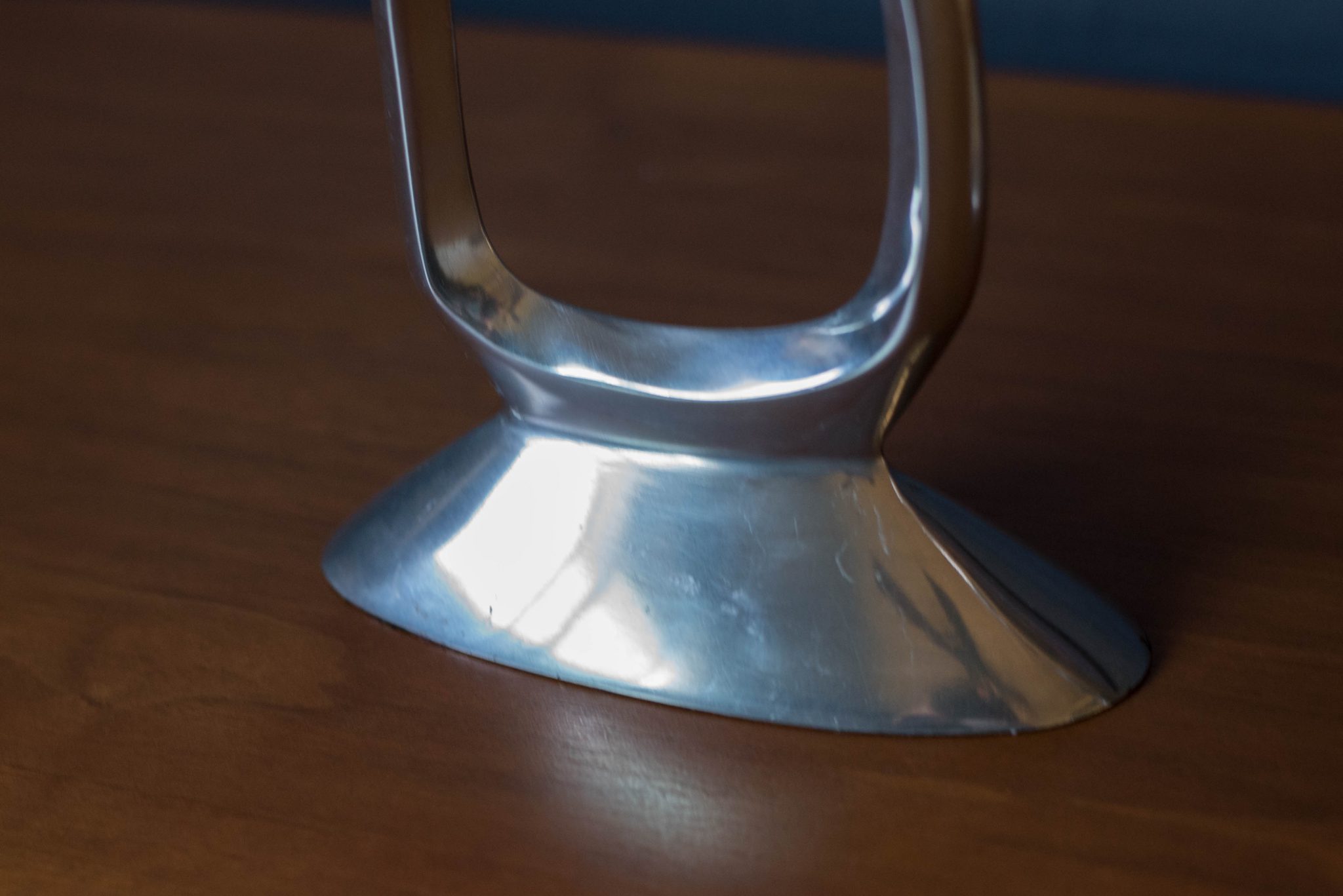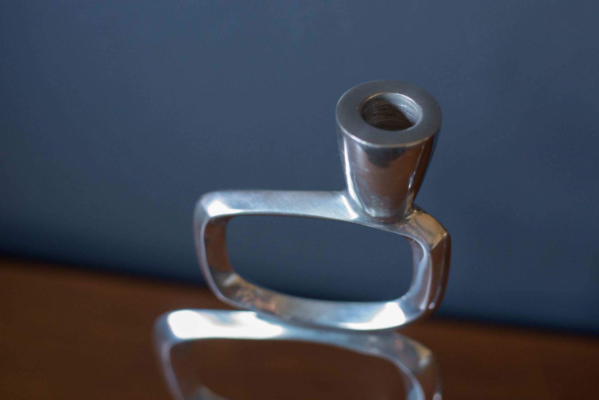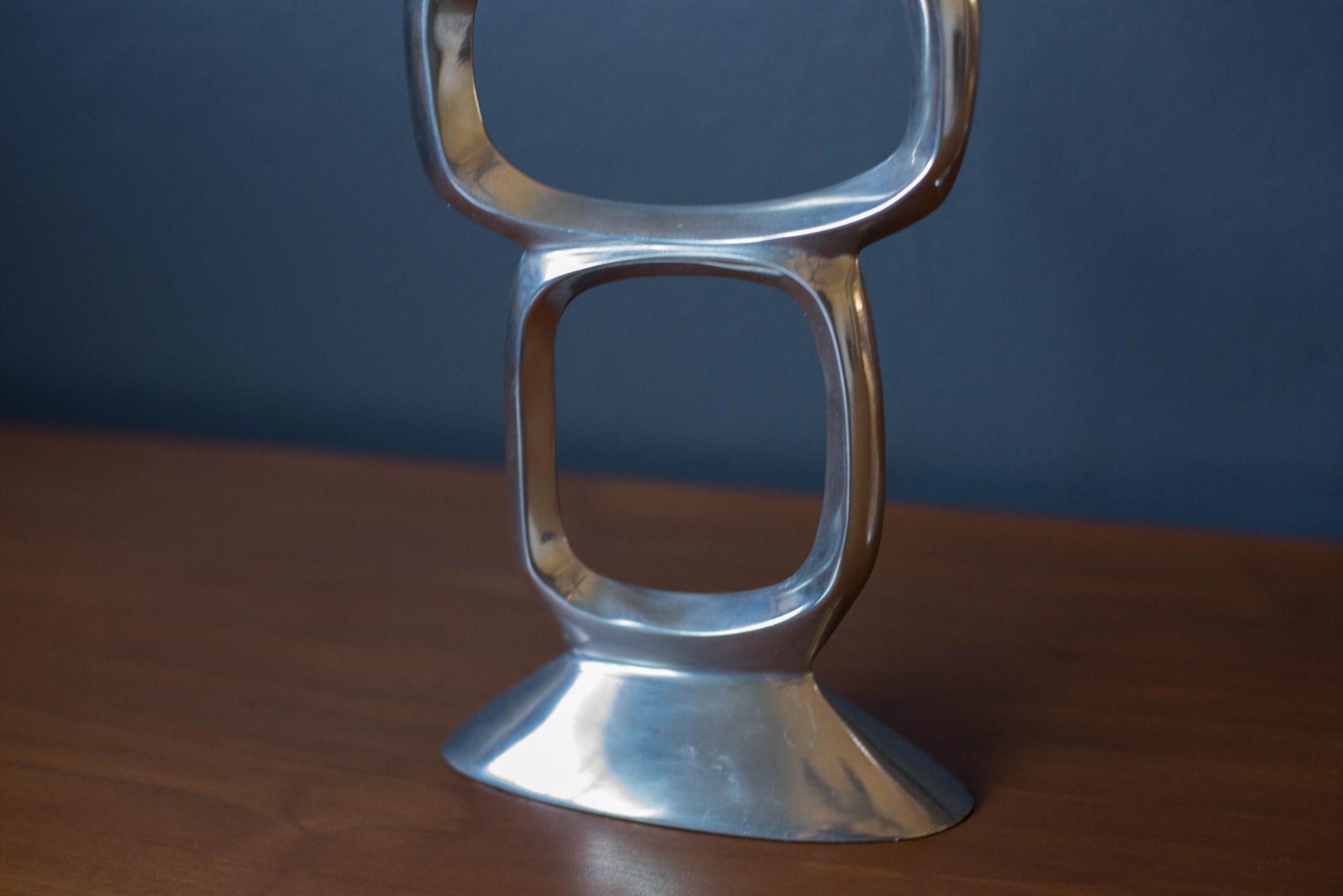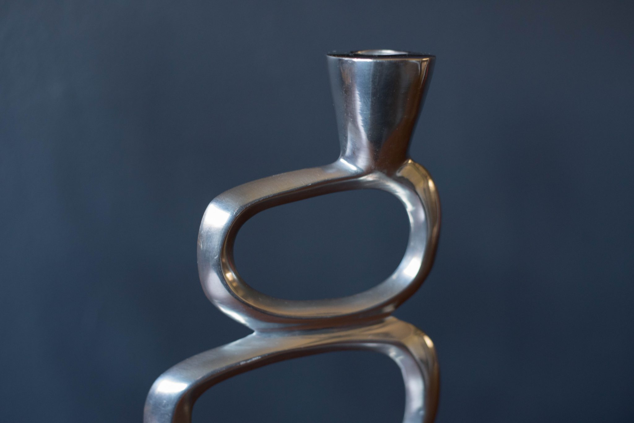 Vintage set of abstract taper candle holders designed with a sculptural modernist form circa 1970s. This set is made of aluminum and includes two different sizes. Price is for the pair. Fits .75″ diameter taper candles.