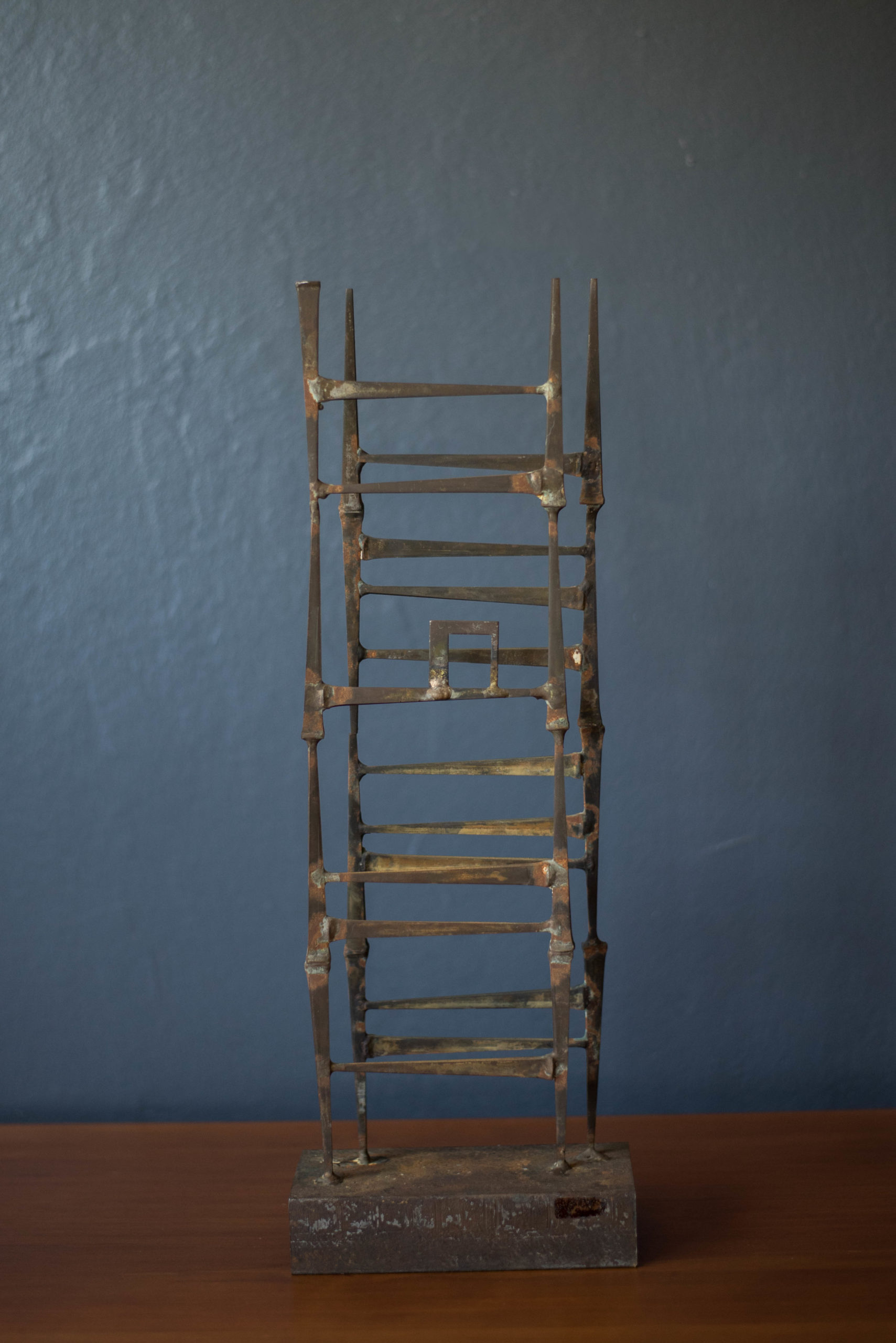 Vintage Brutalist abstract metal nail sculpture c. 1970’s. This decorative accent piece adds depth and character to any space constructed of welded metal nails that display plenty of vintage patina.