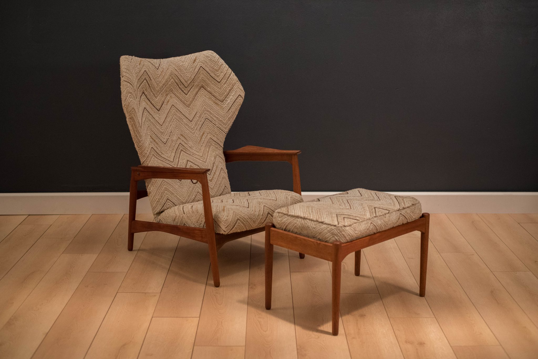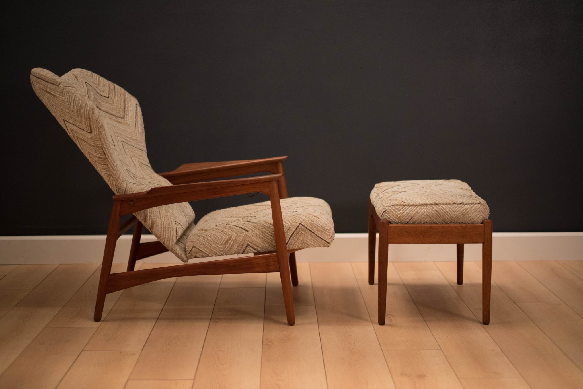 Danish Ib Kofod-Larsen Reclining Lounge Chair and Ottoman