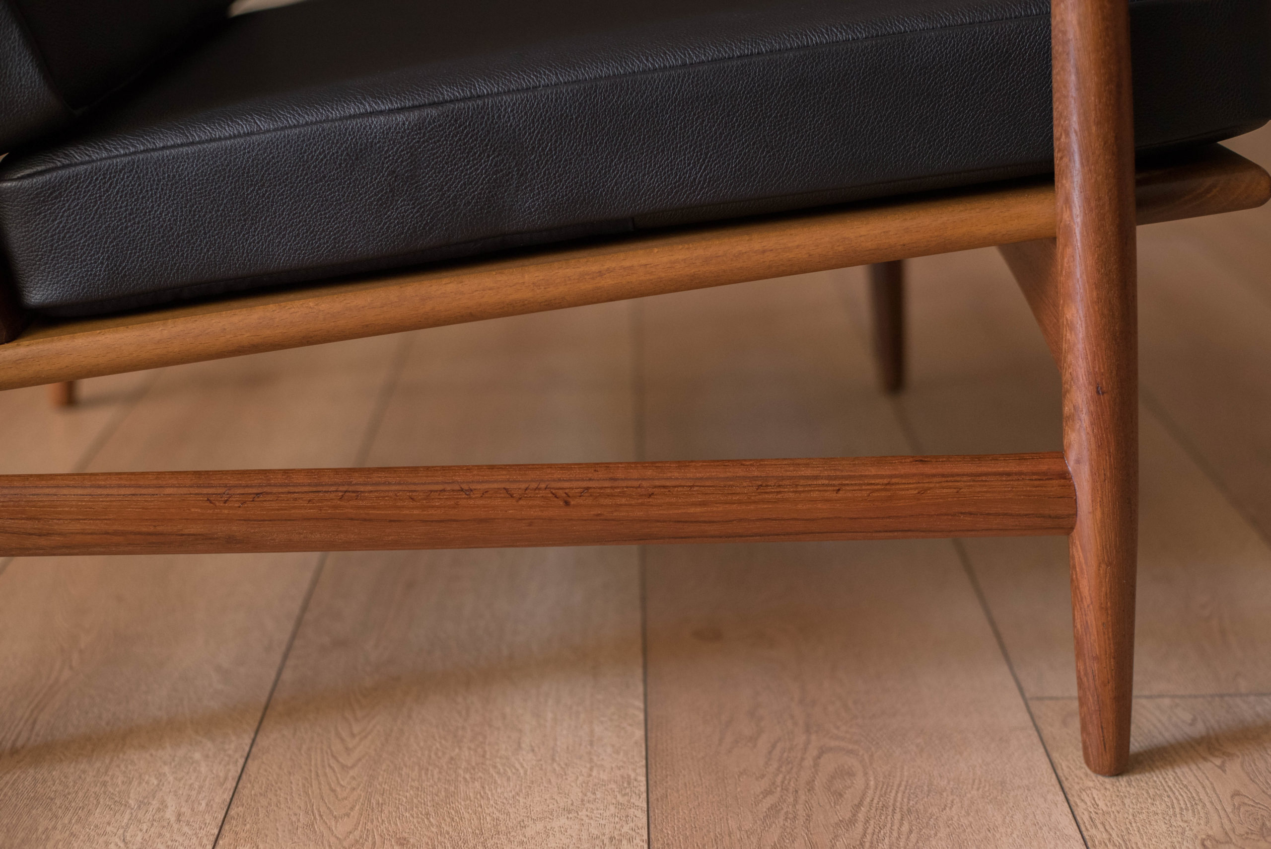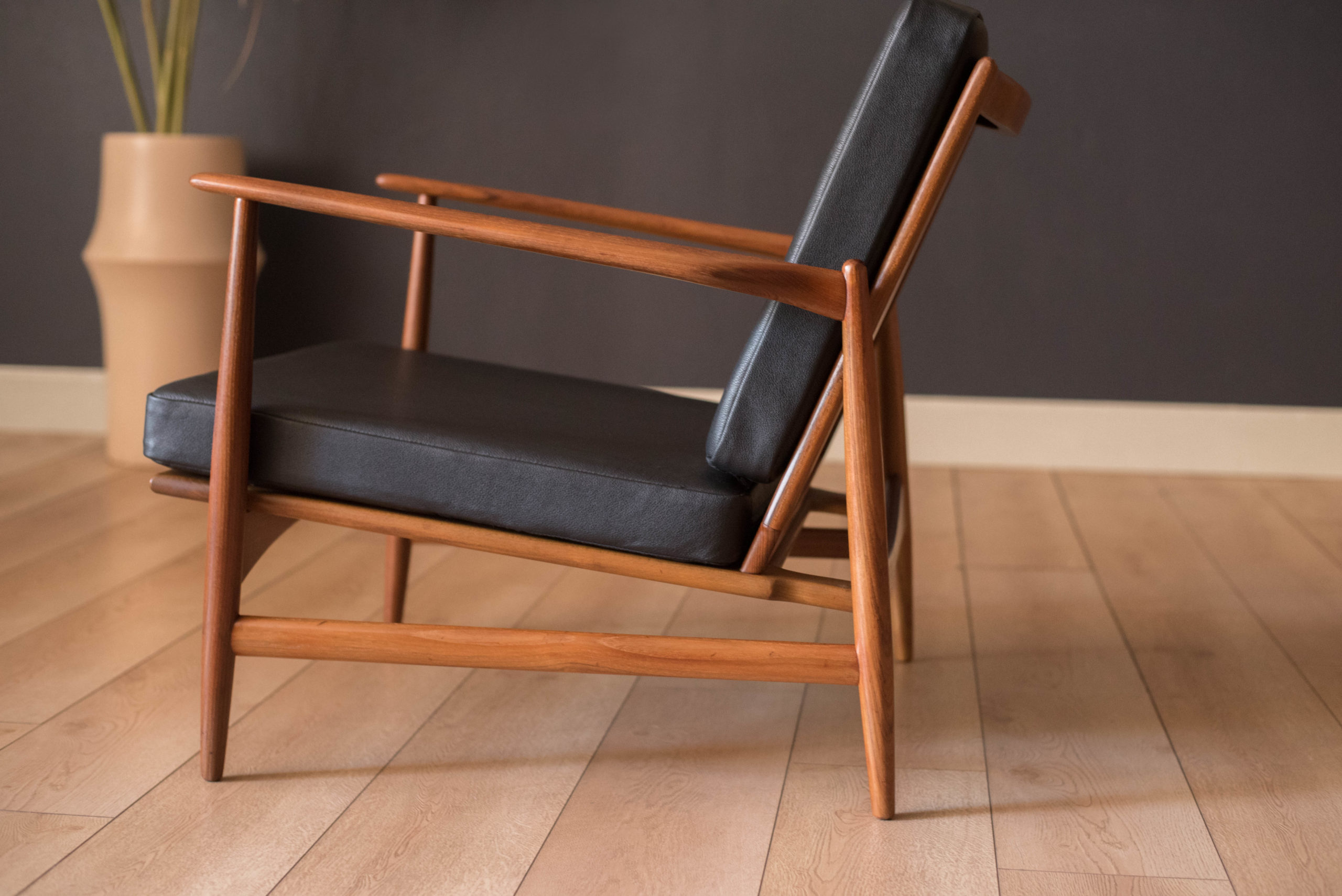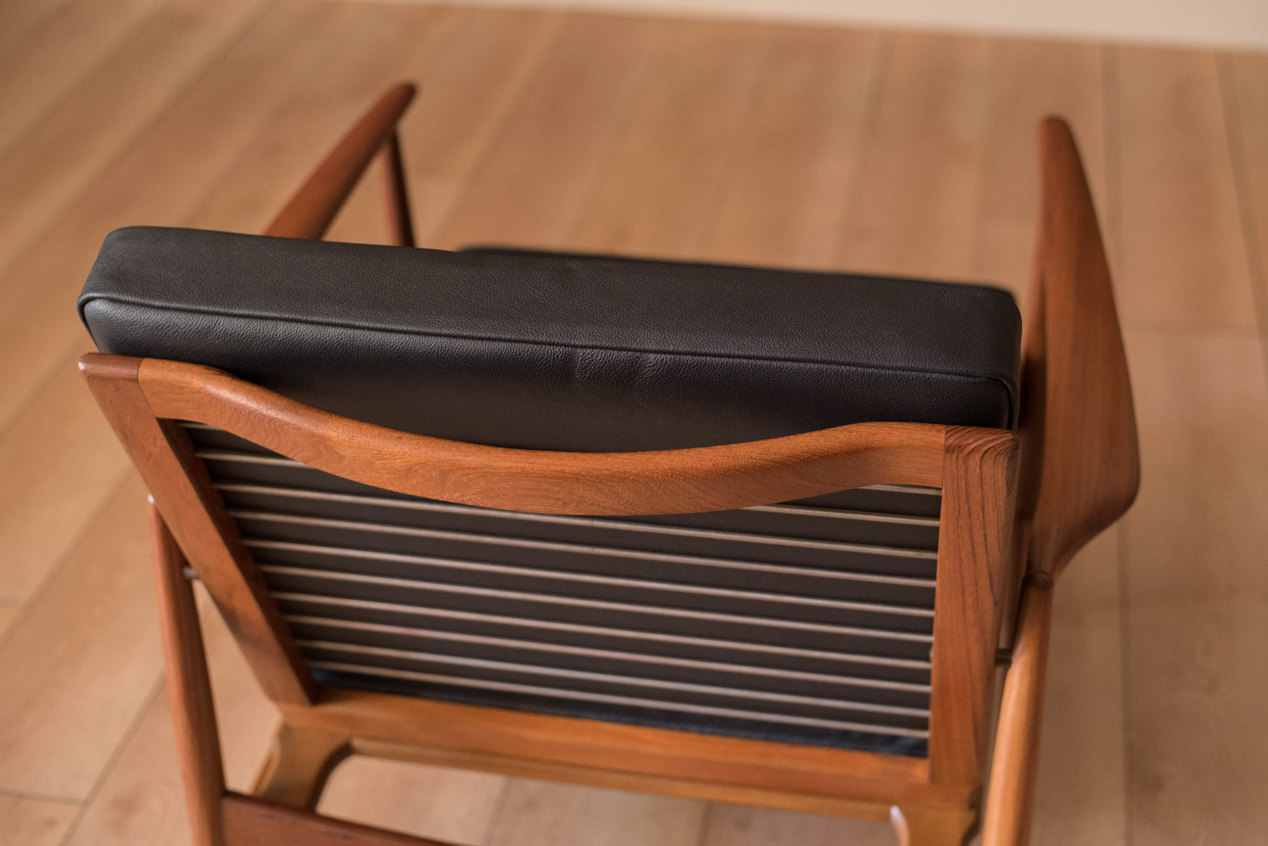 Danish Modern Teak and Black Leather Lounge Chair by Ib Kofod-Larsen for Selig