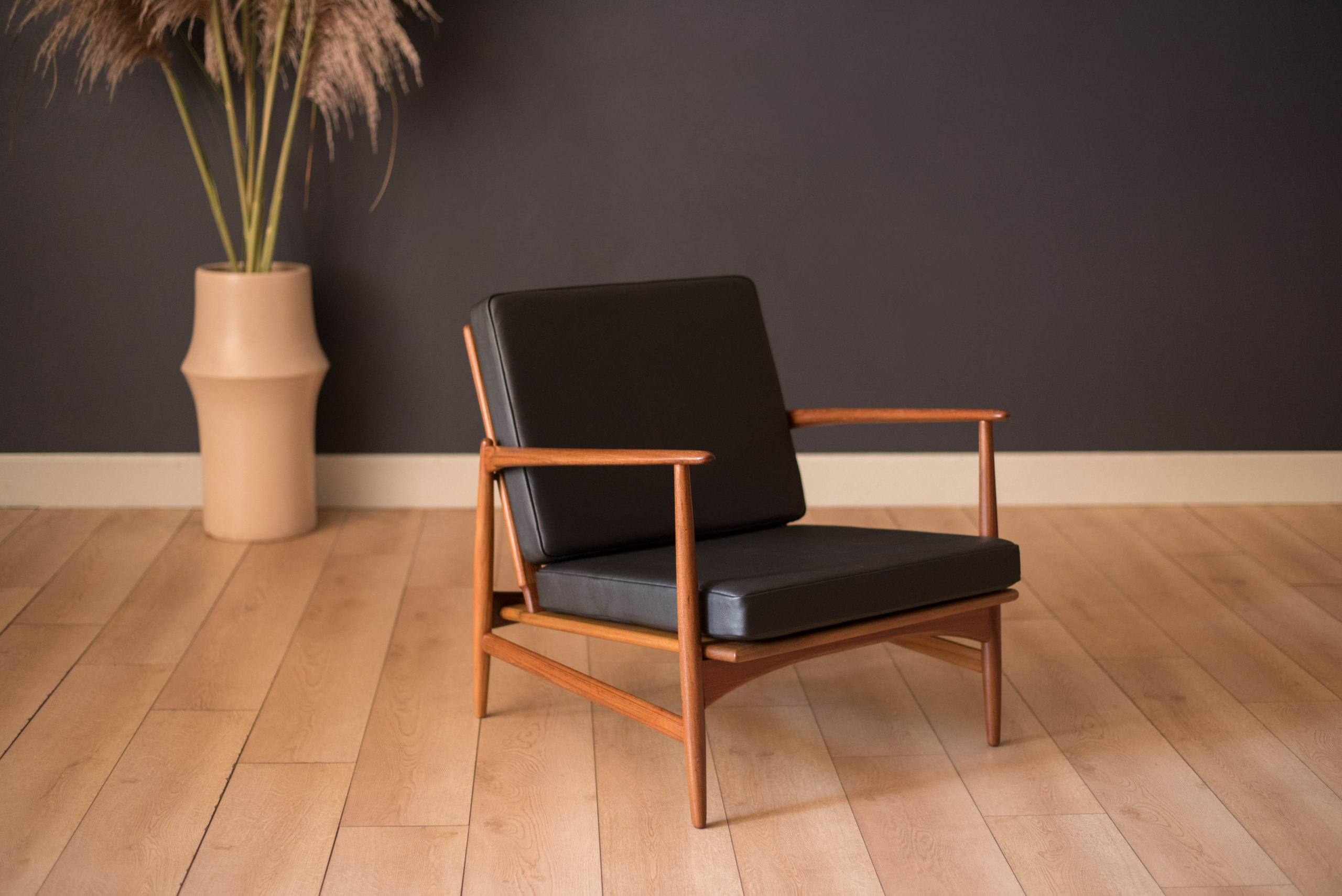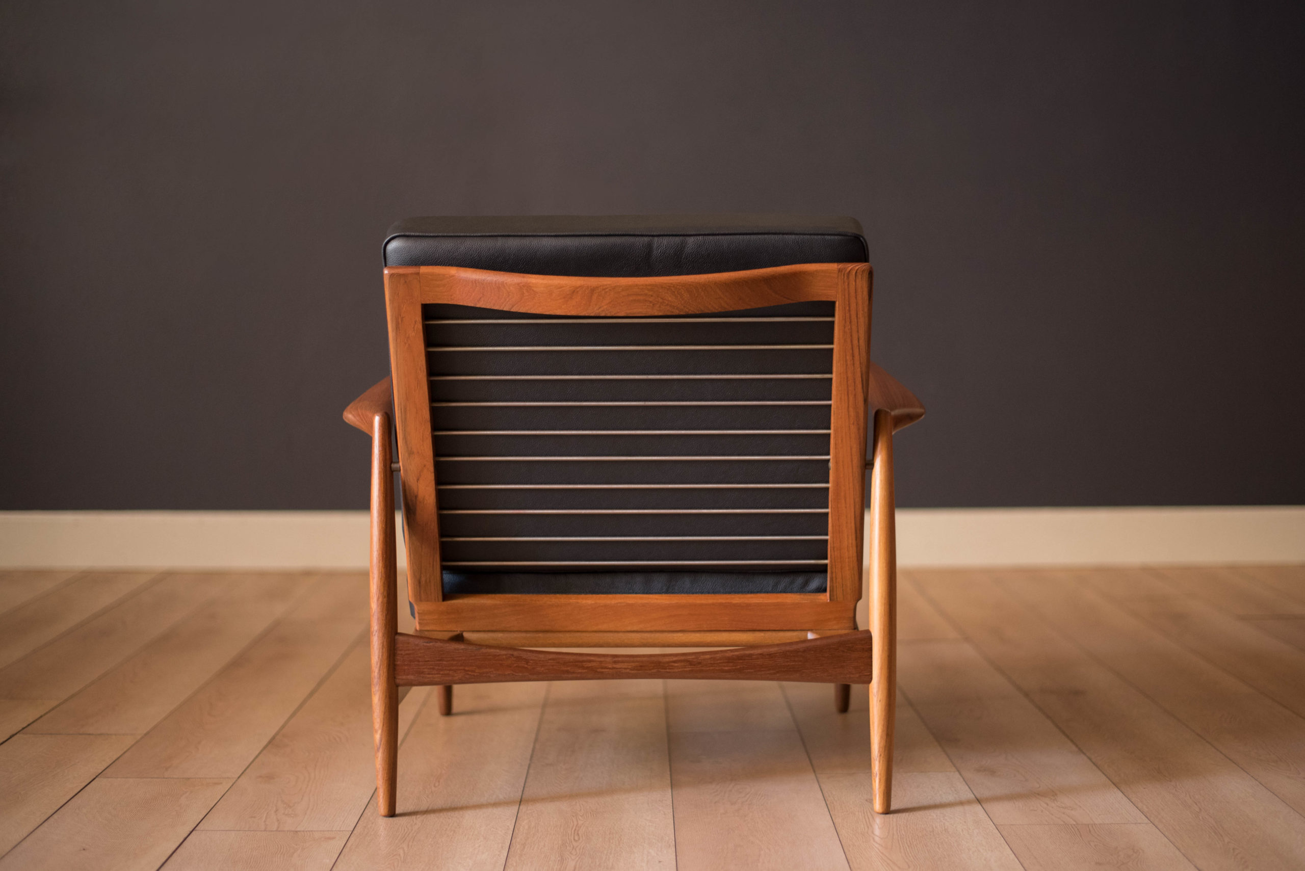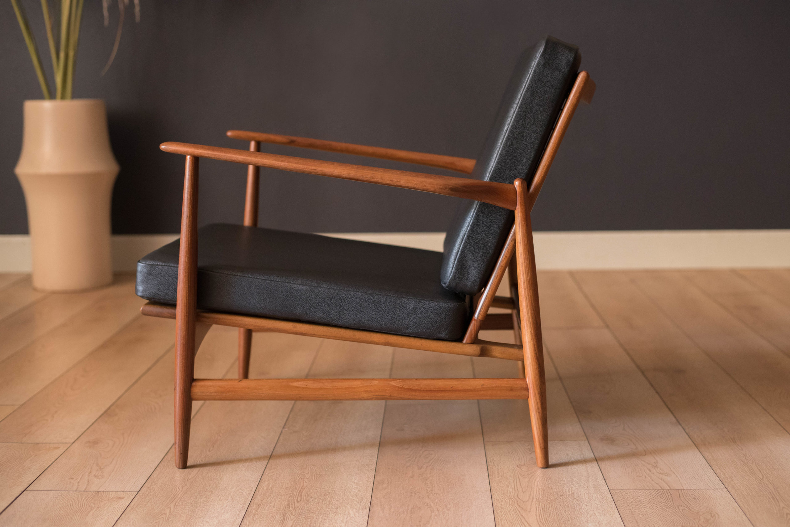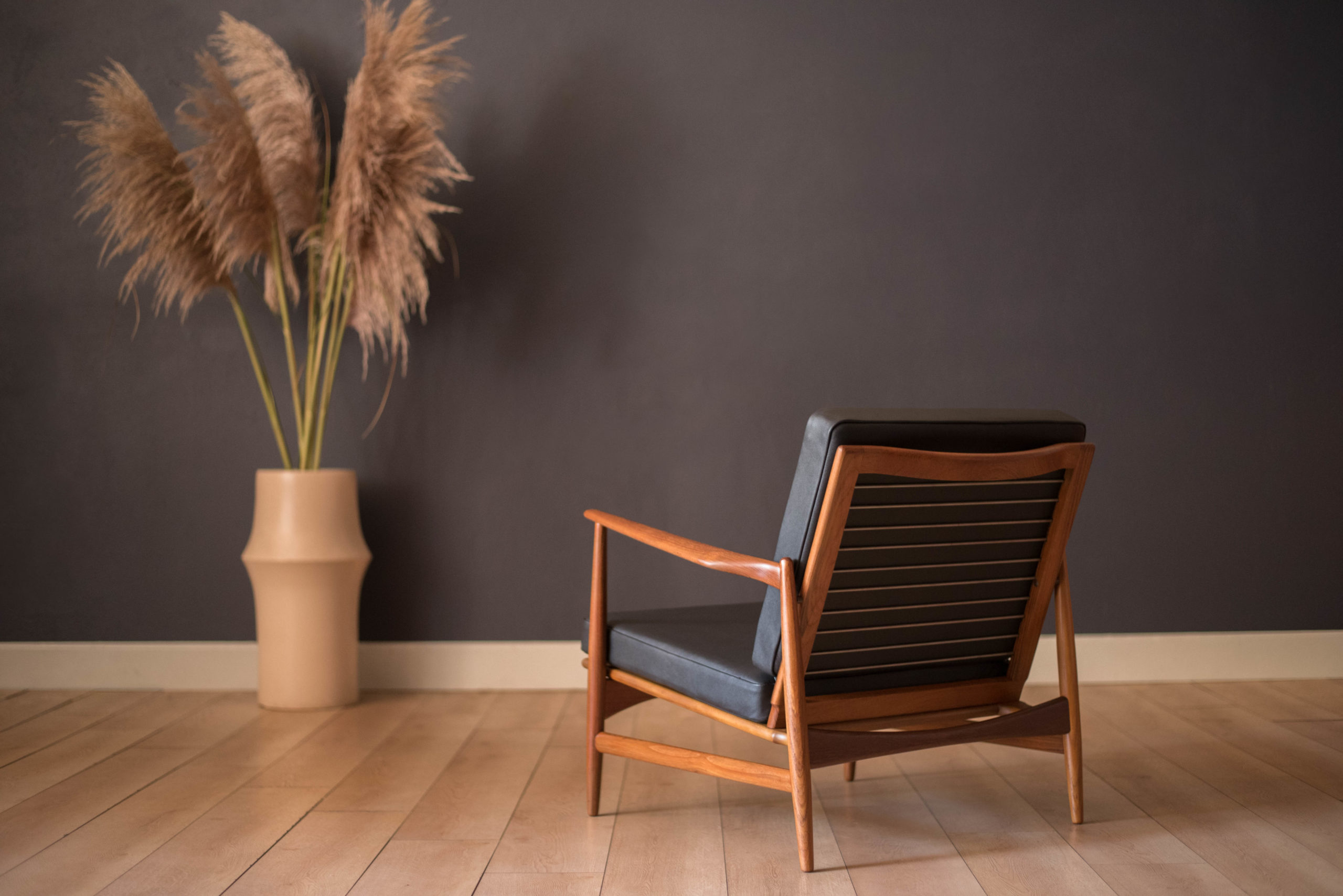 Danish Modern Teak and Black Leather Lounge Chair by Ib Kofod-Larsen for Selig