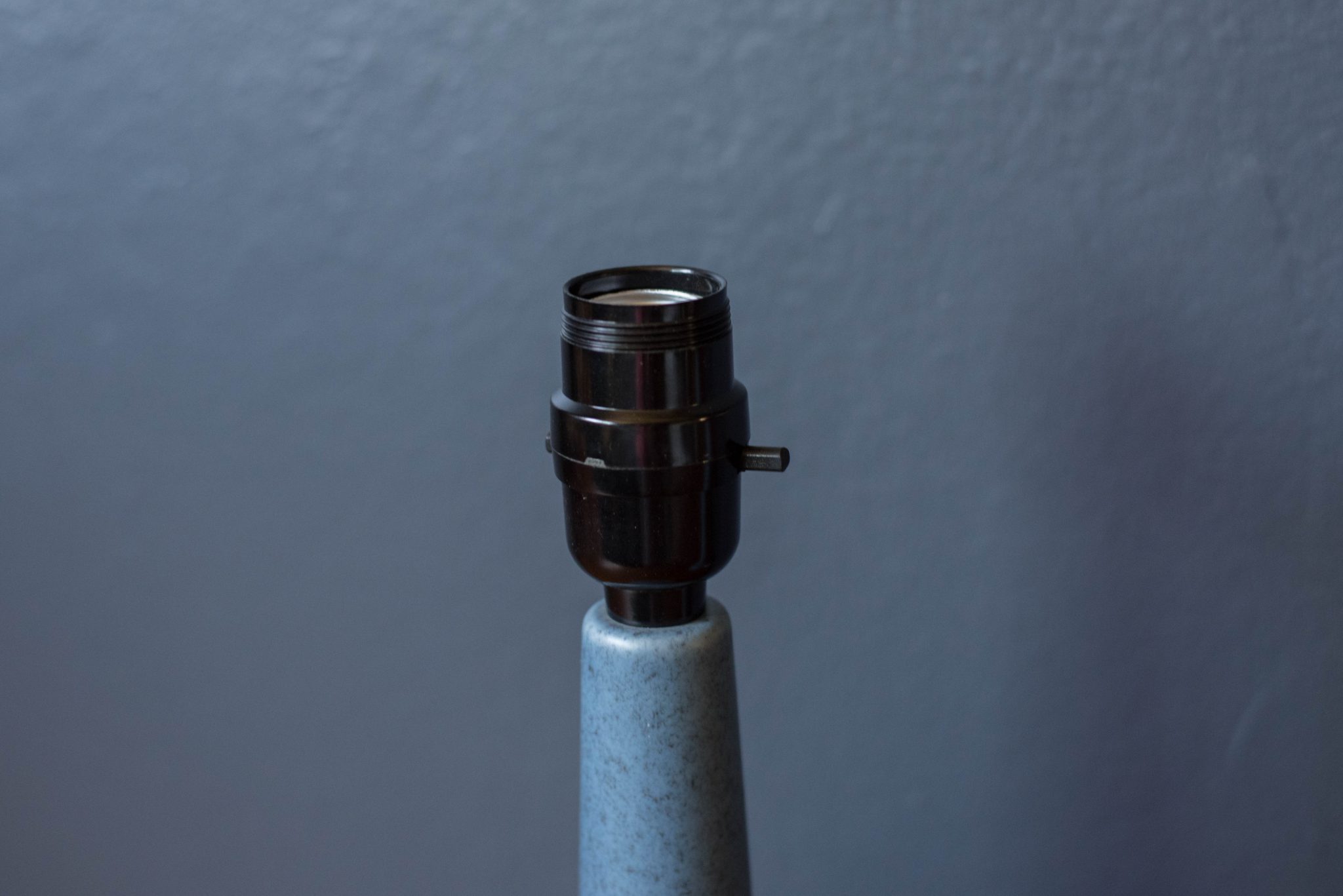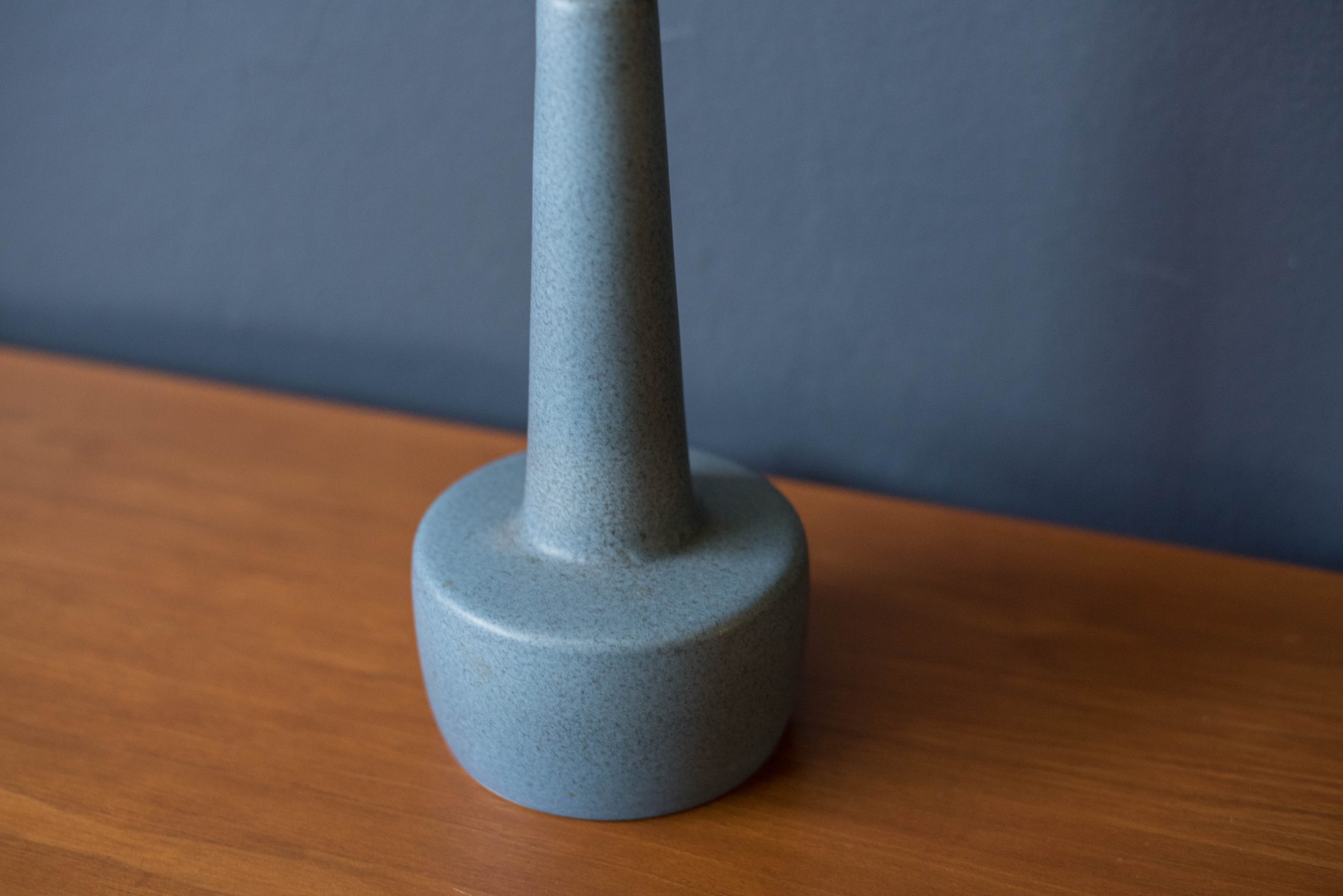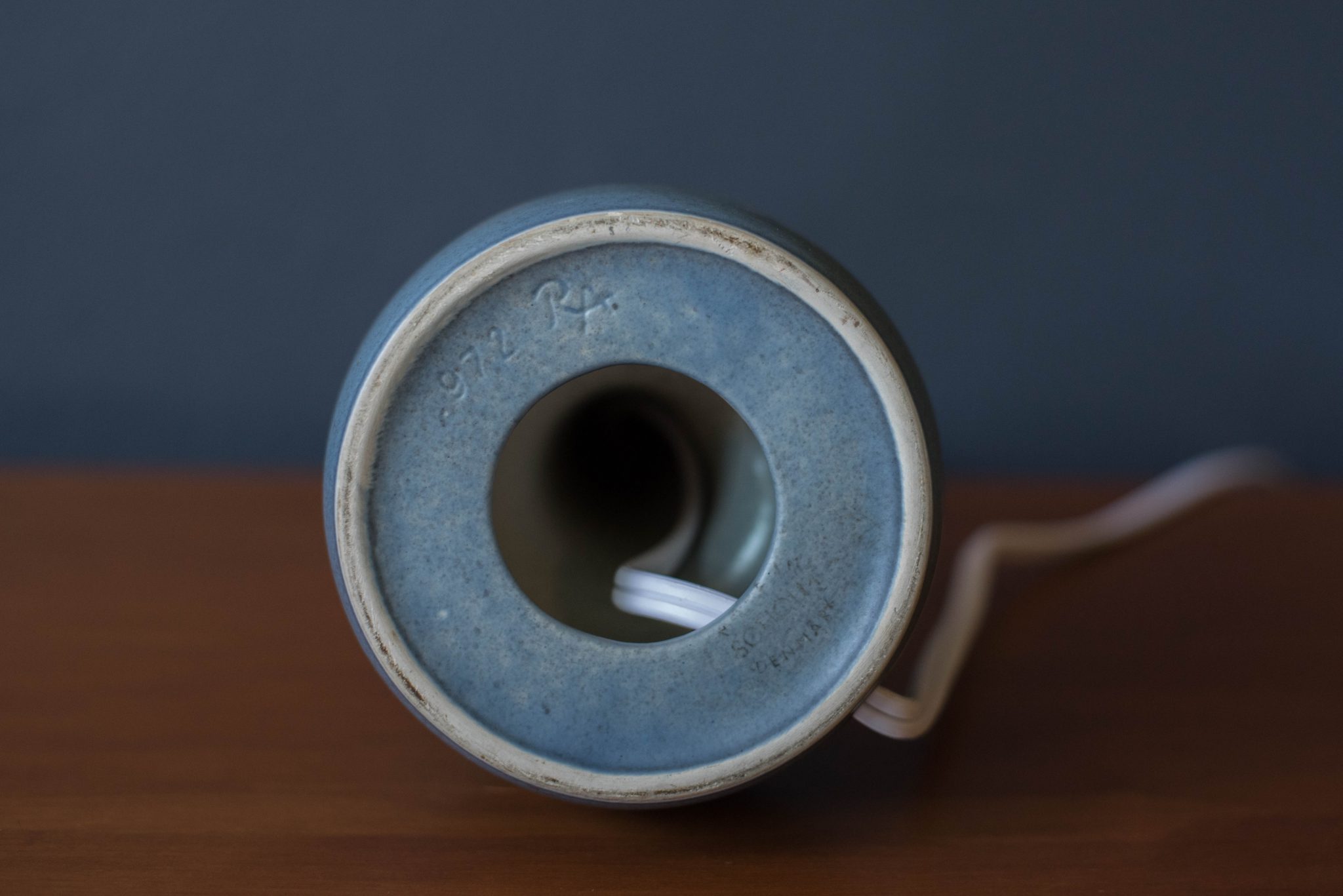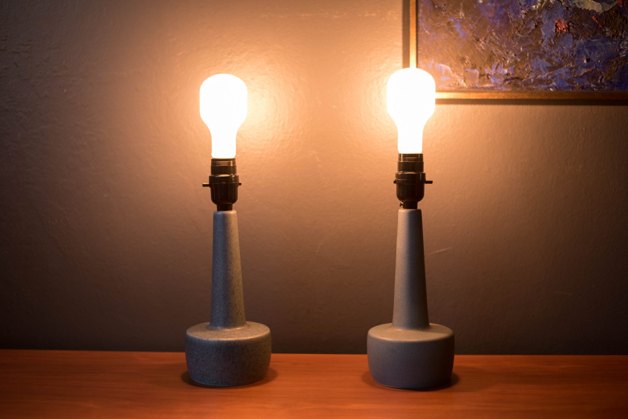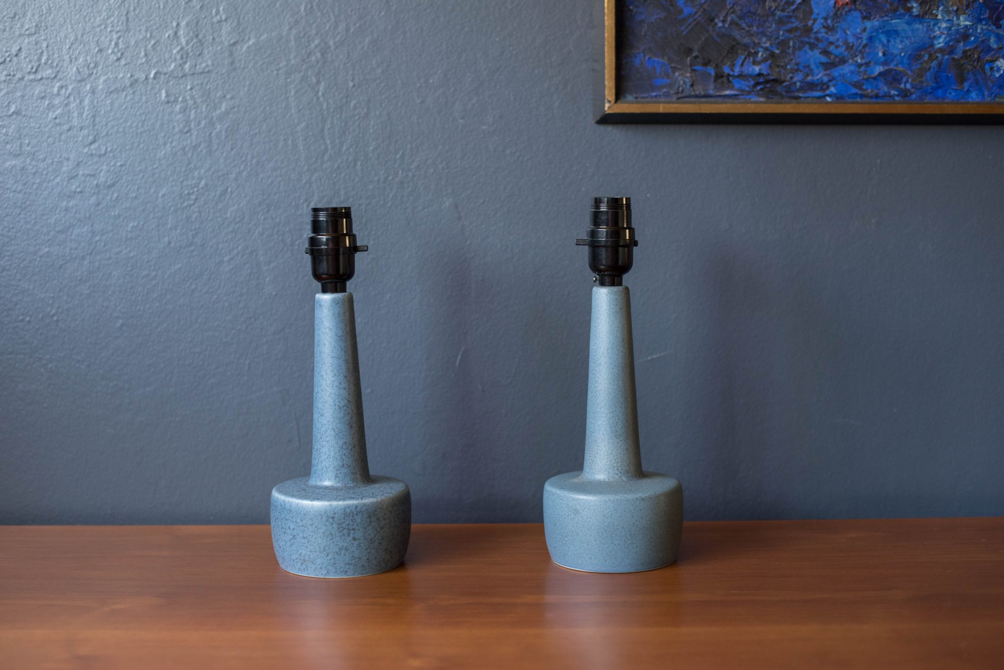 Danish Pair of Matte Blue Stoneware Pottery Lamps by Soholm