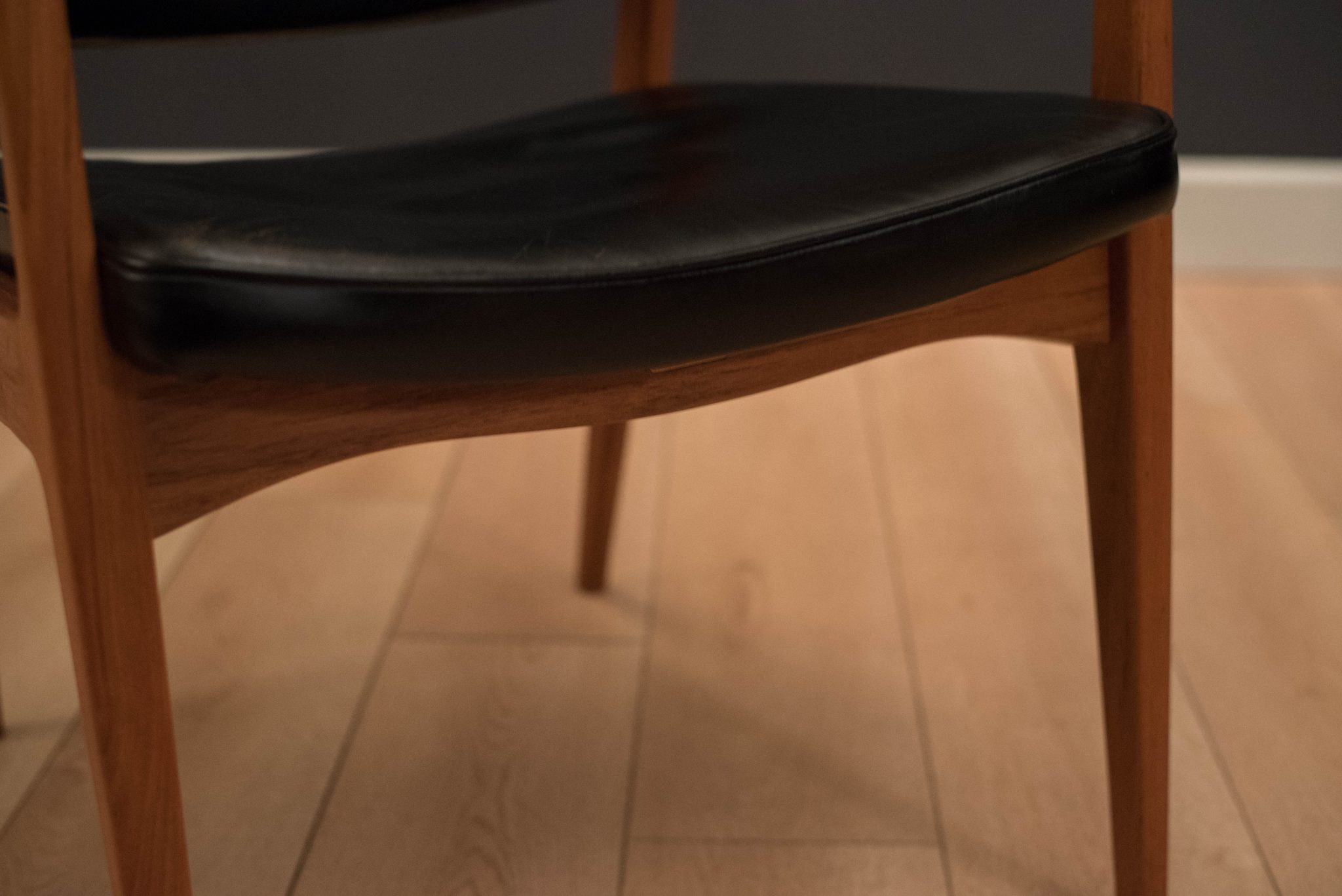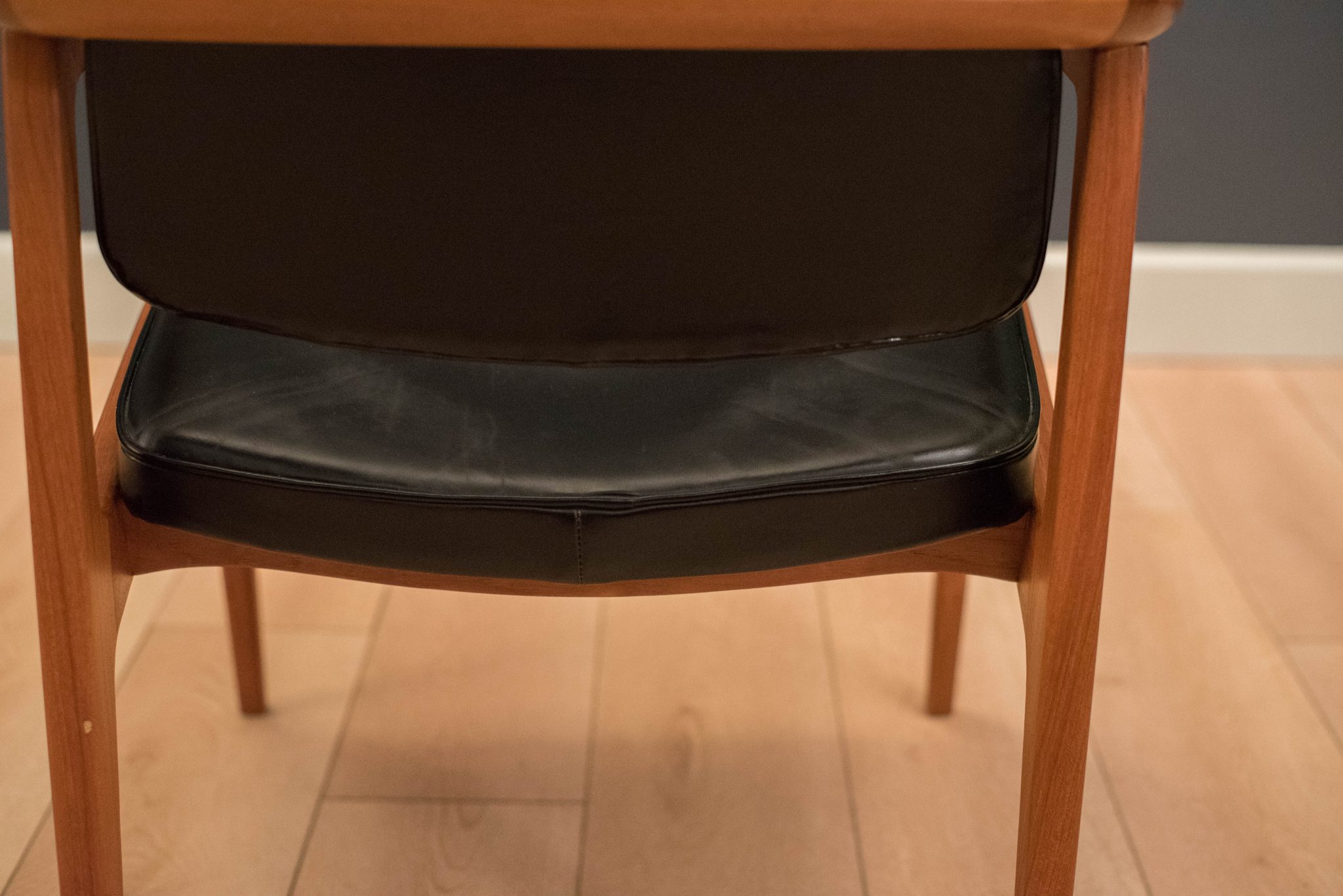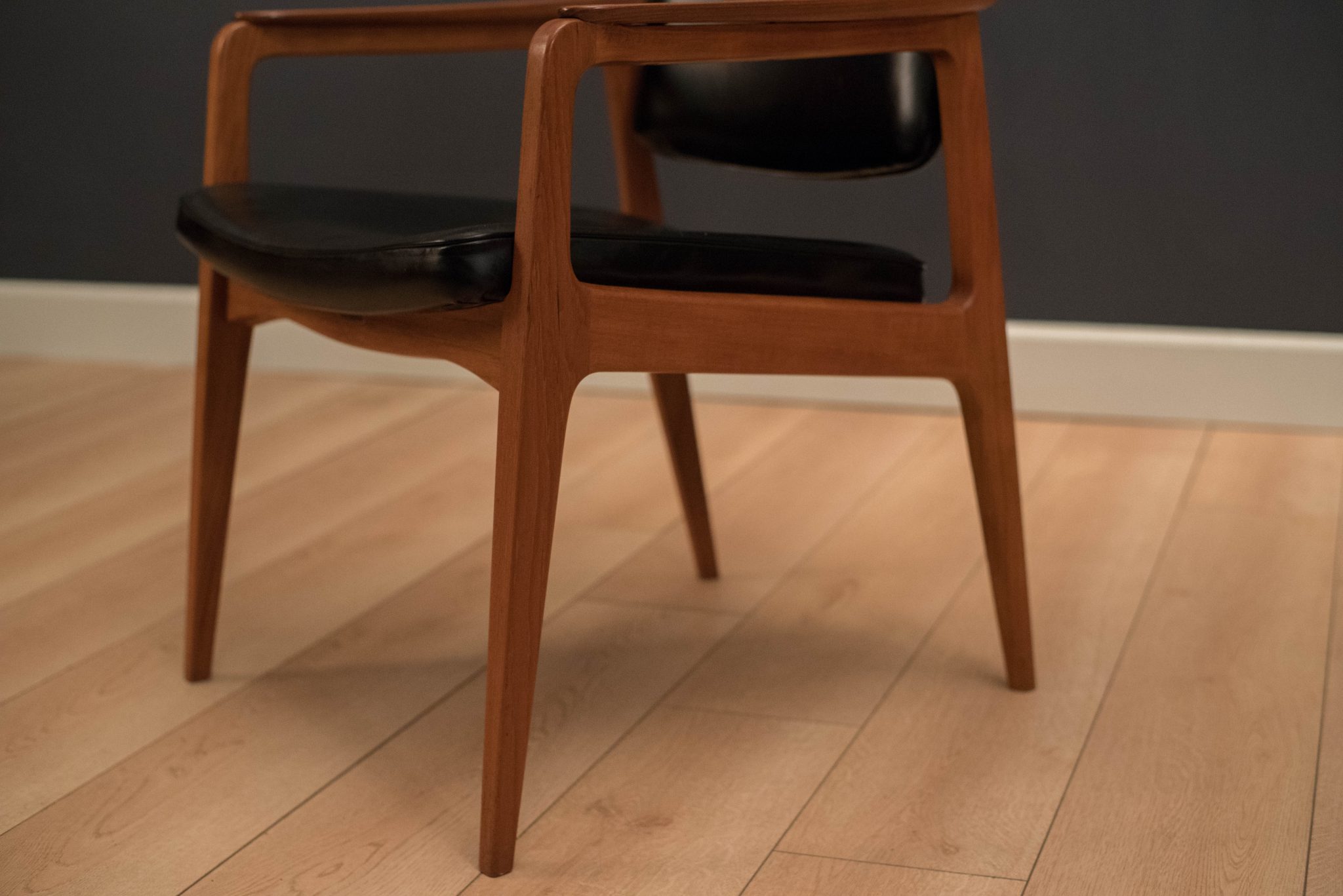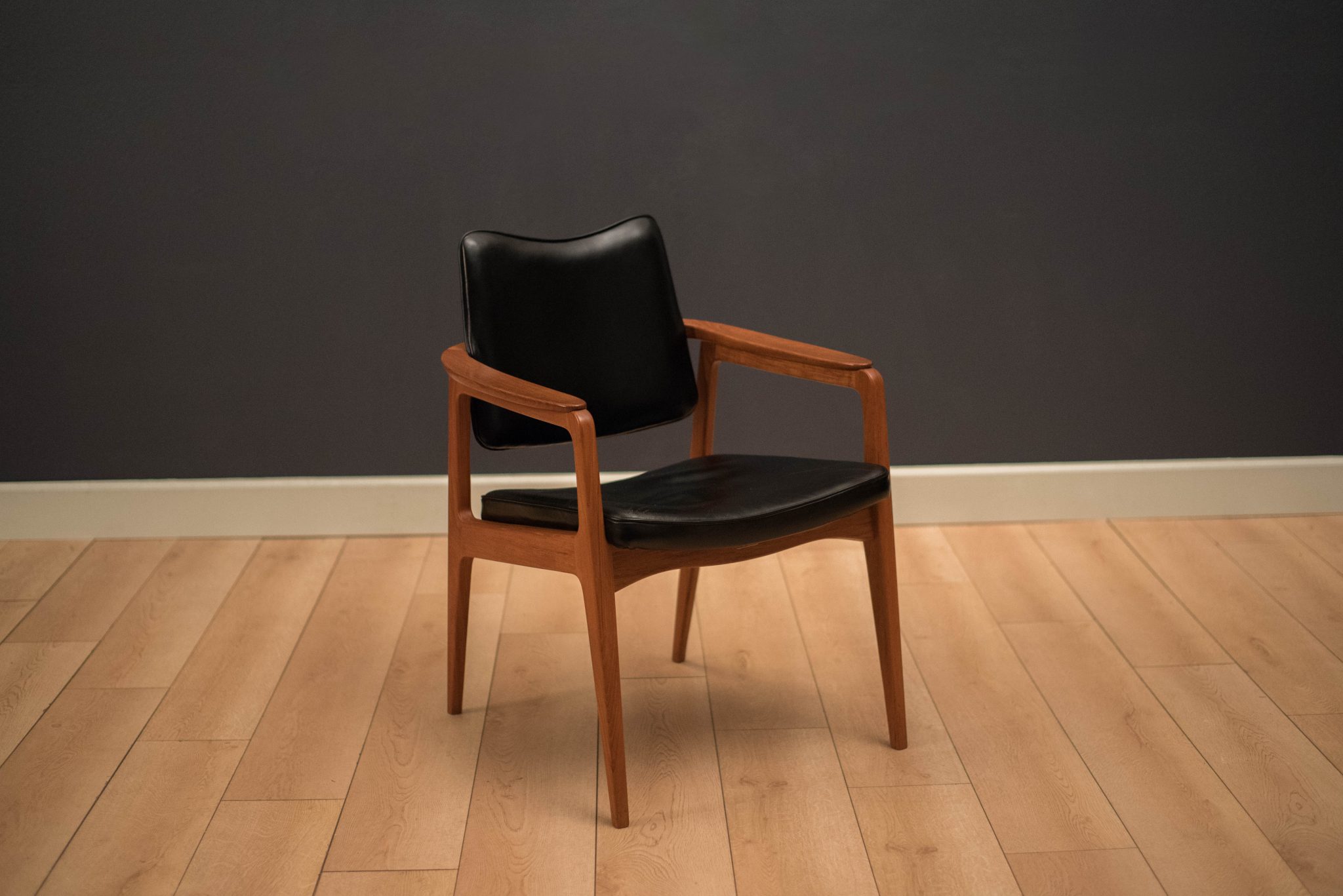 Mid-Century Modern armchair in teak by Sigvard Bernadotte for France & Son. This thoughtfully designed piece retains the original leather seats and functions with a tilting backrest. Features sculptural teak armrests that wrap around the back making this piece a statement from any angle.