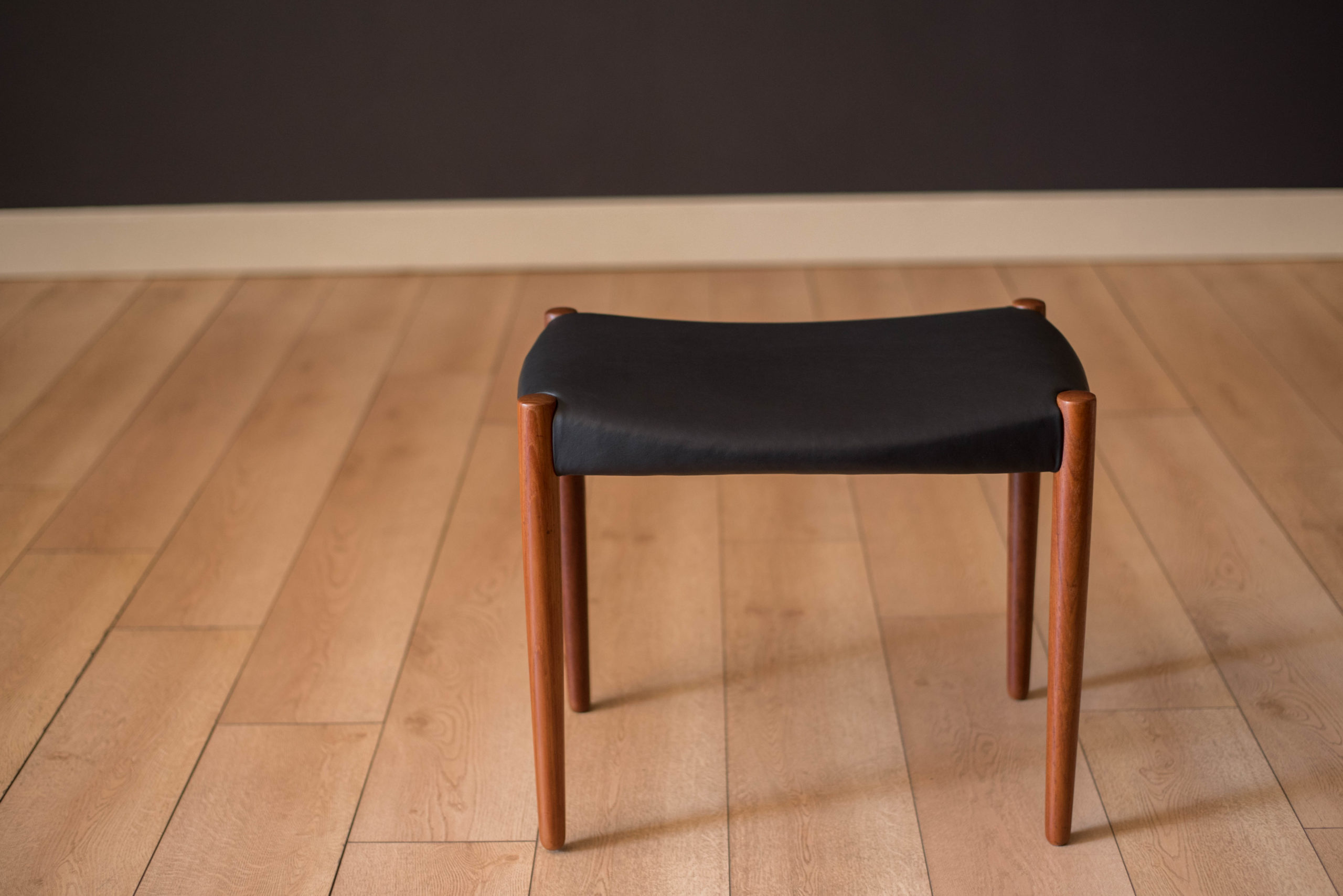 Danish Teak and Black Leather Stool by Aksel Bender Madsen and Ejner Larsen