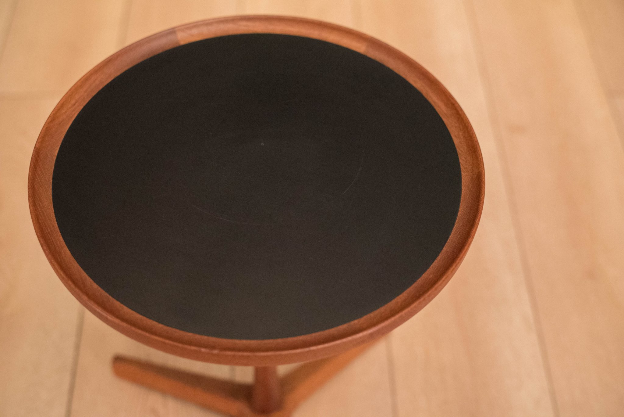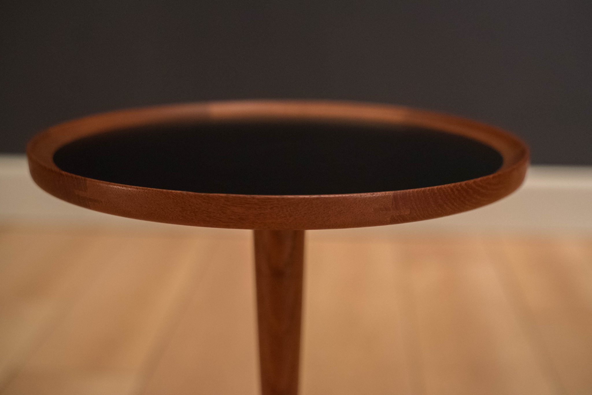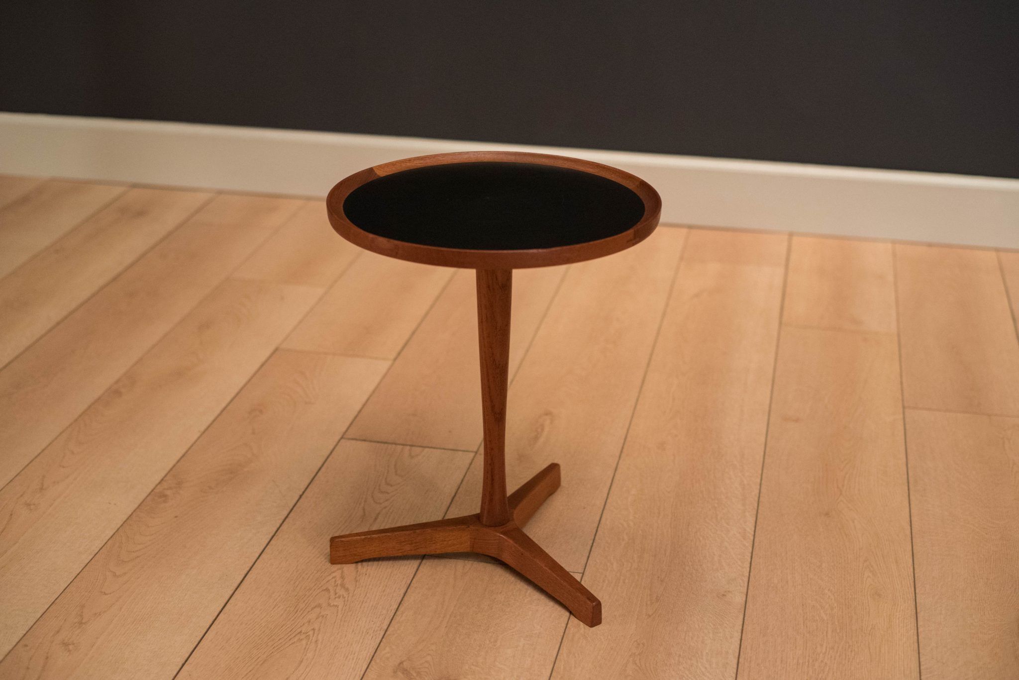 Mid-Century Modern side table designed by Hans C. Andersen for Artex. This piece has a black laminate inlaid top and a solid teak pedestal base.