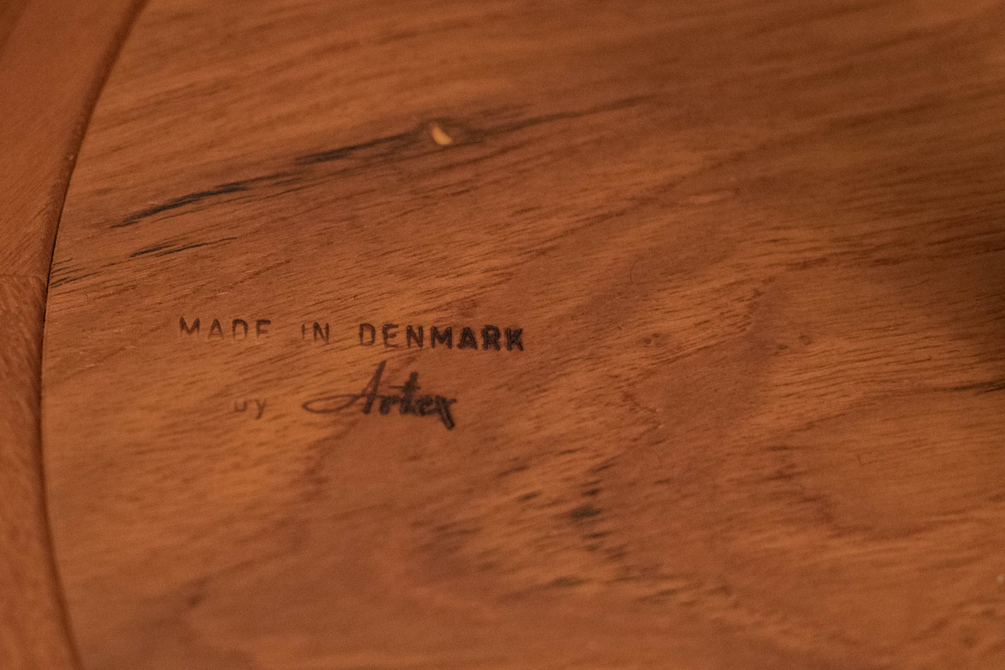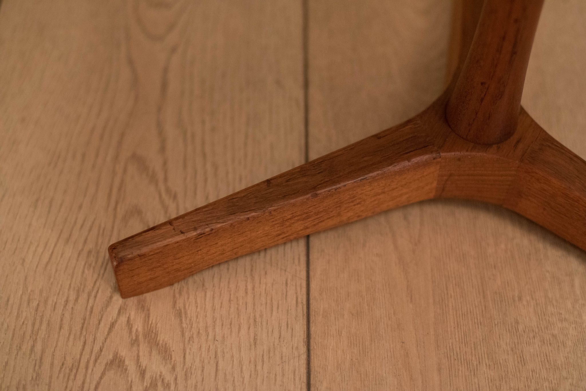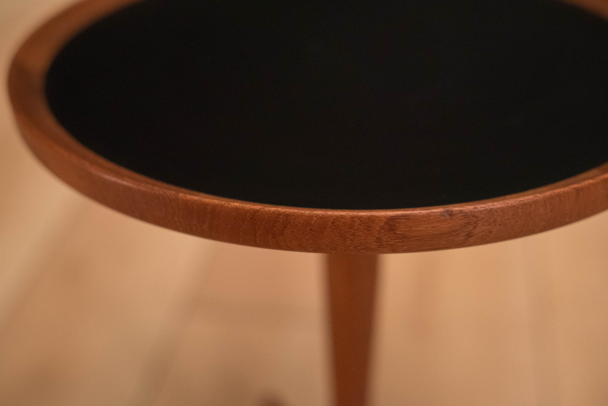 Mid-Century Modern side table designed by Hans C. Andersen for Artex. This piece has a black laminate inlaid top and a solid teak pedestal base.