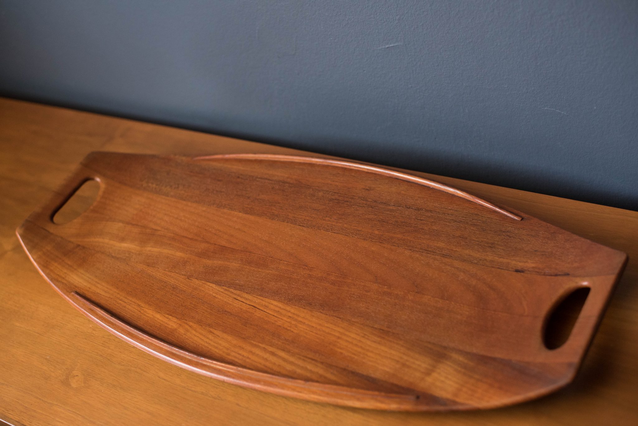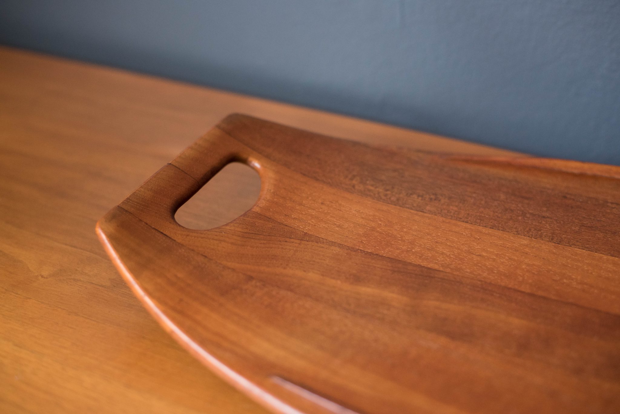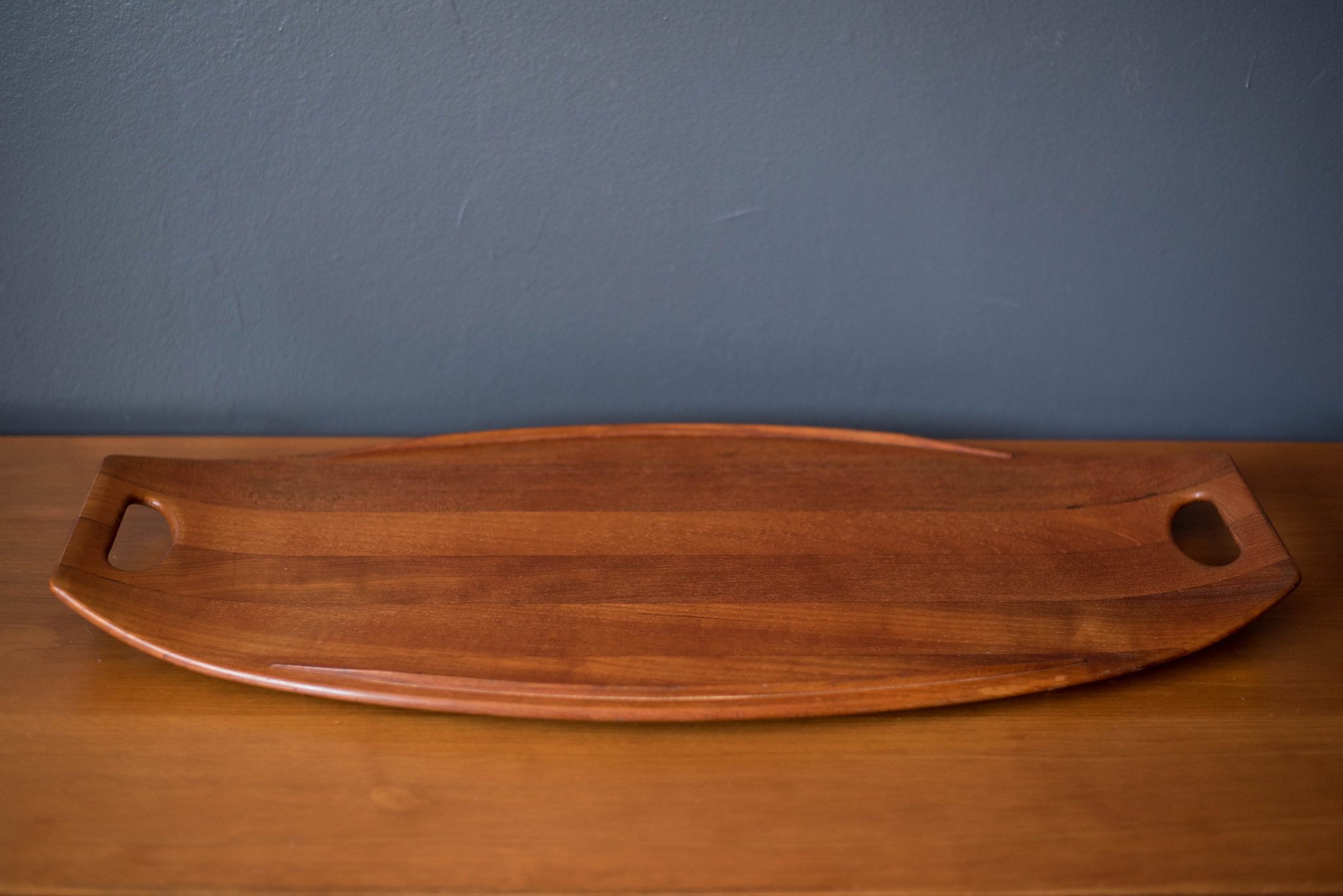 Vintage staved decorative tray #803 designed by Jens Quistgaard for Dansk. This piece is the larger version and is made of solid planked teak.