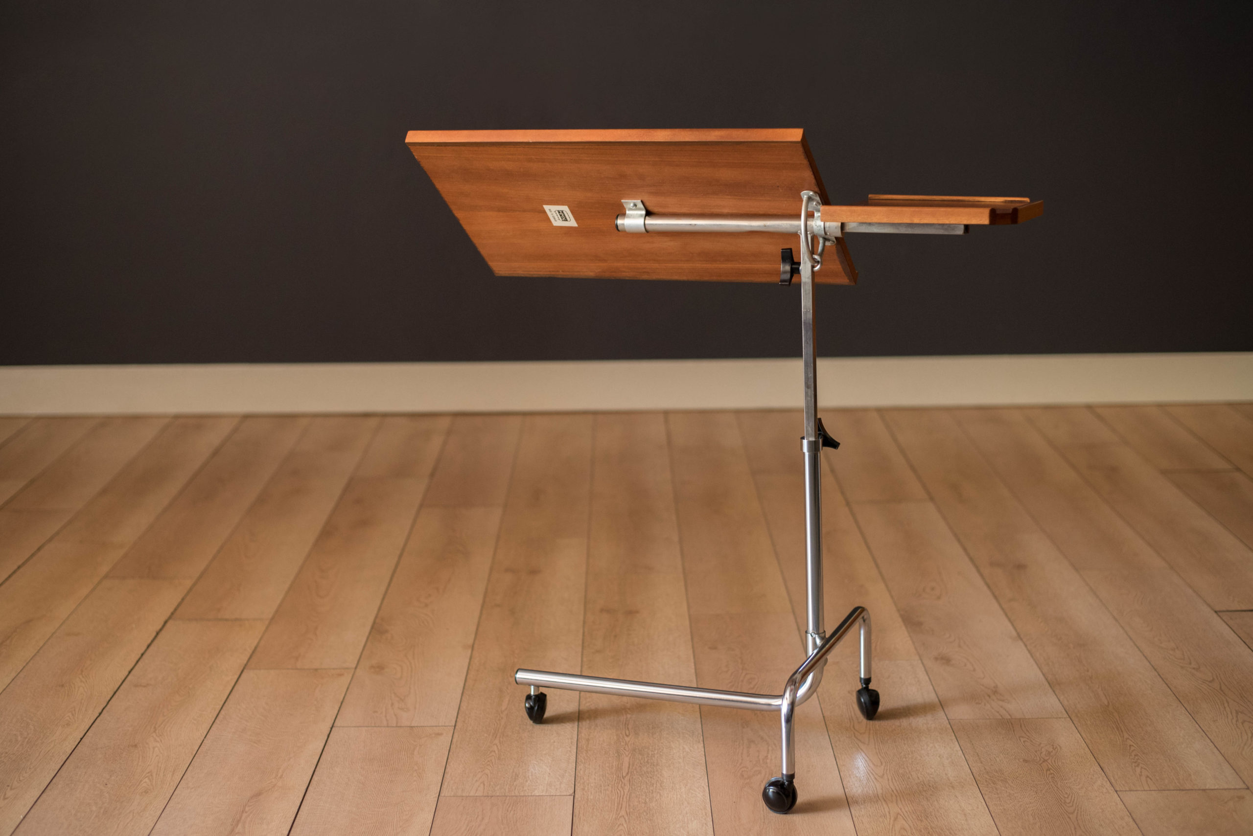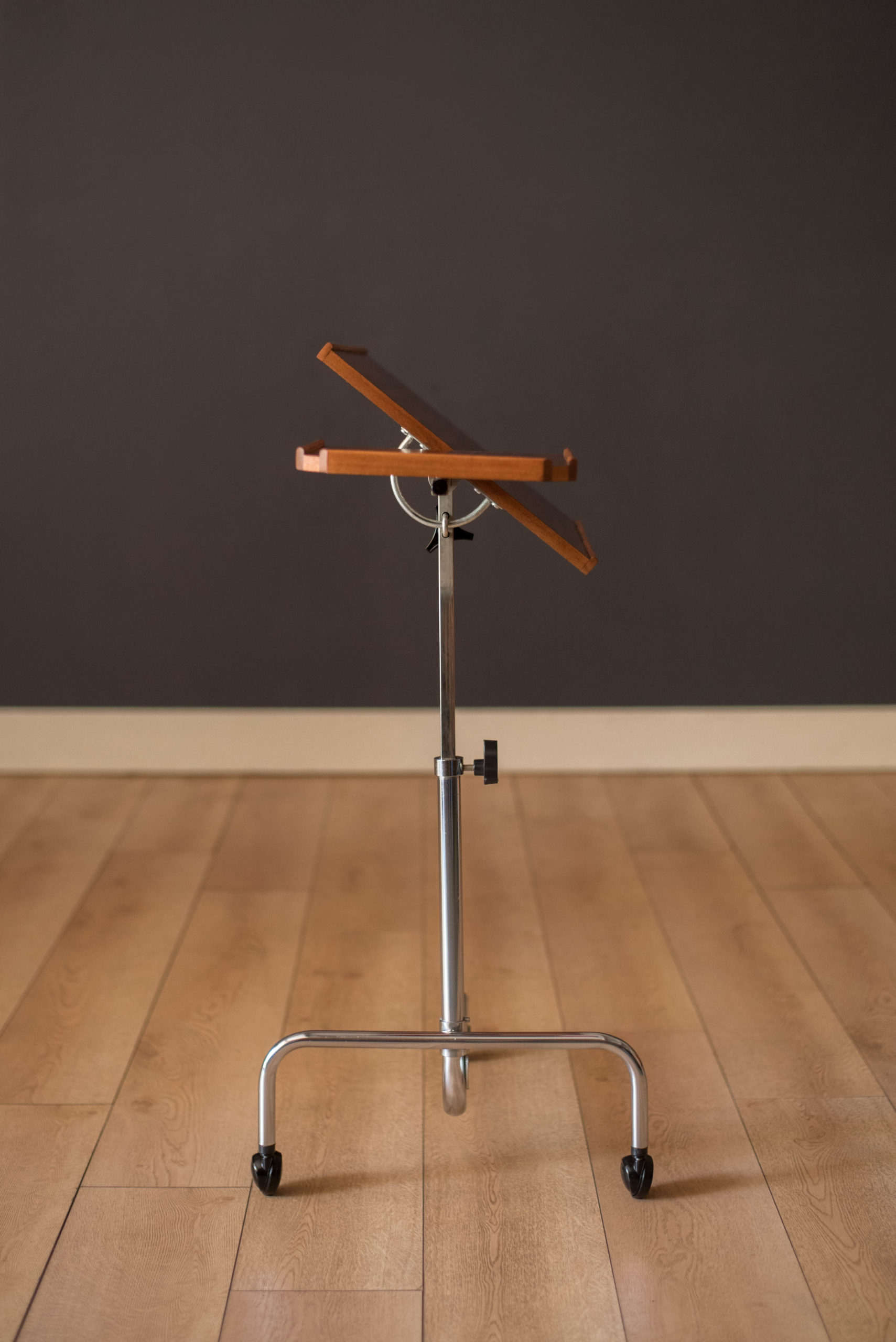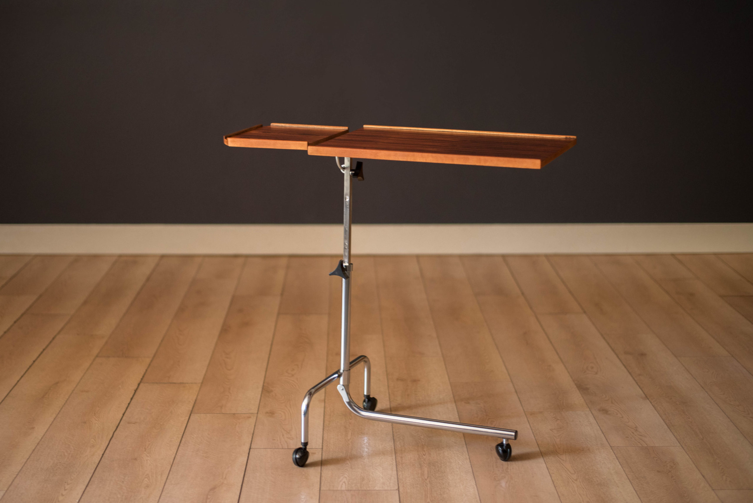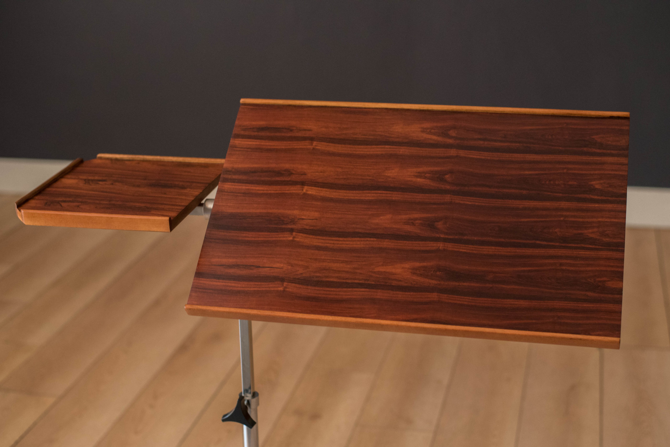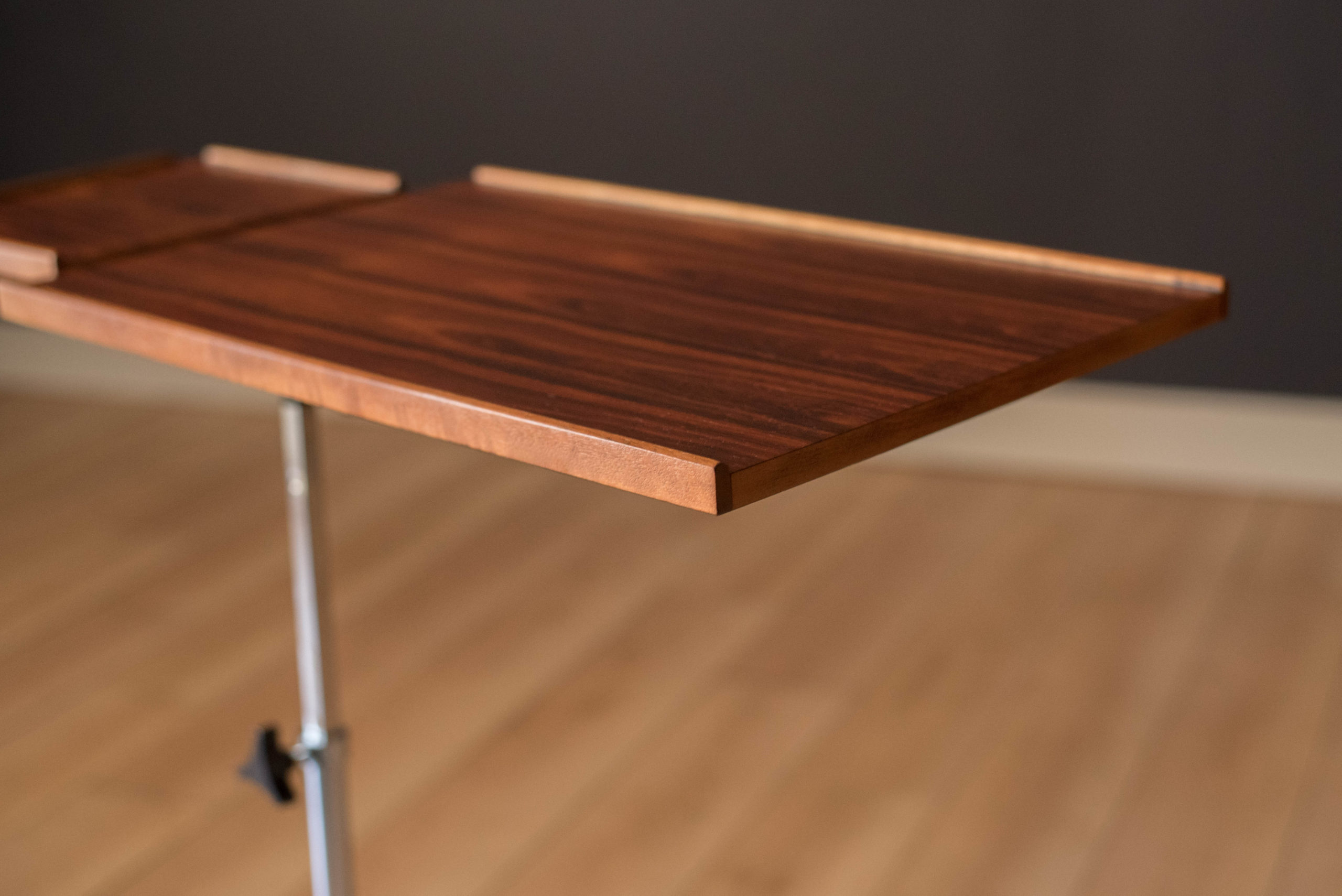 HMN Danish Modern Rosewood and Chrome Adjustable Reading Tray Table Stand