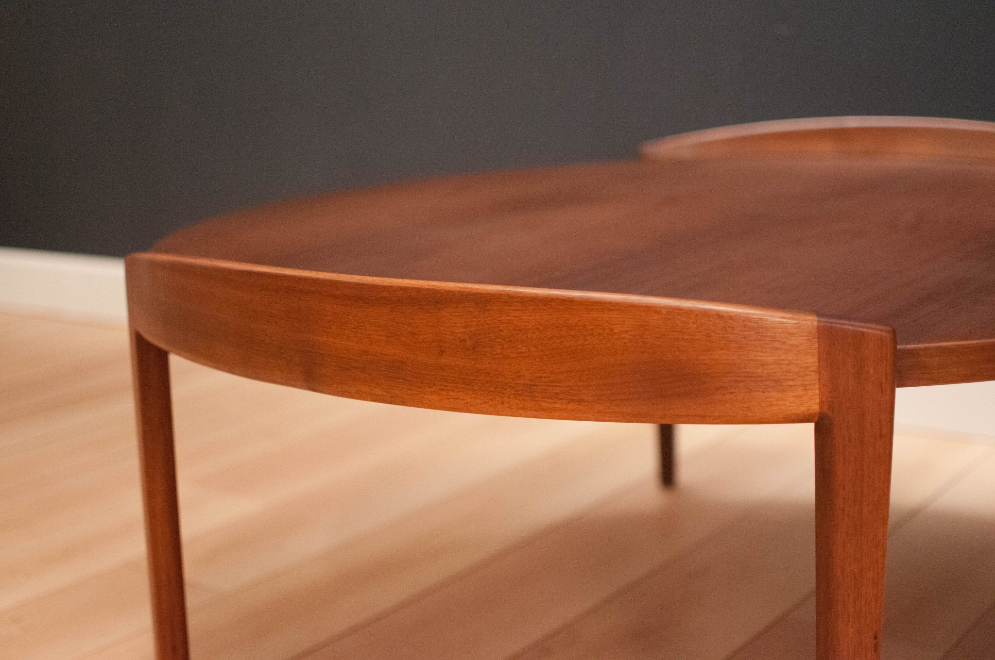 Mid Century Modern Coffee Table by Jens Risom in walnut. This timeless piece features a solid sculpted raised edge and a gorgeous wood grain top. It is in great condition with minimal vintage wear.
