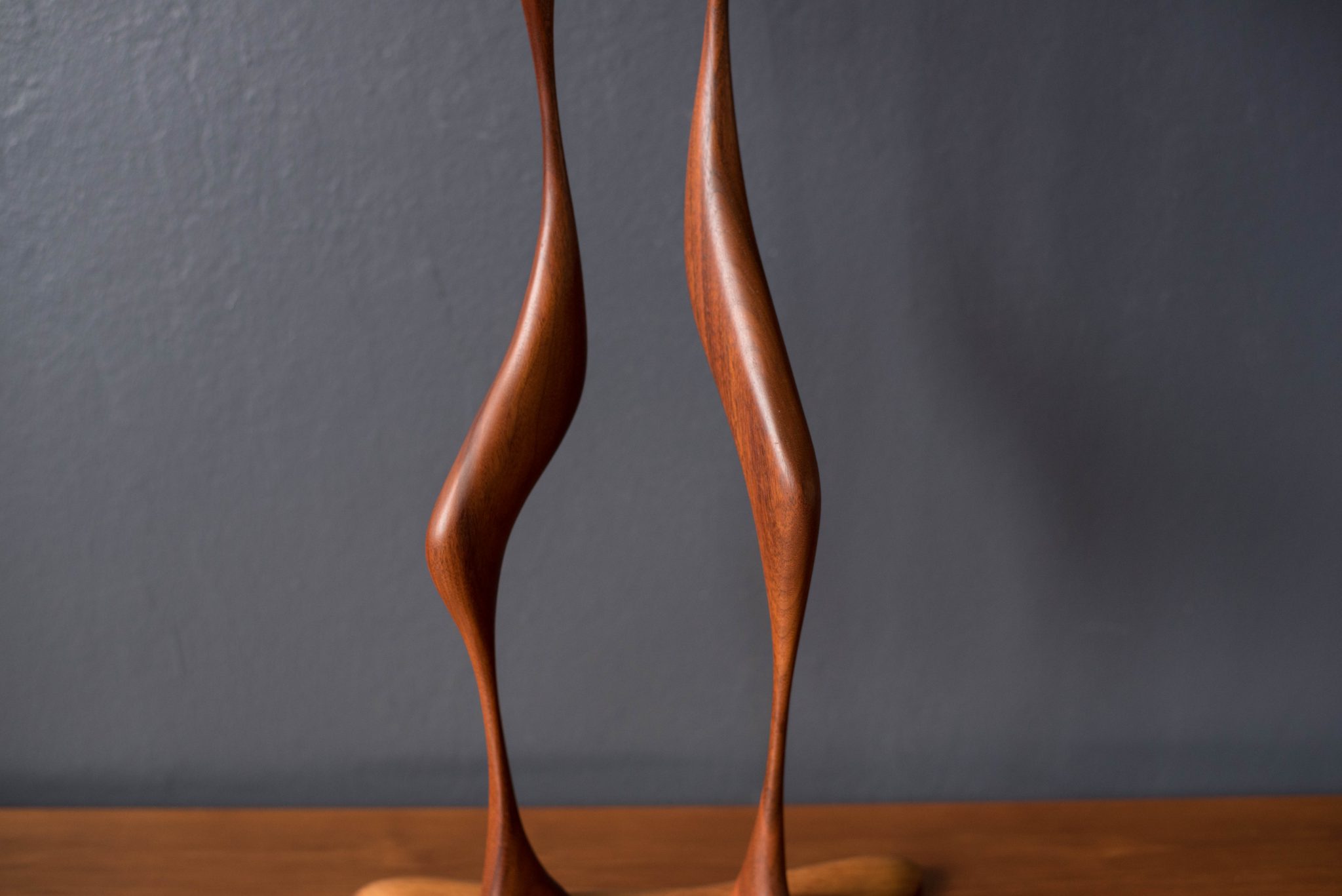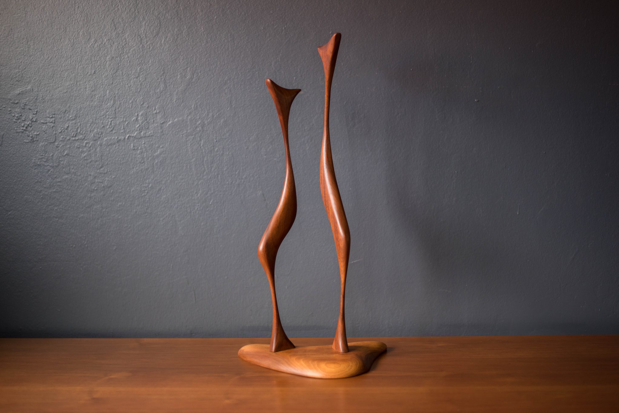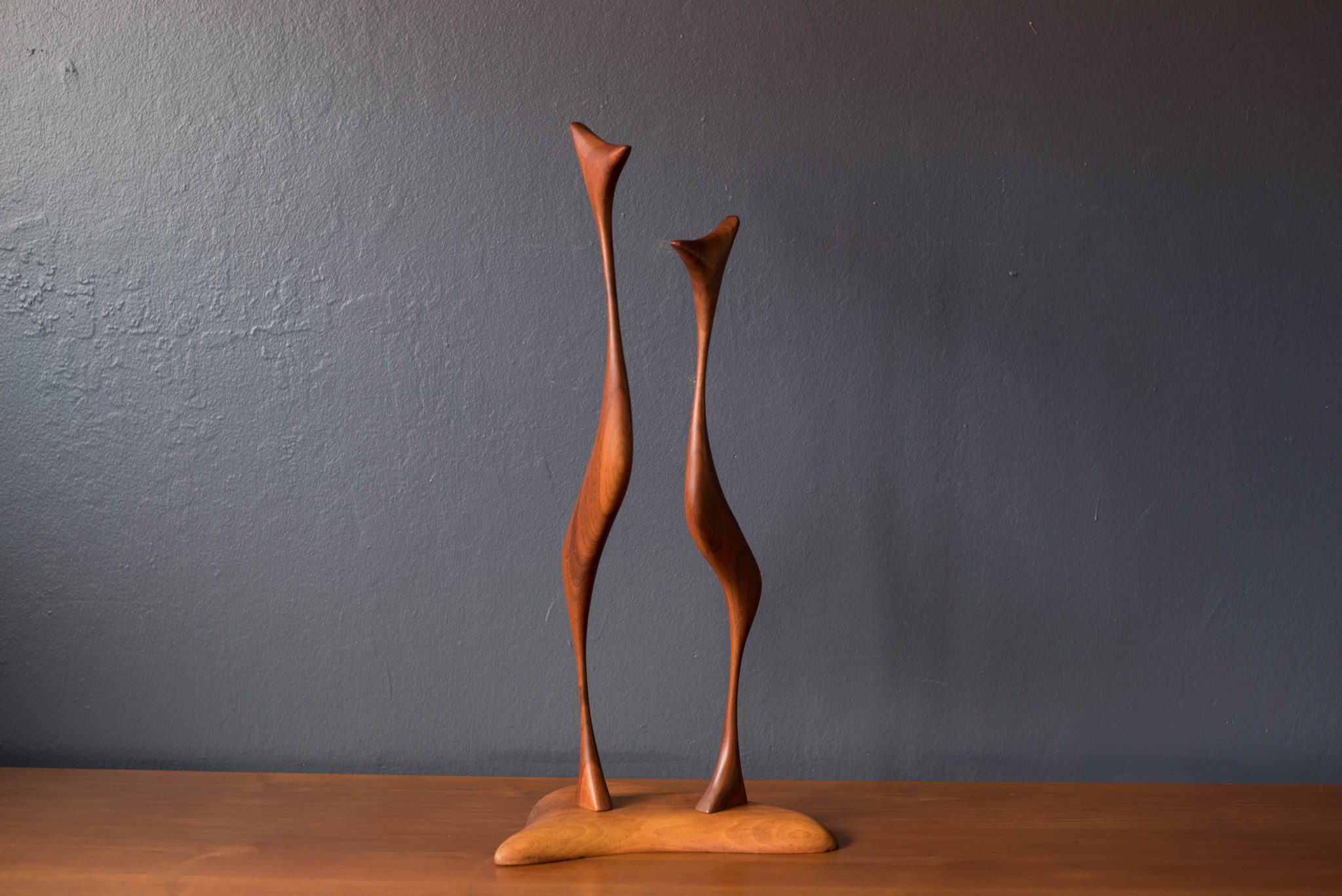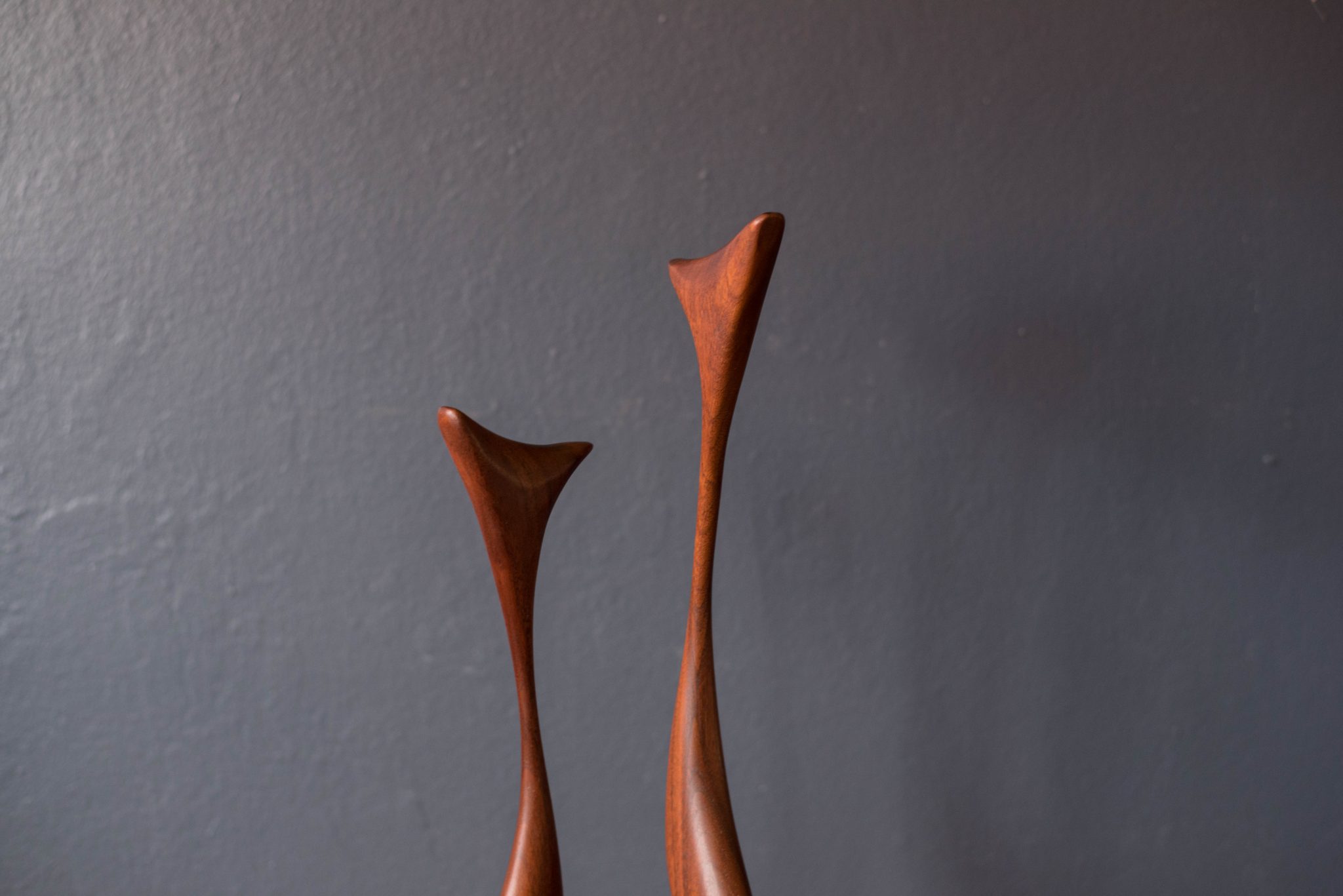 Vintage modernist tall birds sculpture, circa 1960s. This abstract art piece is made of solid teak and can be accessorized with any modern decor.