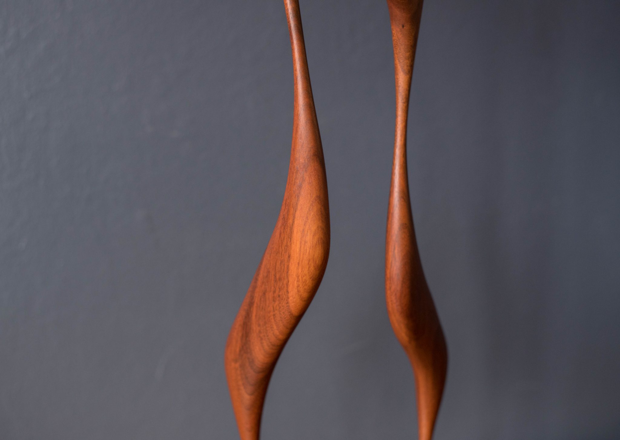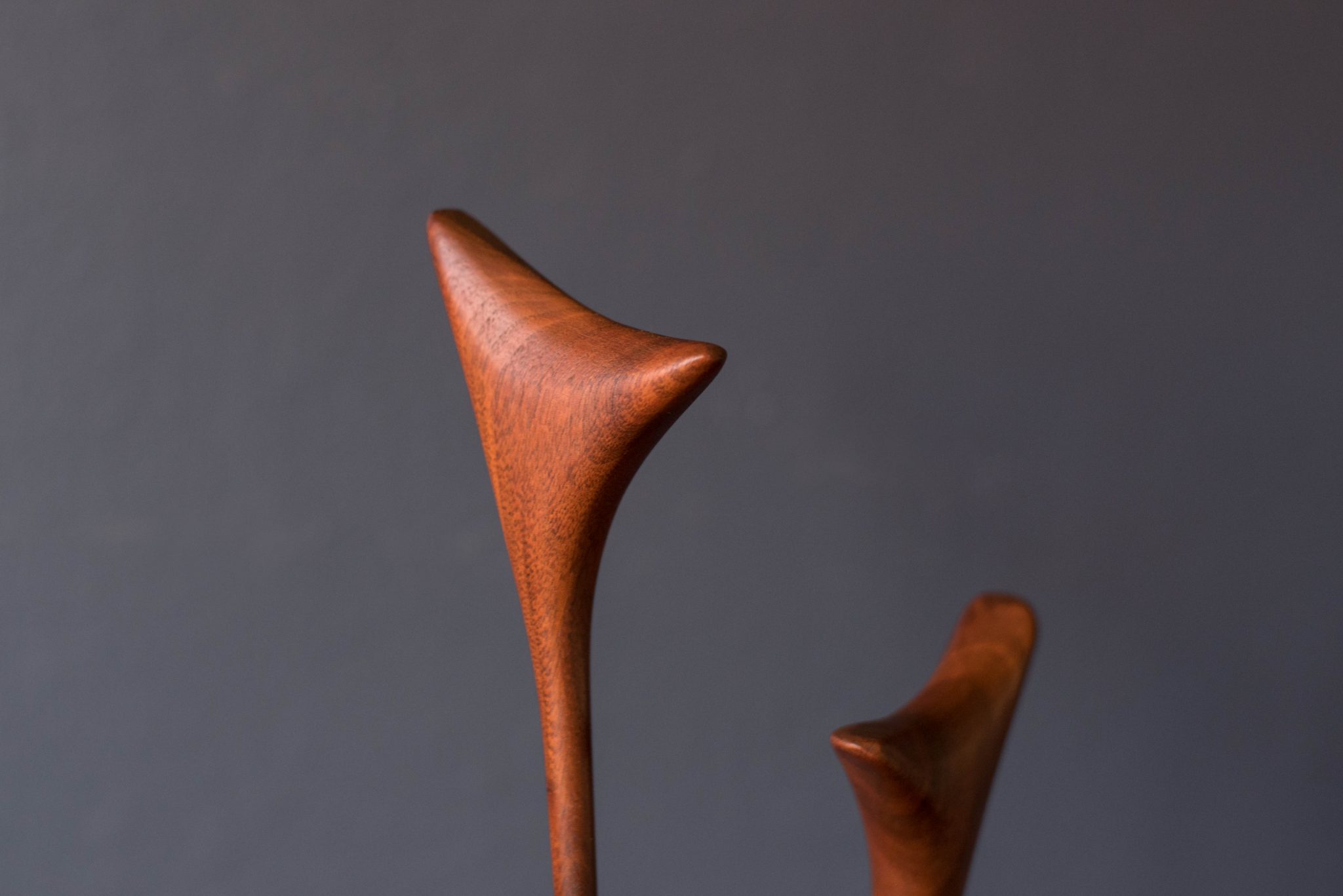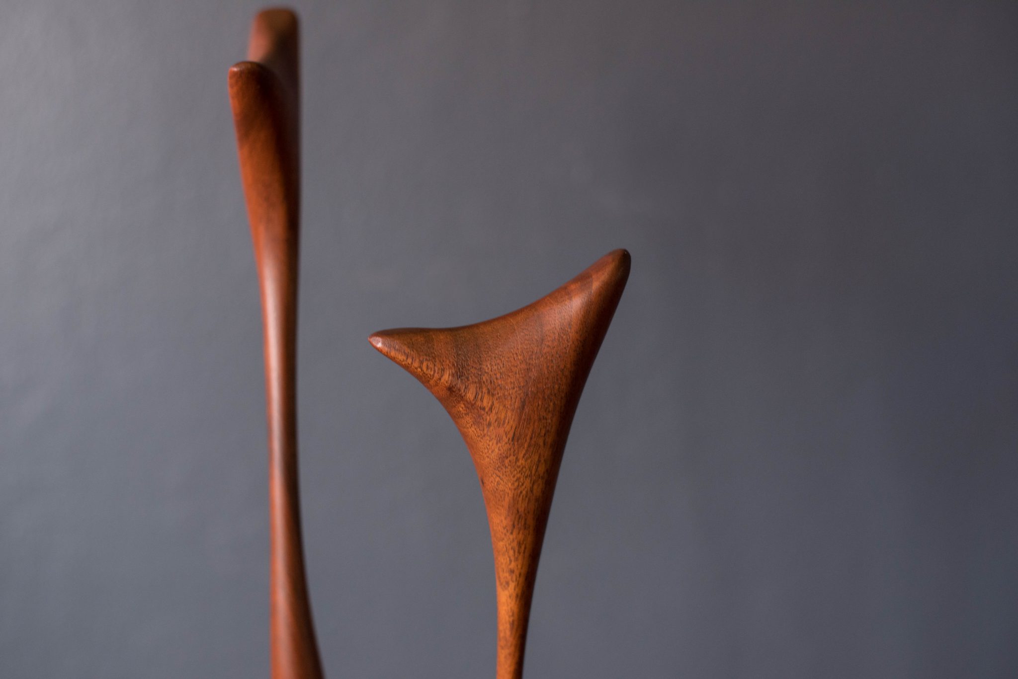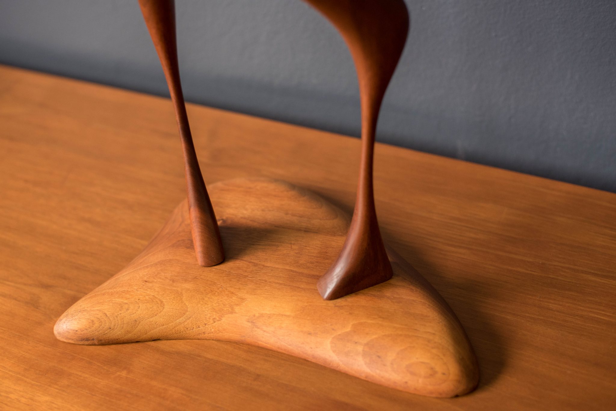 Vintage modernist tall birds sculpture, circa 1960s. This abstract art piece is made of solid teak and can be accessorized with any modern decor.