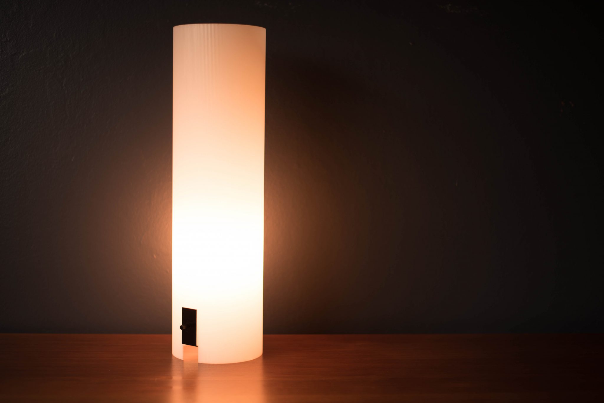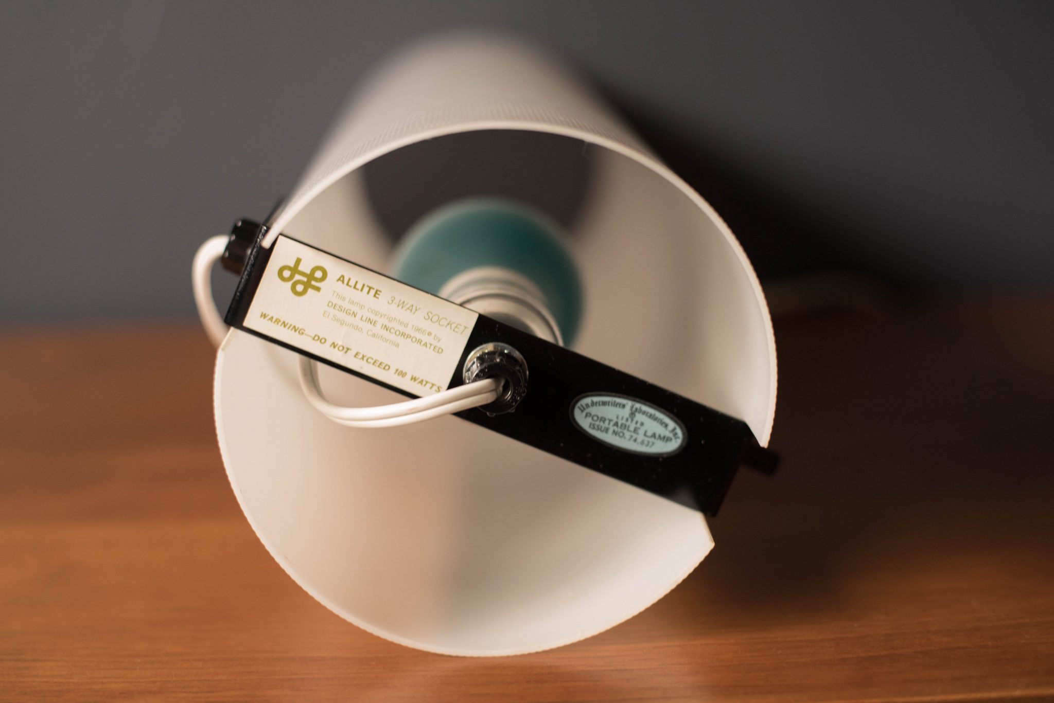 Mid-century modern Allite Lamp designed by Bill Curry for Design Line. This piece comes in a simple cylindrical form and includes a three way switch.