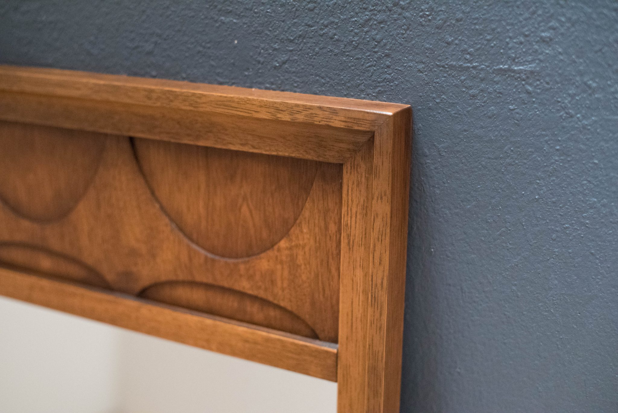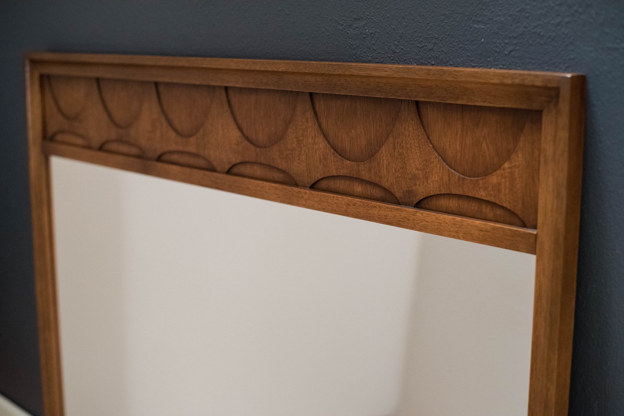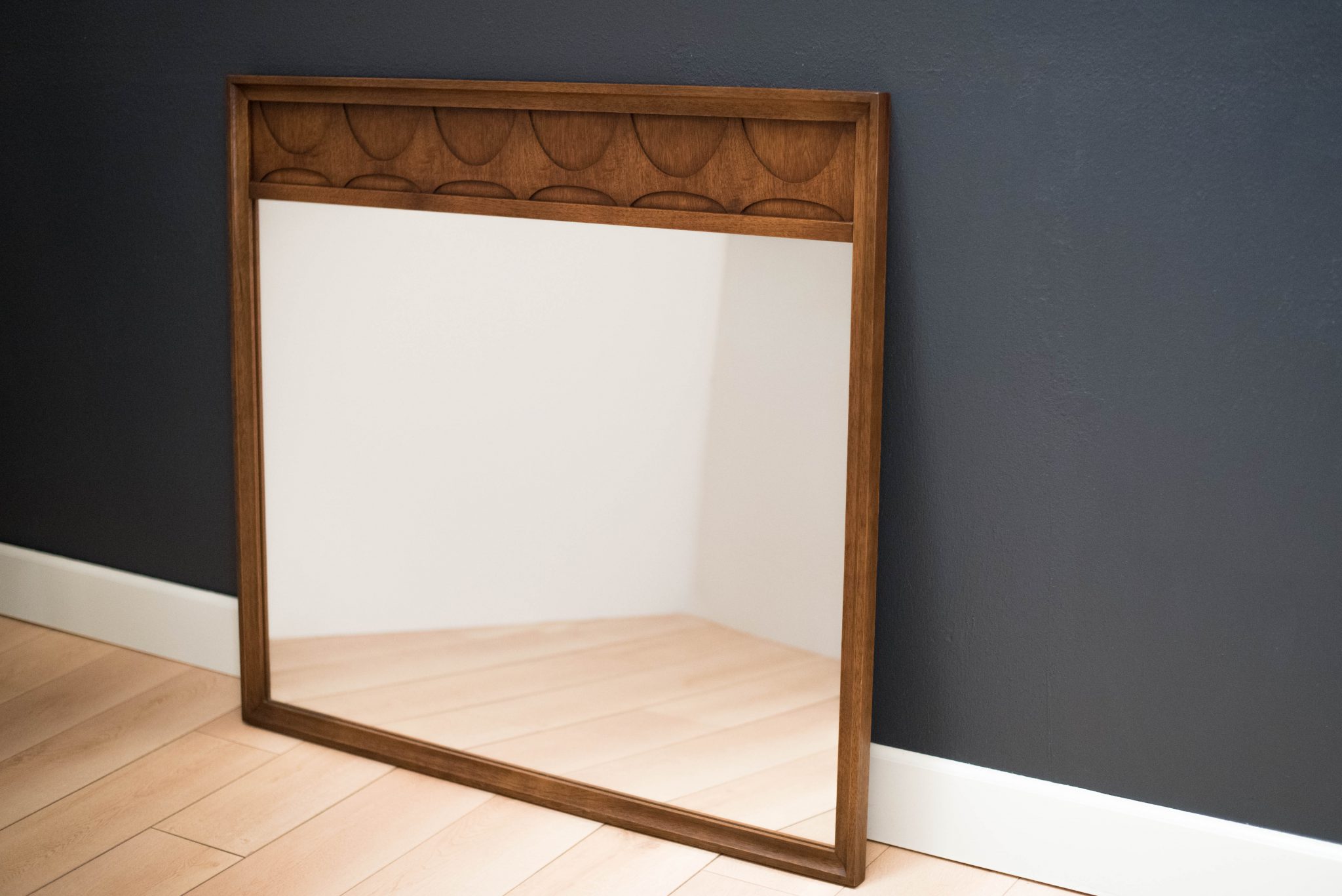 Mid-century Broyhill Brasilia mirror c. 1960’s. This piece features the line’s signature sculpted arches and can be displayed hanging on a wall or attached to a dresser. In good condition with minimal vintage wear.