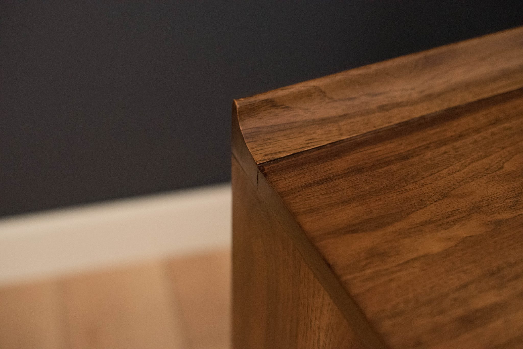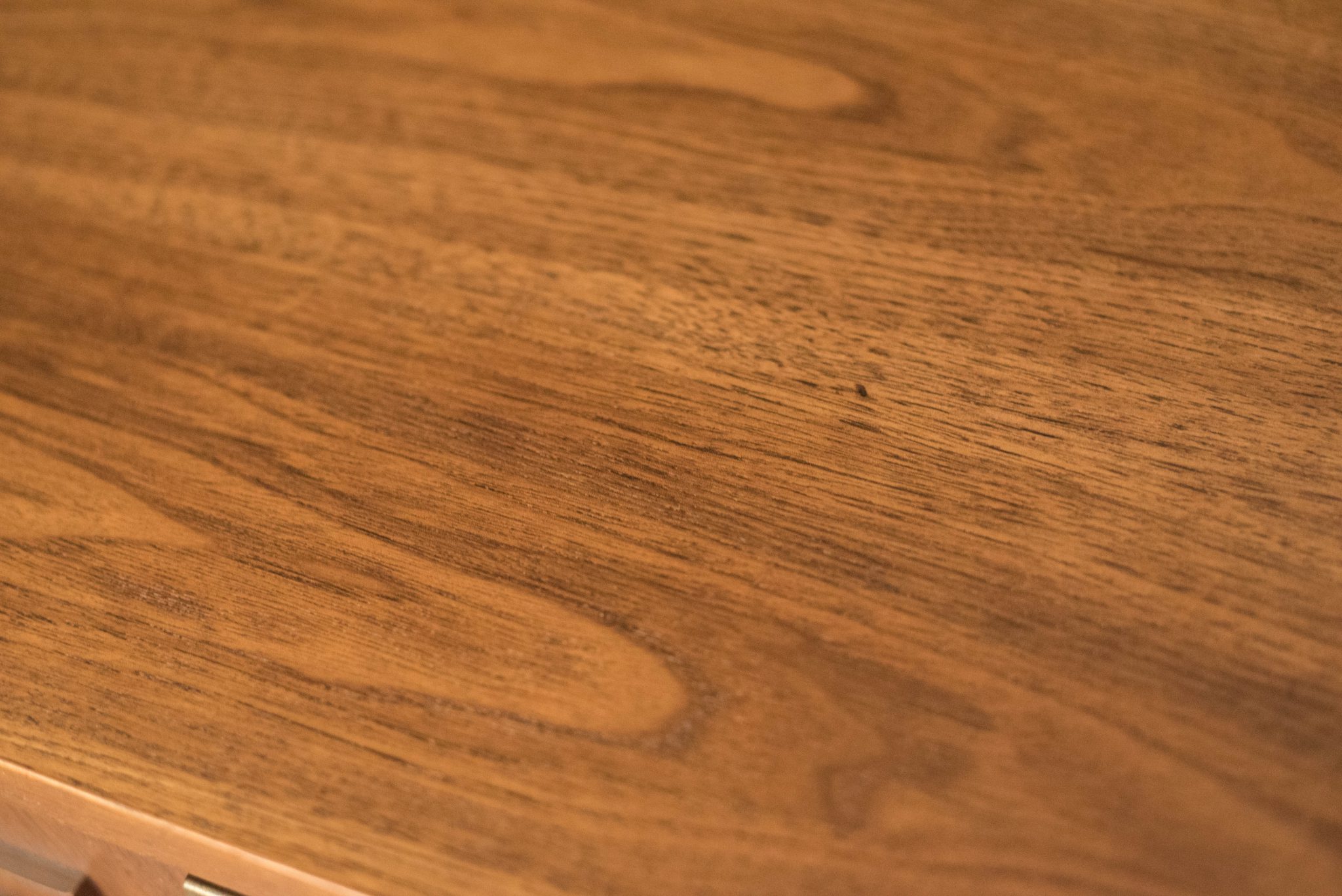 Vintage Sculptra low triple dresser manufactured by Broyhill in walnut. This piece features the line’s signature cat eye pulls and sculpted raised edge in oak. Offers plenty of storage and is equipped with nine dovetailed drawers.