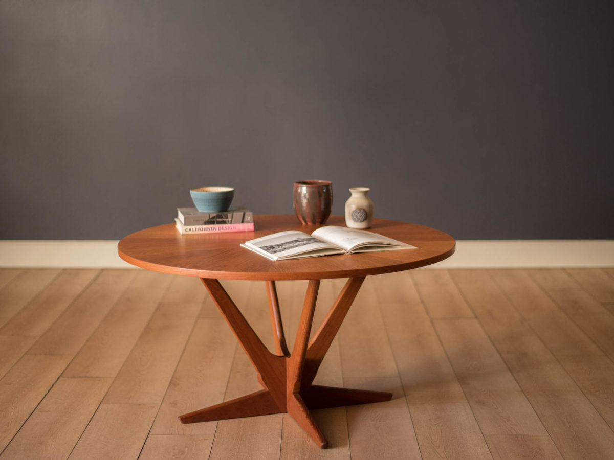 Mid-Century Modern expandable teak dining table, circa 1970s. This piece is made of solid planked teak and extends with one or two additional leaves.