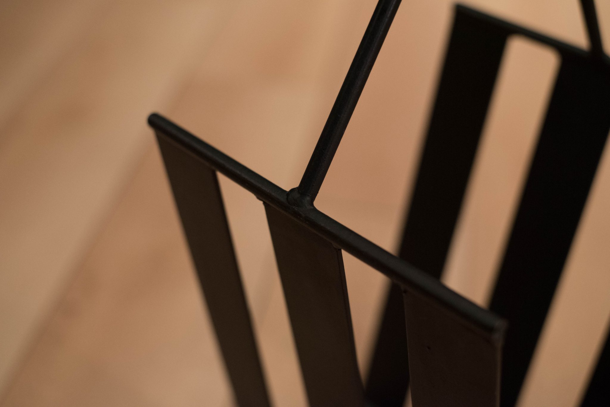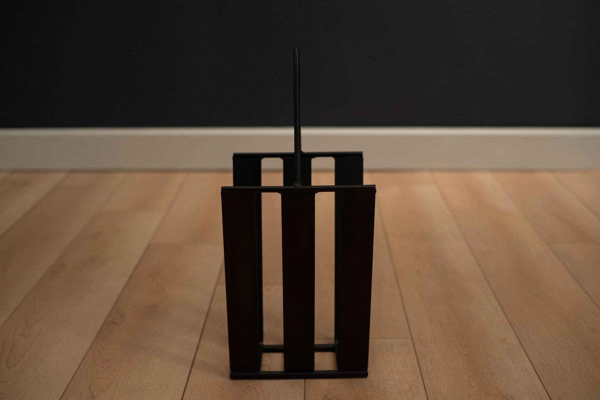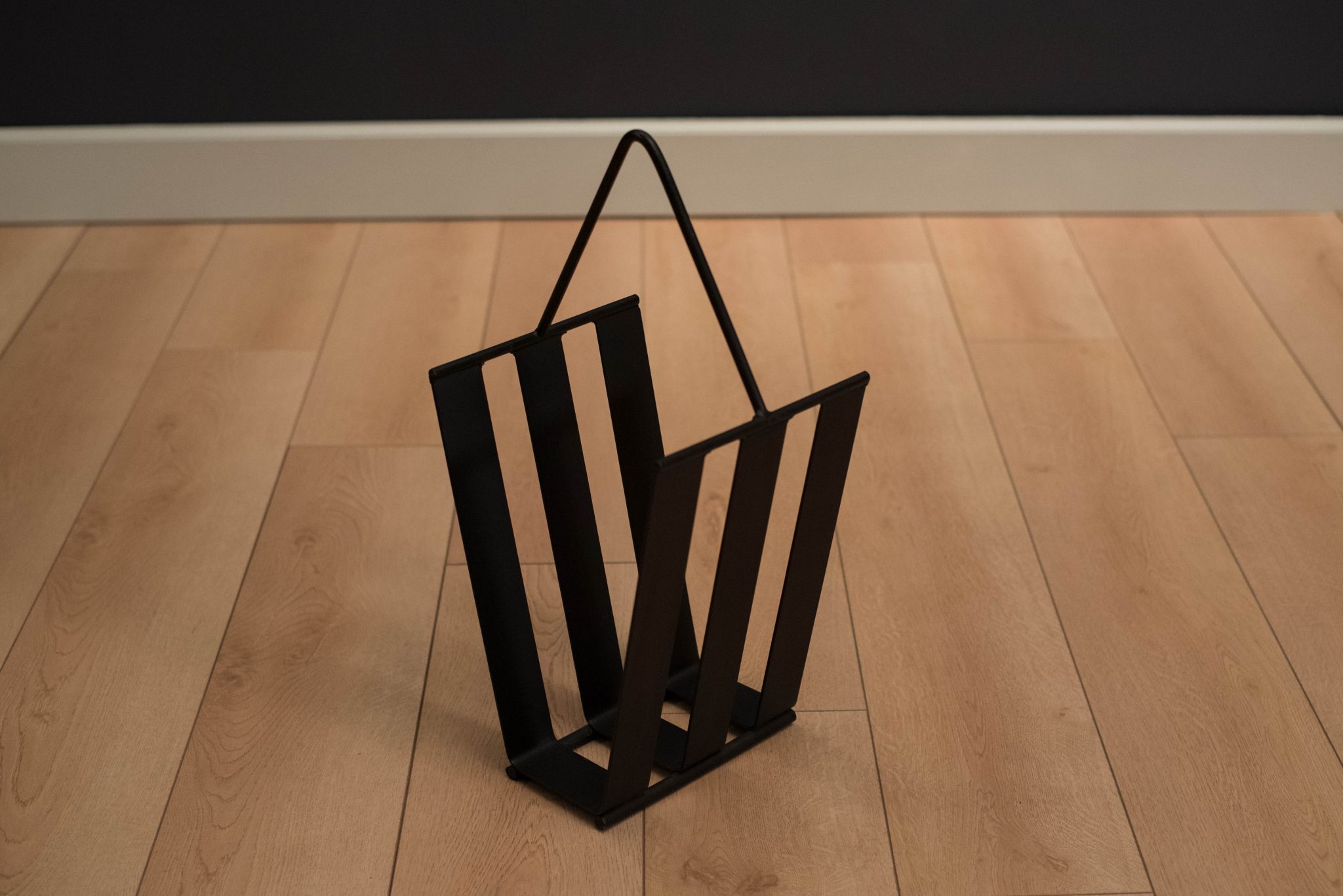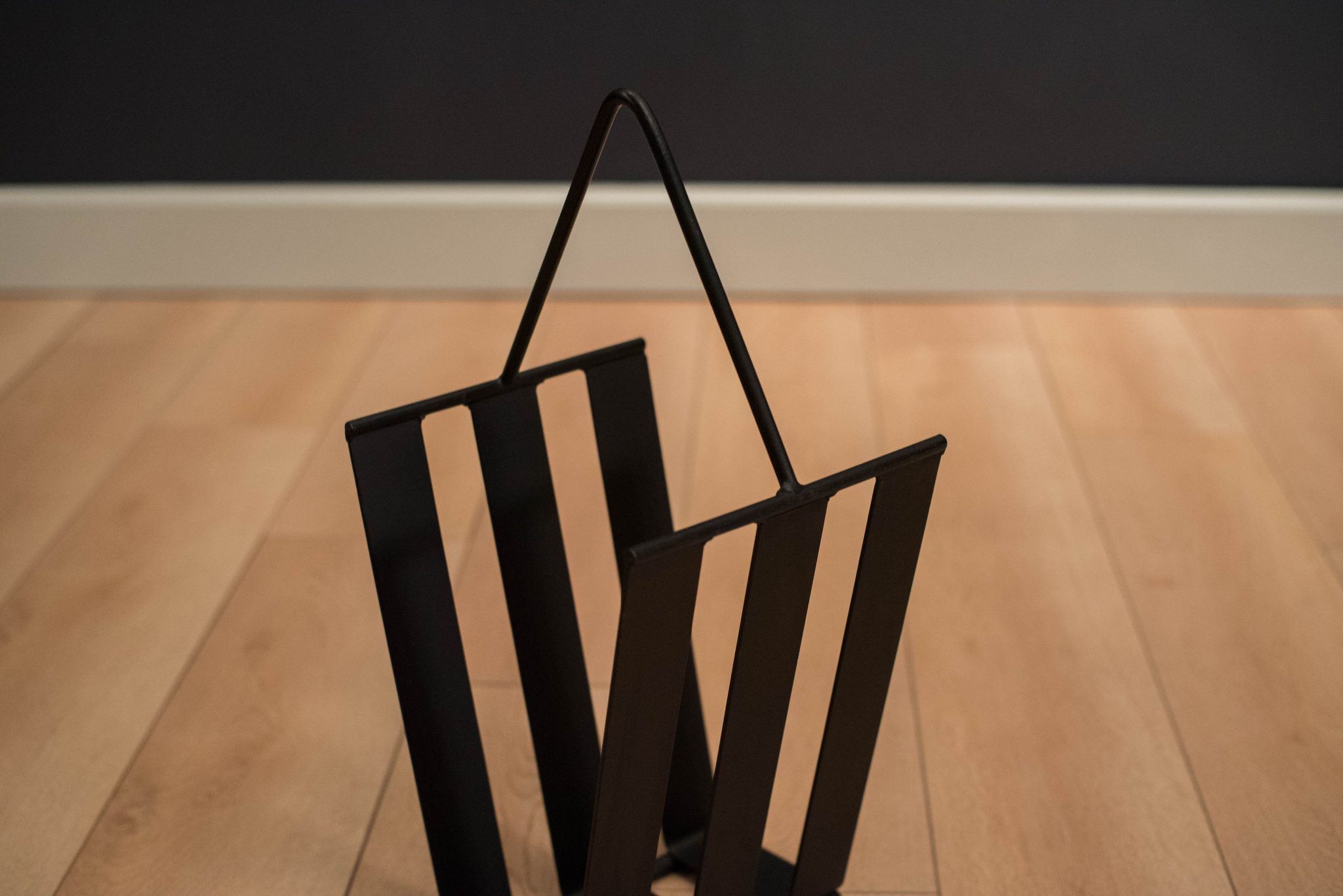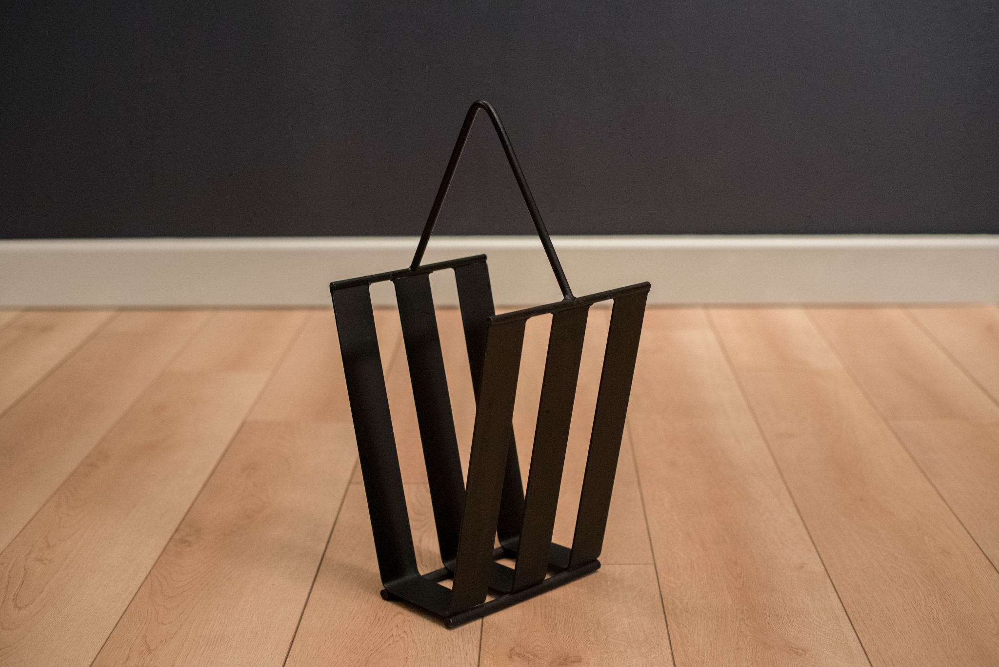 Mid Century Magazine Holder in black iron c. 1960’s. This piece can hold reading material or lp records and is in great condition with minimal vintage wear.