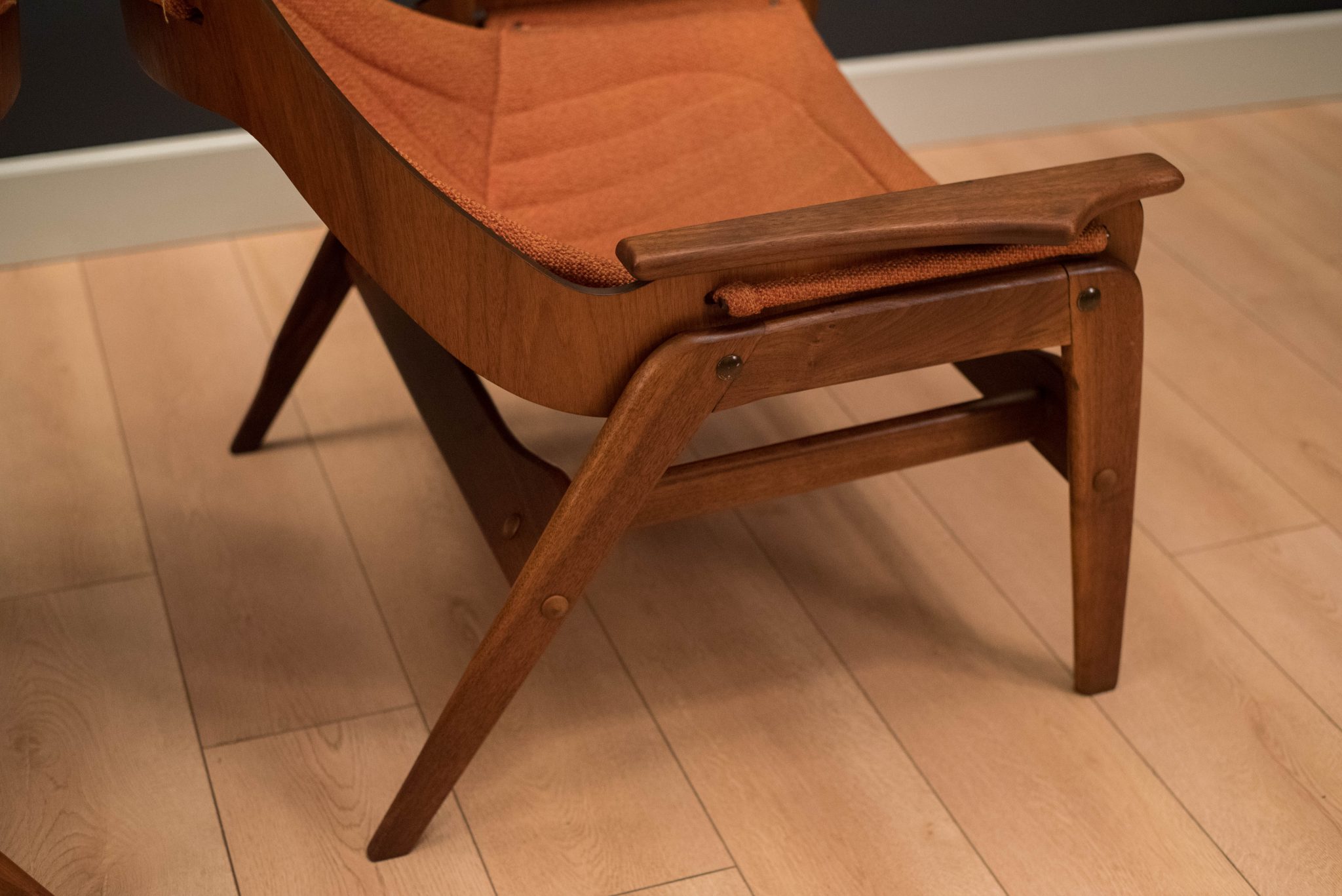Mid Century Jerry Johnson Walnut Sling Chairs