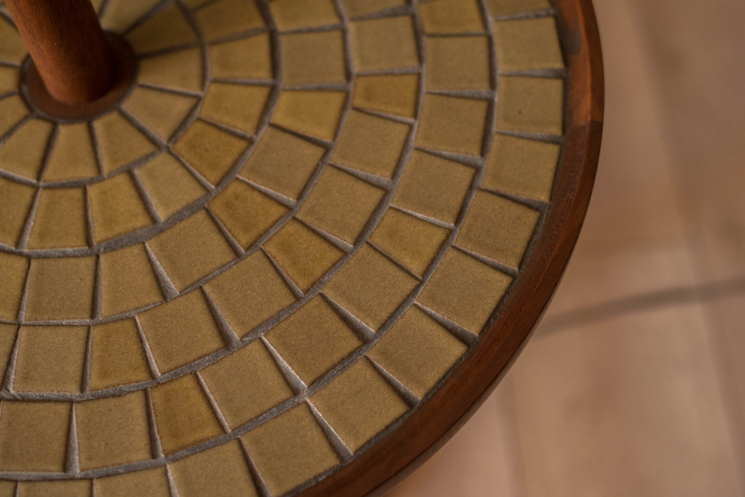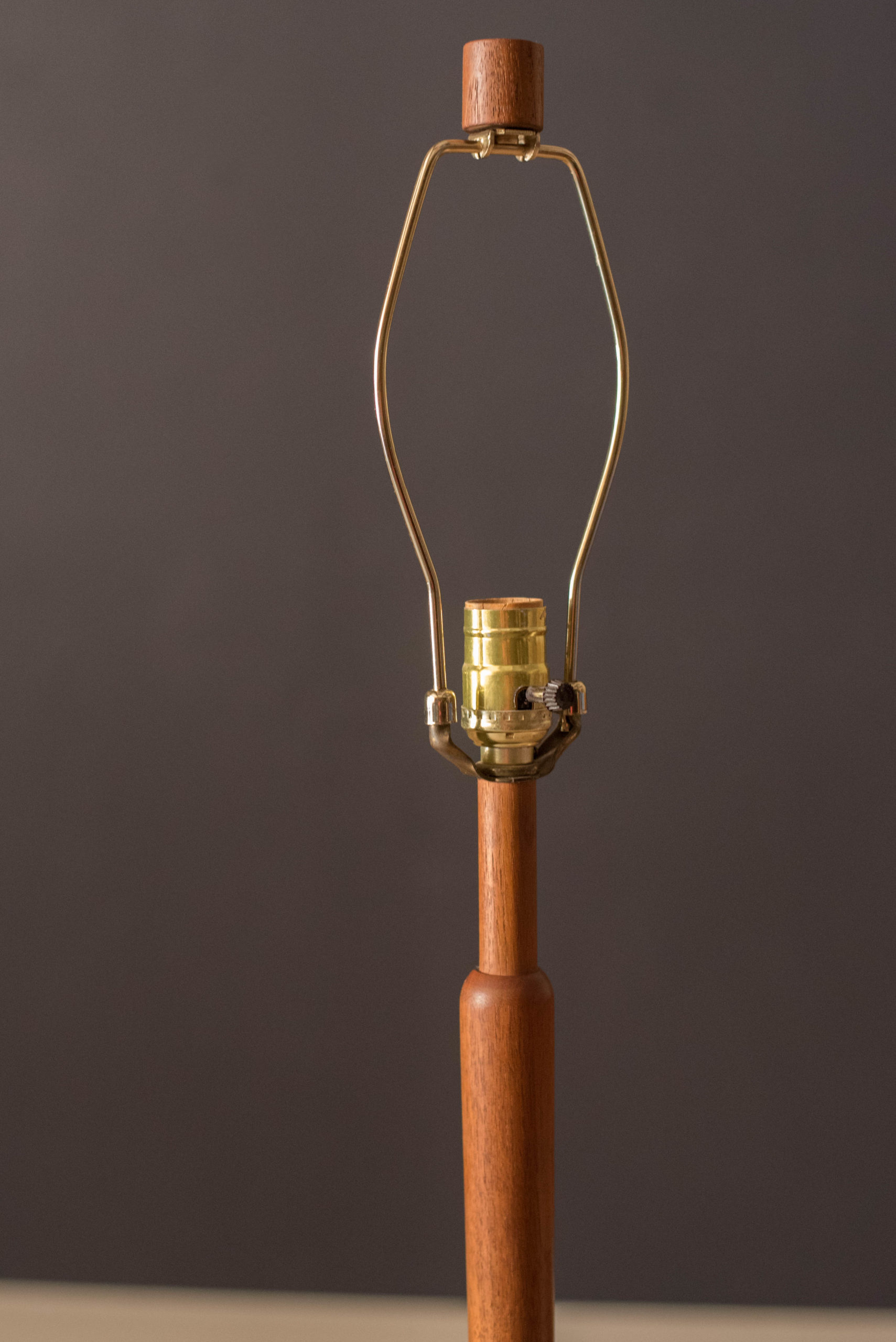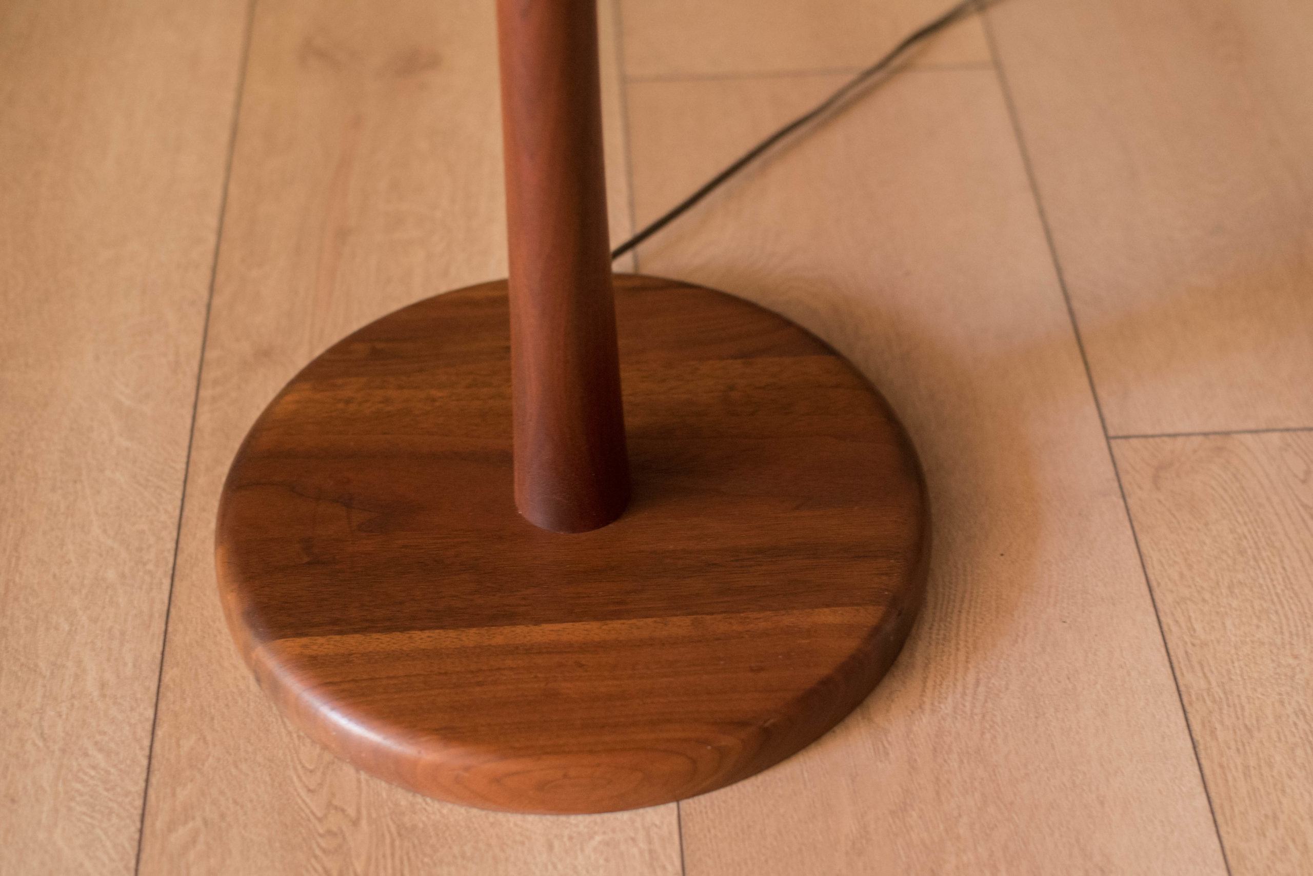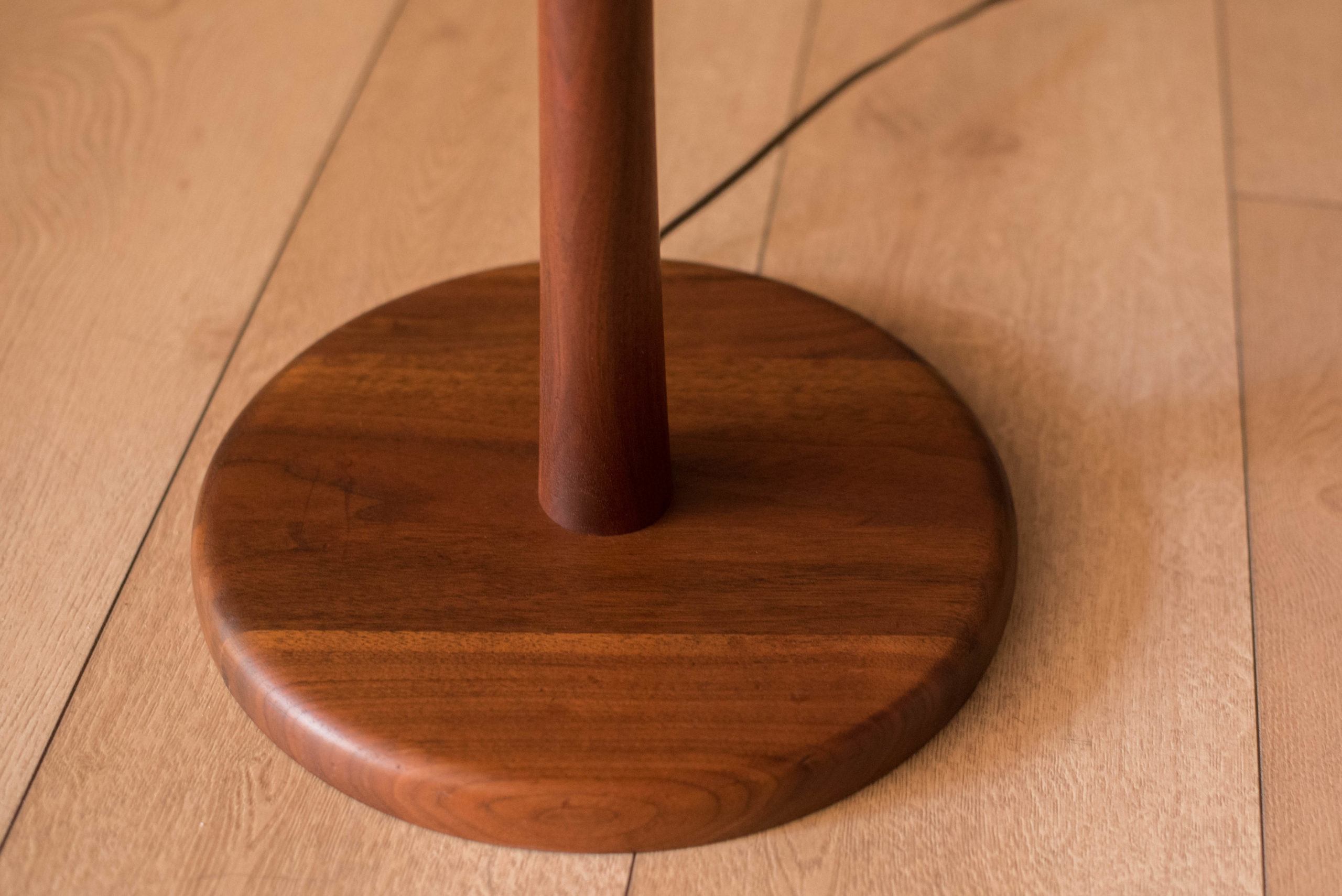 Mid Century Table Floor Lamp by Jane and Gordon Martz for Marshall Studios. The base is made of solid walnut and features a functional inlaid tile table with neutral tones. Includes a three-way switch. In great condition with minimal vintage wear. Shade is not included.