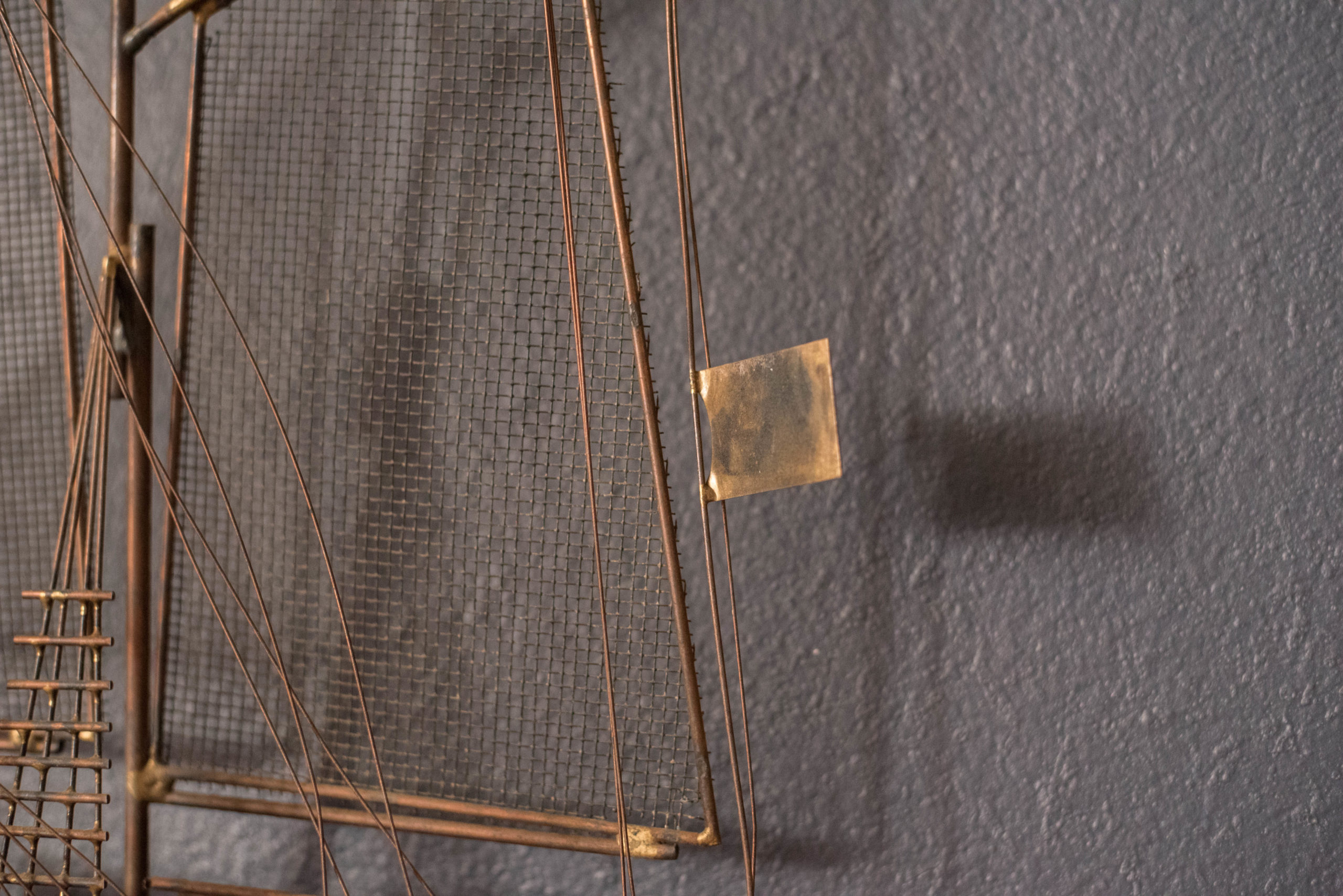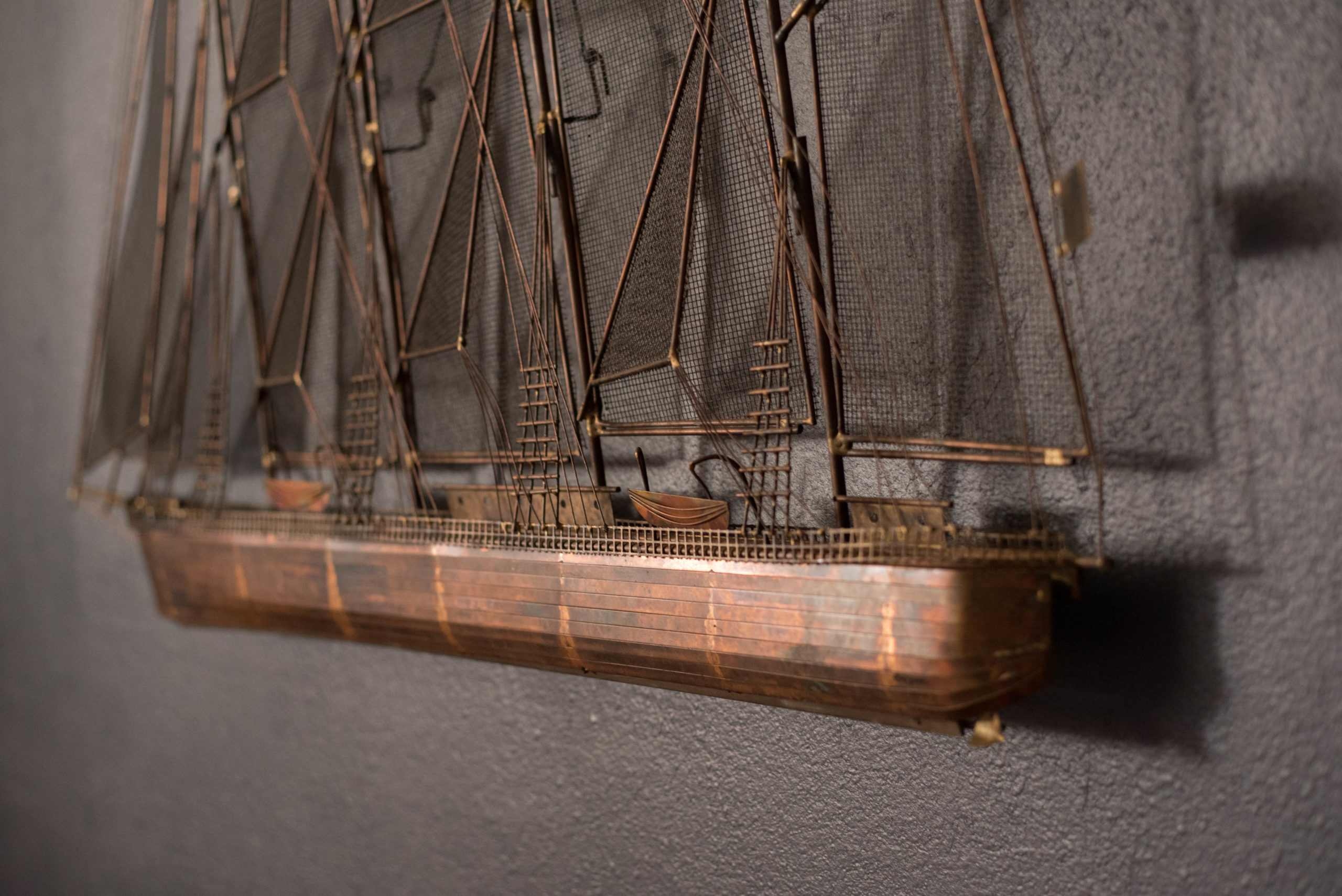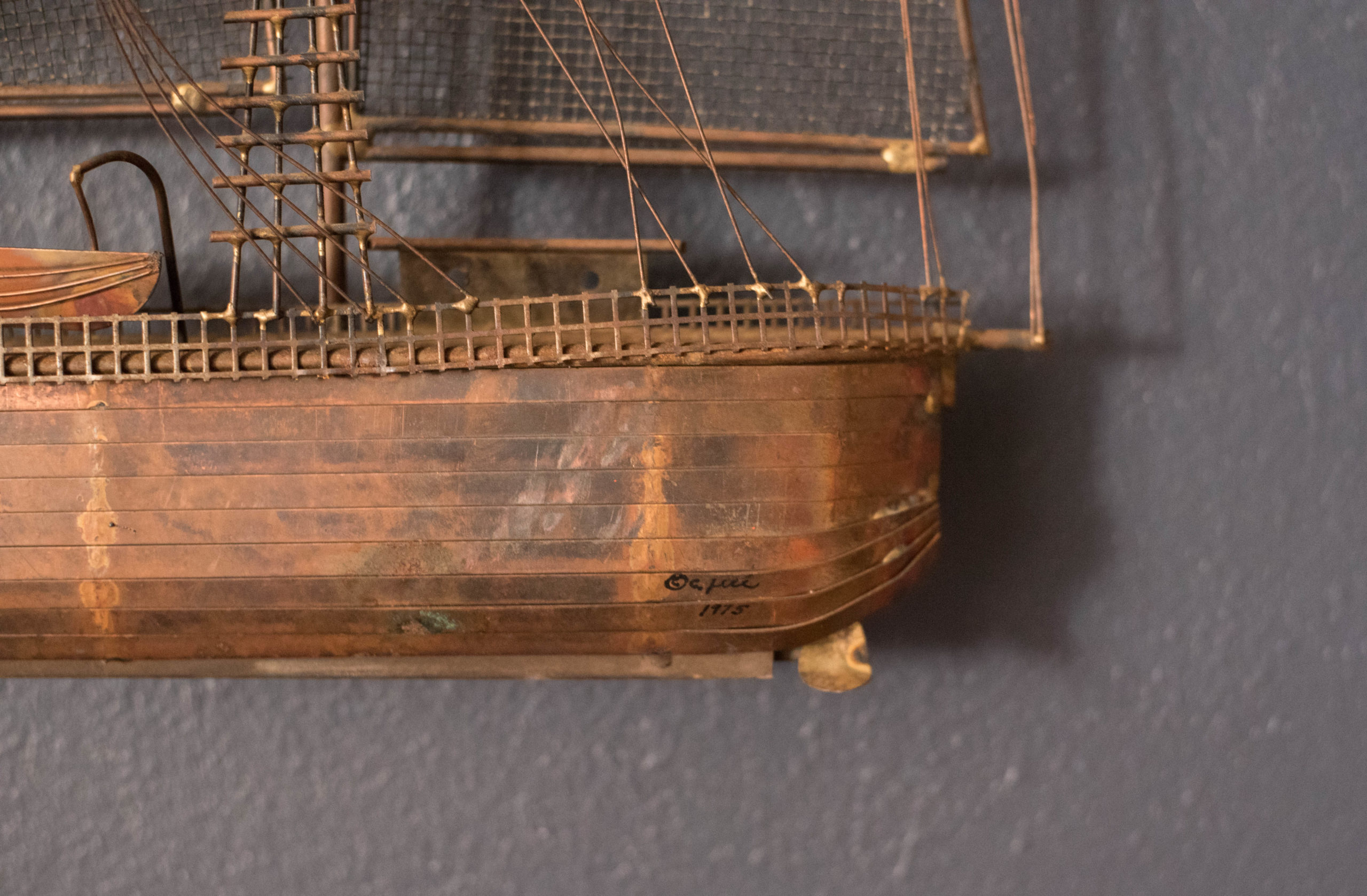 Mid Century Modern Copper Clipper Ship Wall Art Sculpture by Curtis Jere