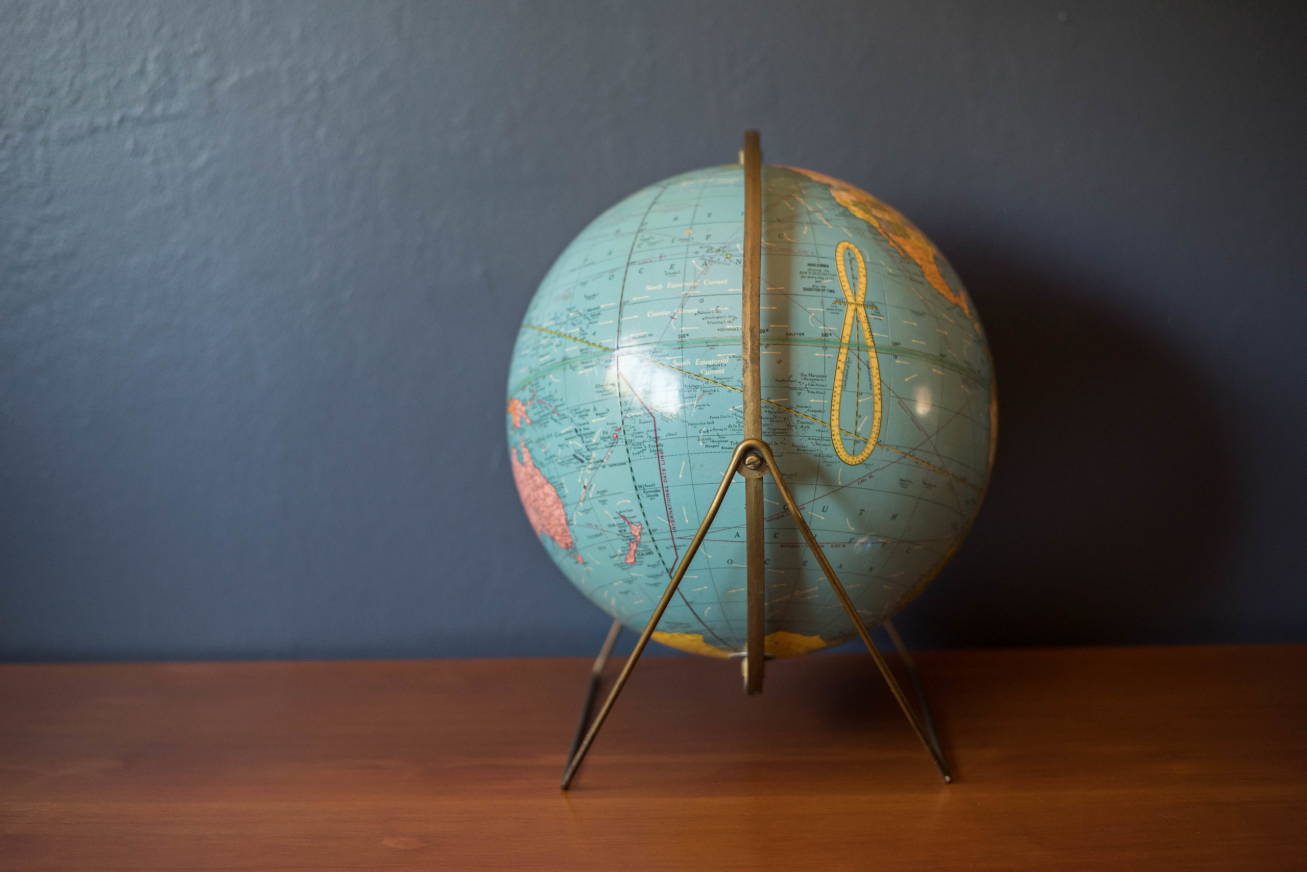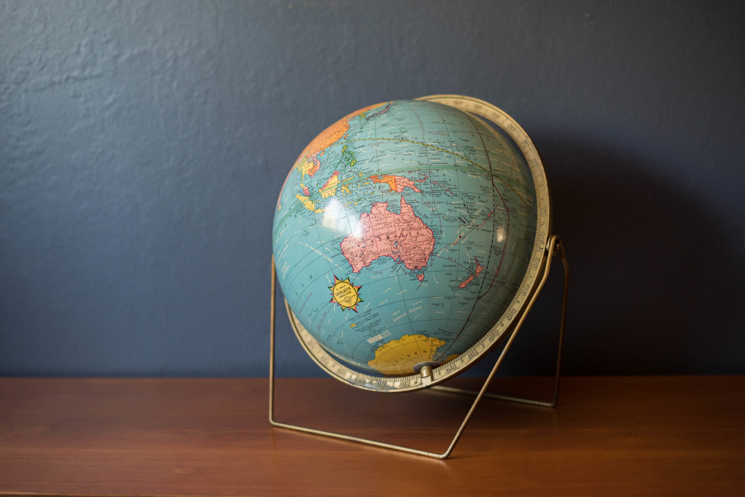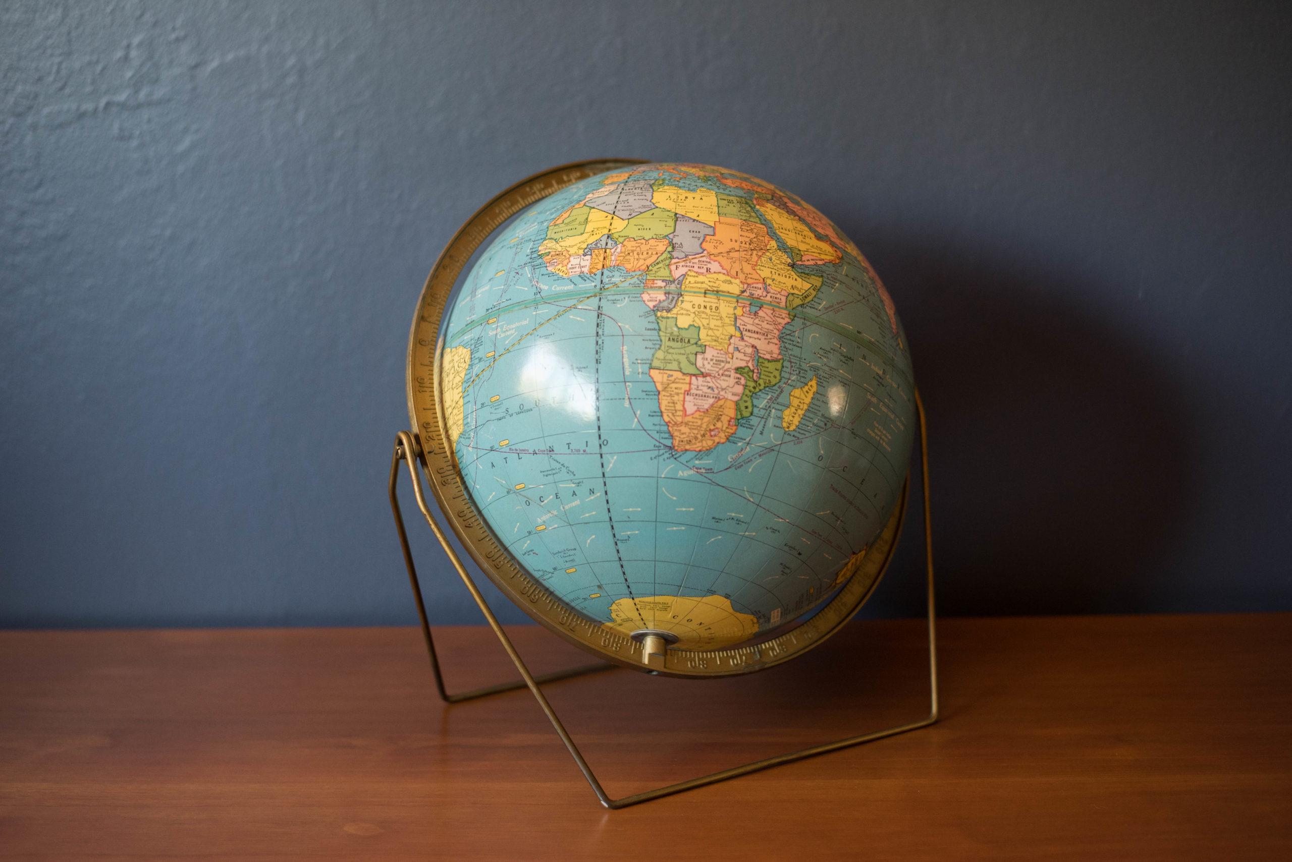 Mid-Century Modern Desktop Scholastic World Globe on Brass Stand