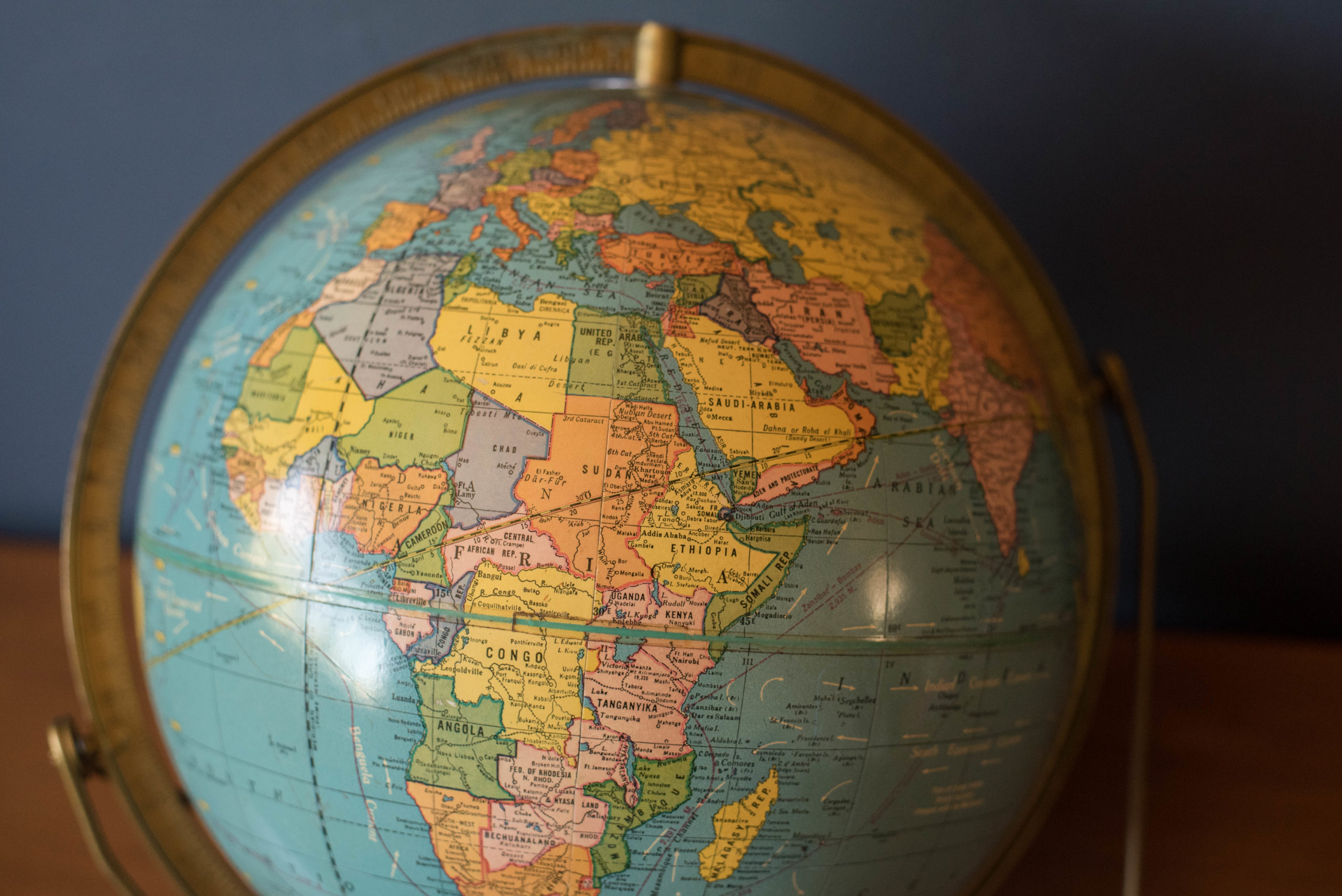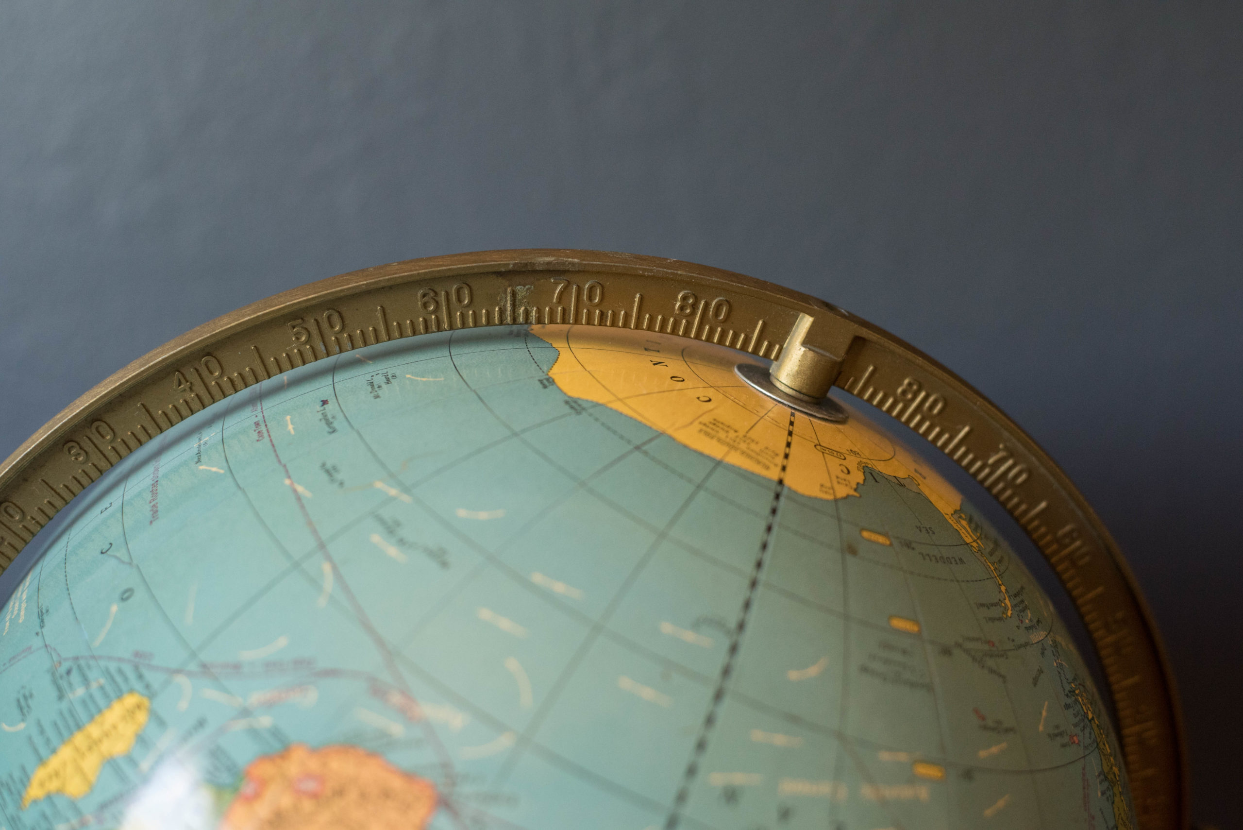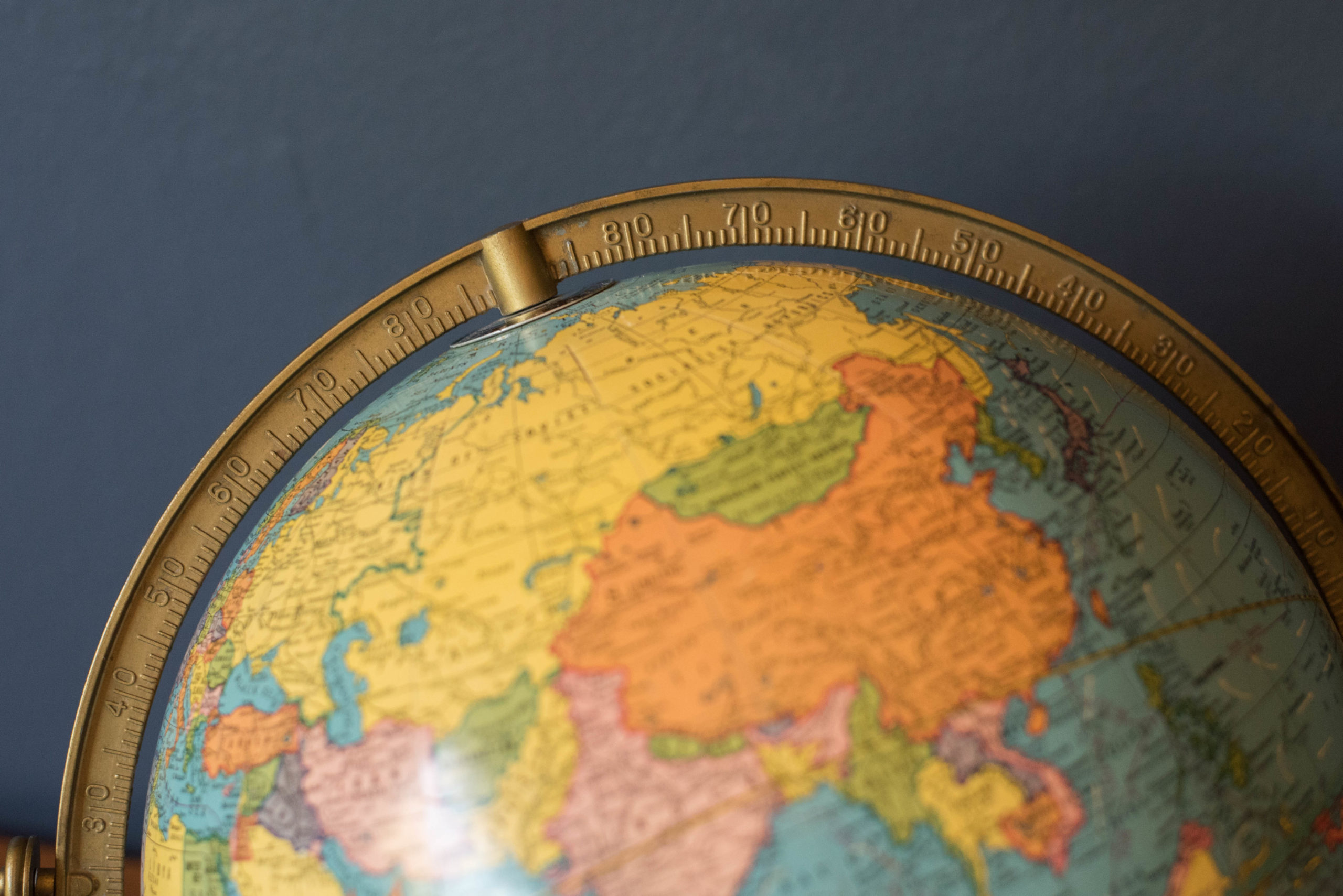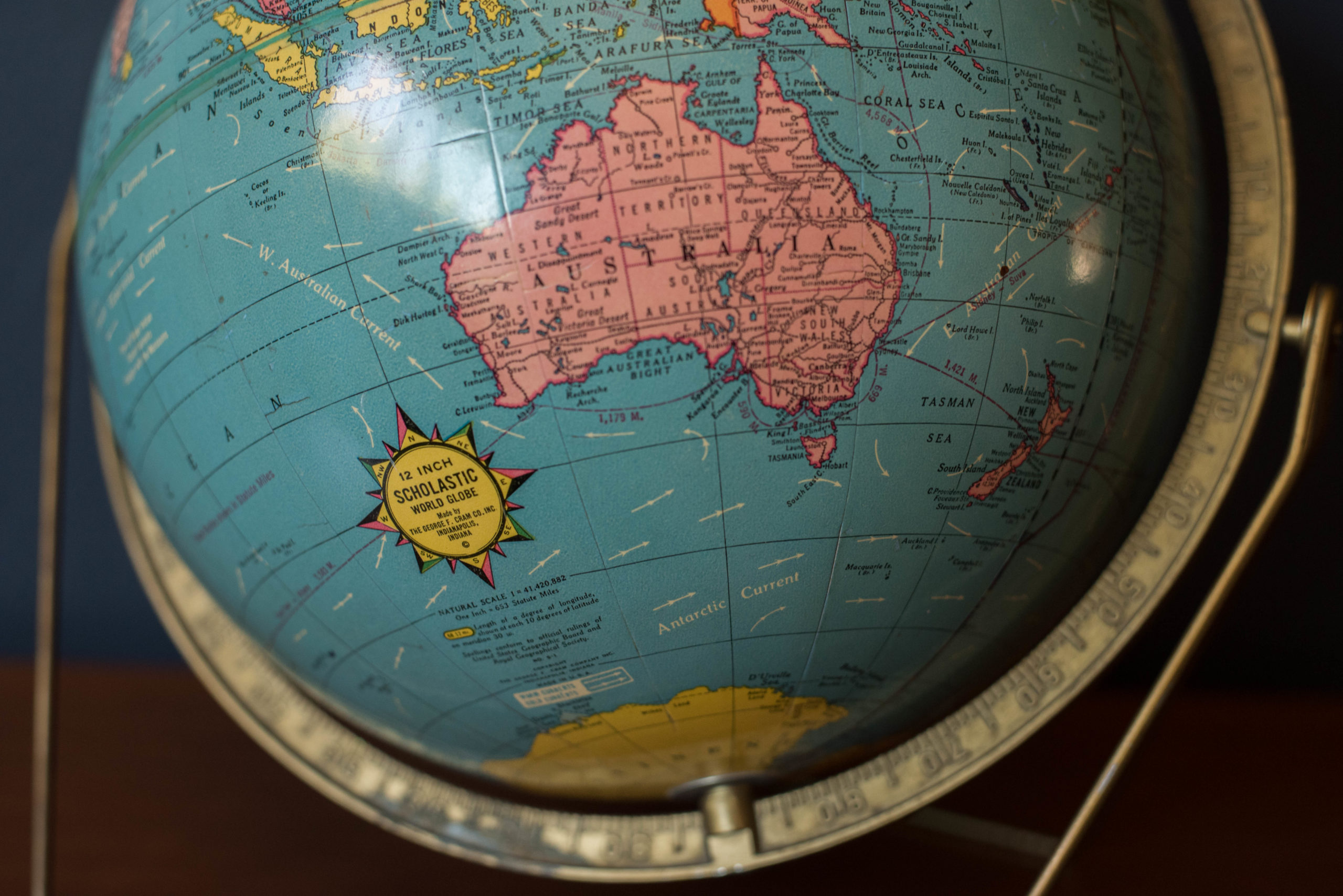 Mid-Century Modern Desktop Scholastic World Globe on Brass Stand