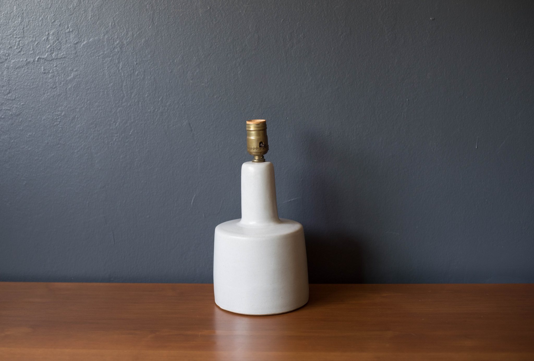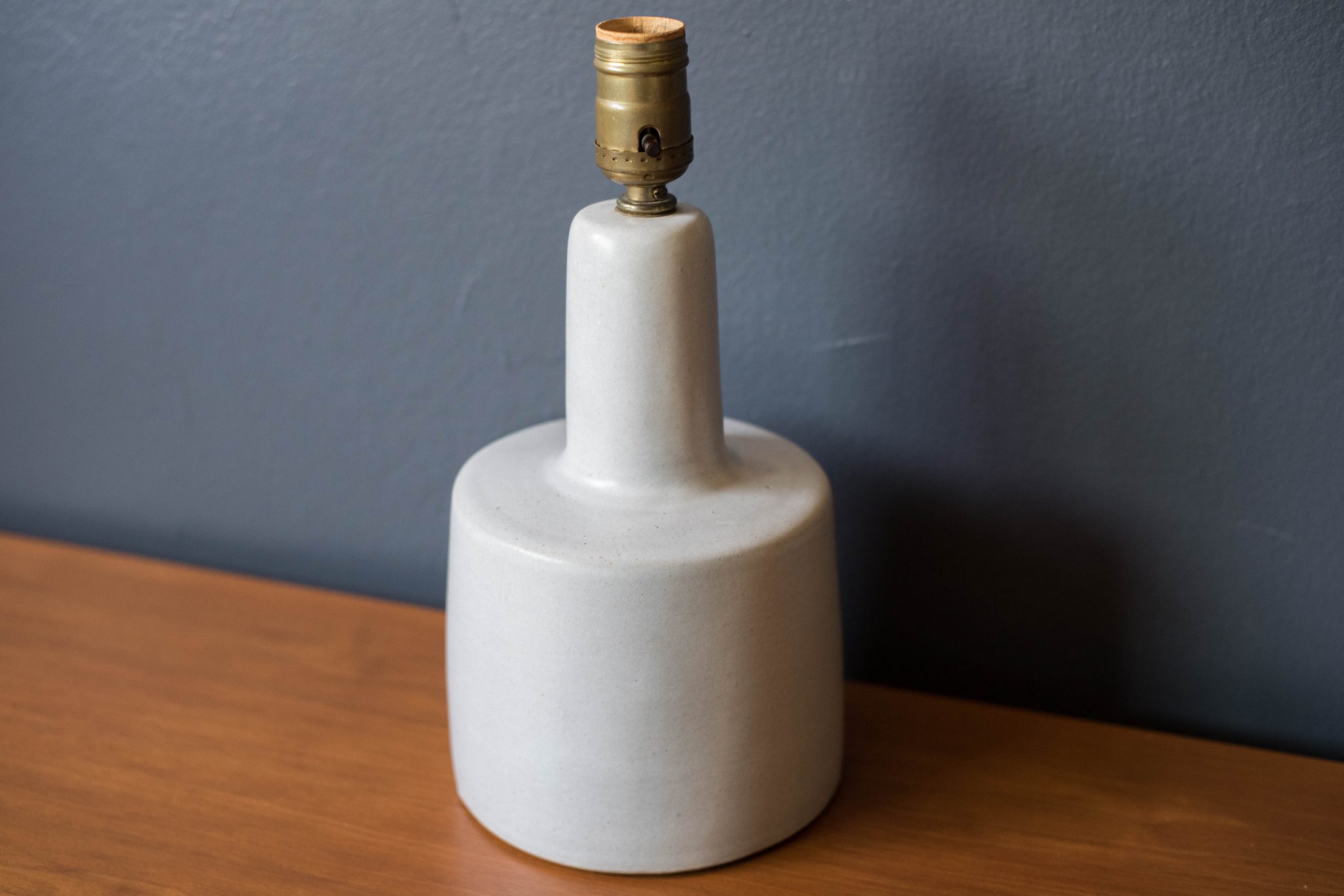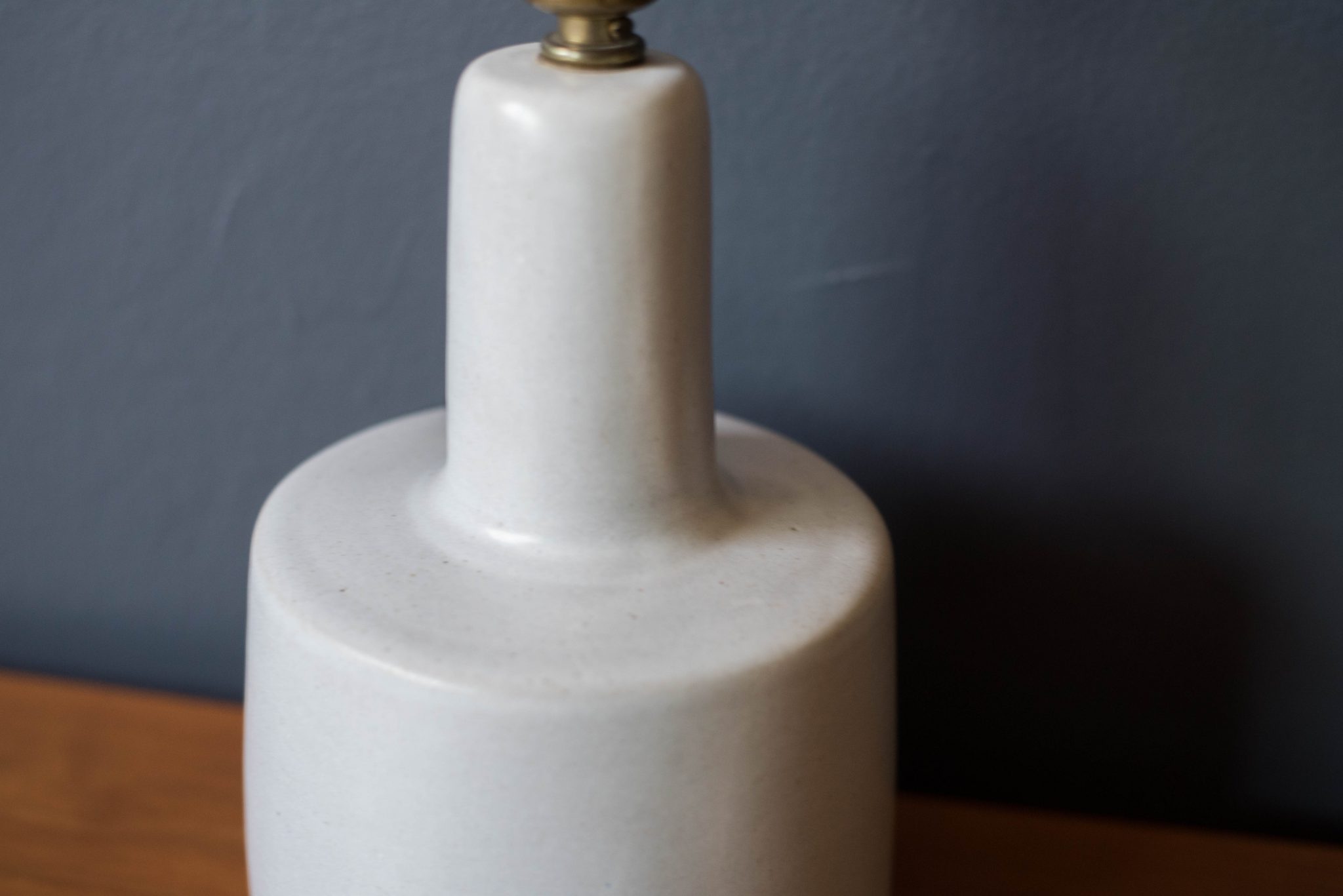 Mid Century stoneware pottery lamp by Jane and Gordon Martz for Marshall Studios. This piece displays an off white or light grey matte finish.
