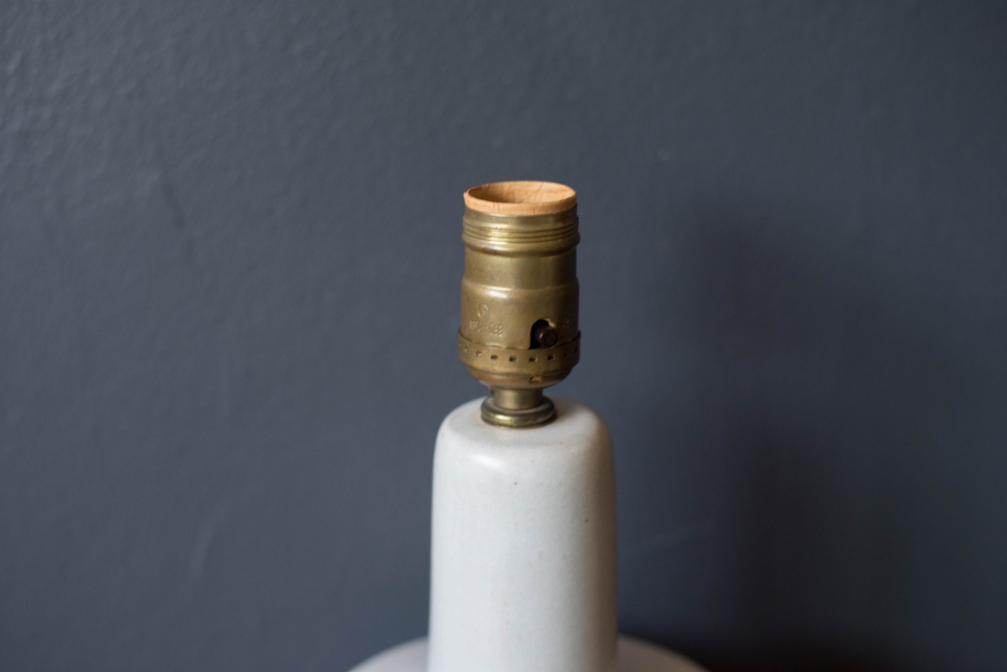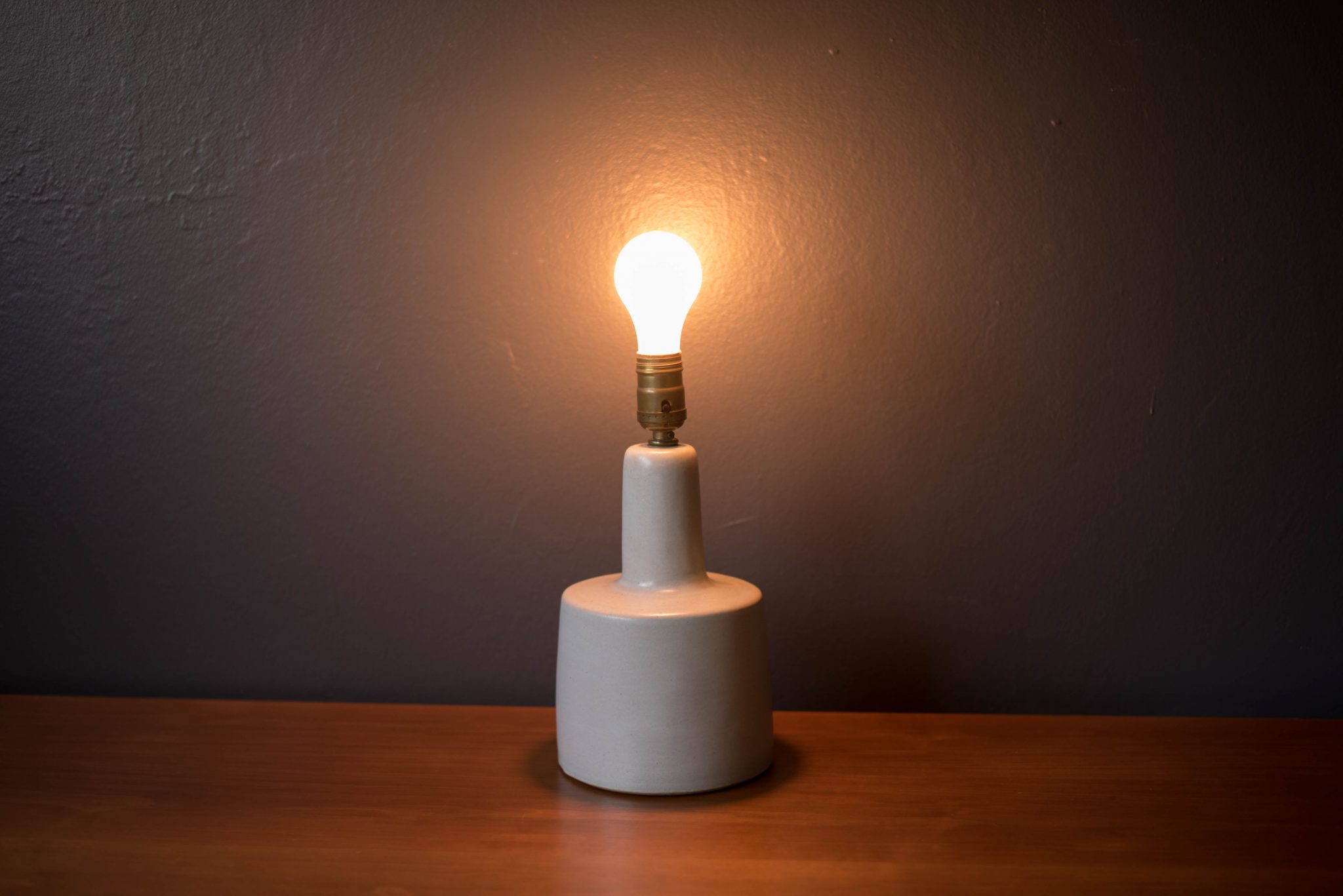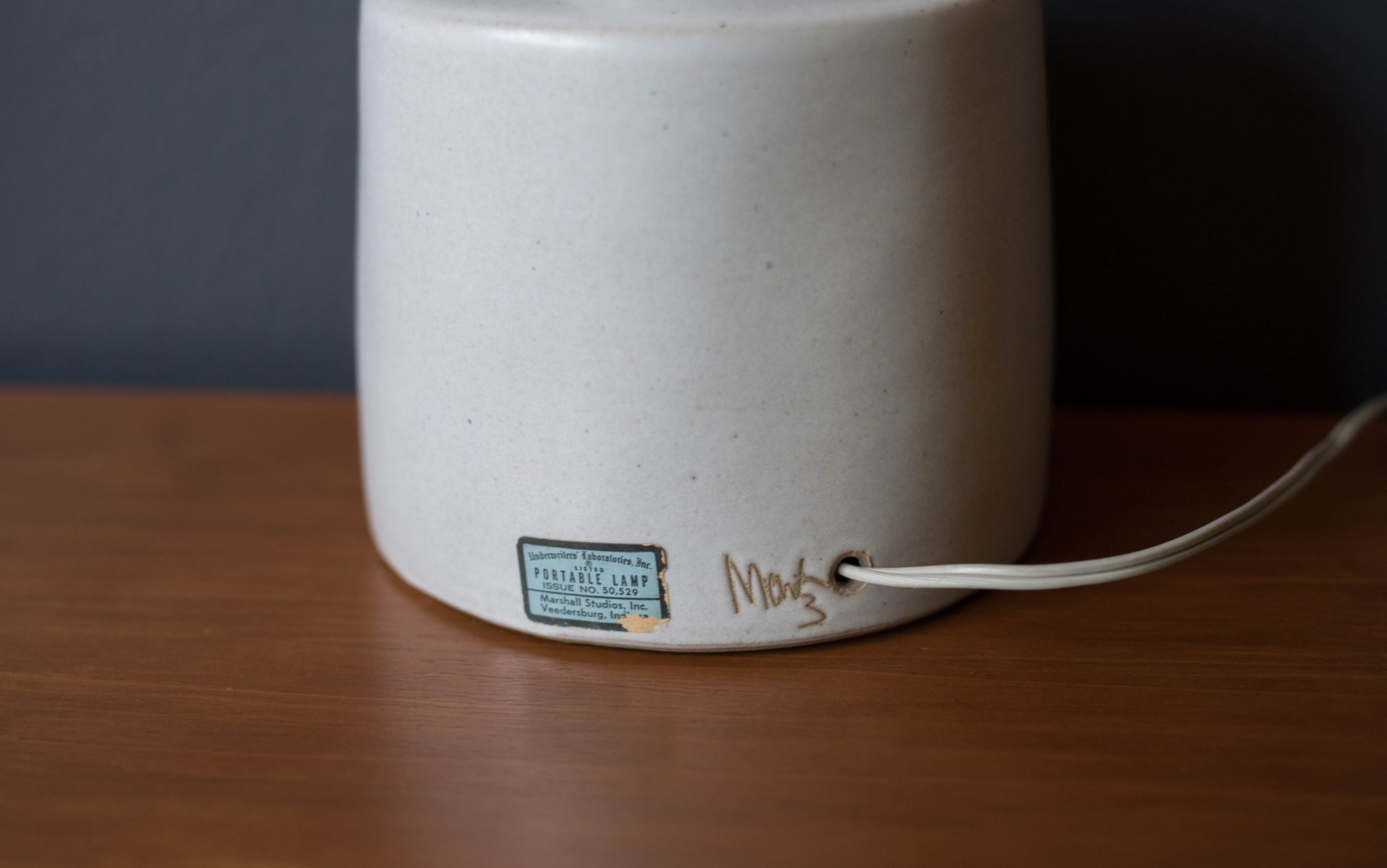 Mid Century stoneware pottery lamp by Jane and Gordon Martz for Marshall Studios. This piece displays an off white or light grey matte finish.