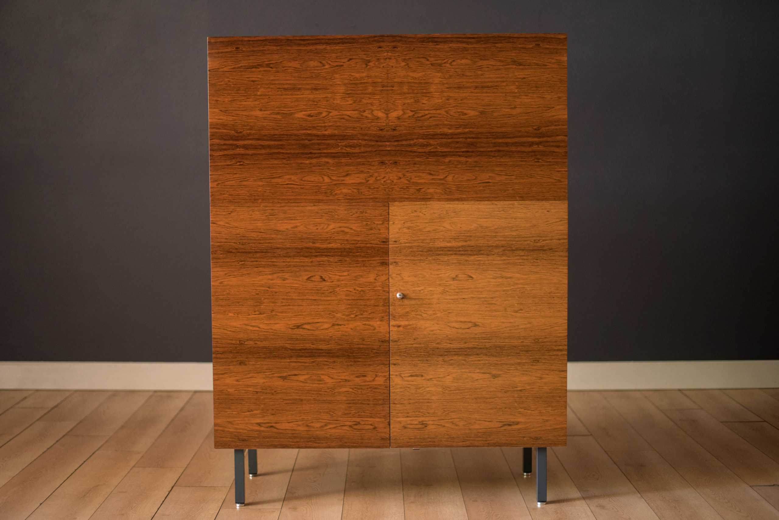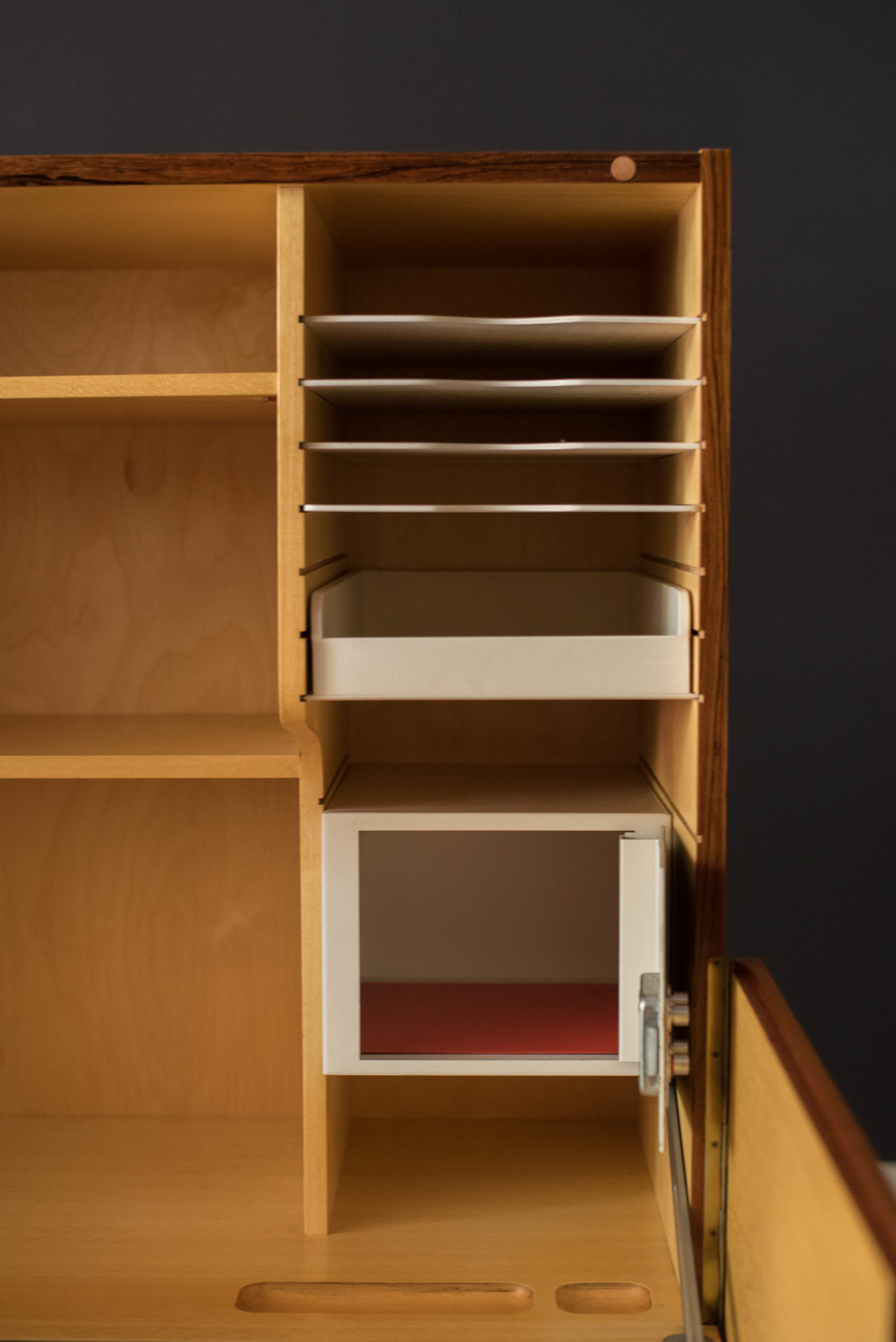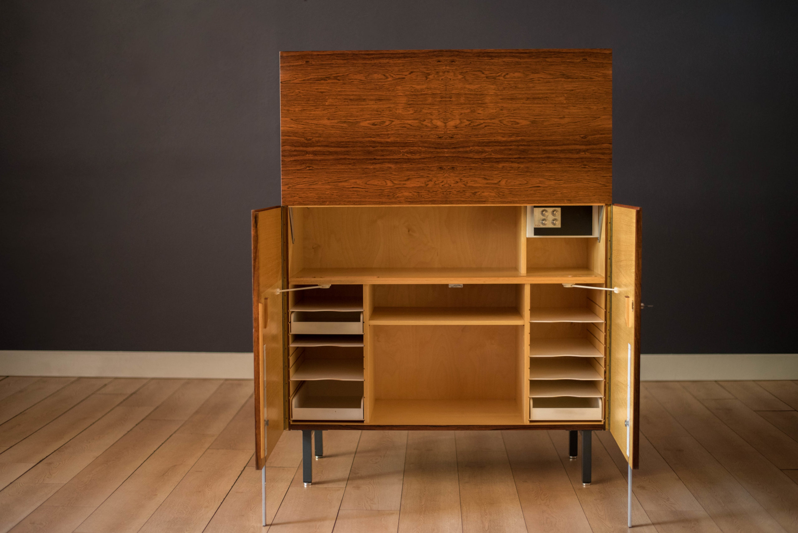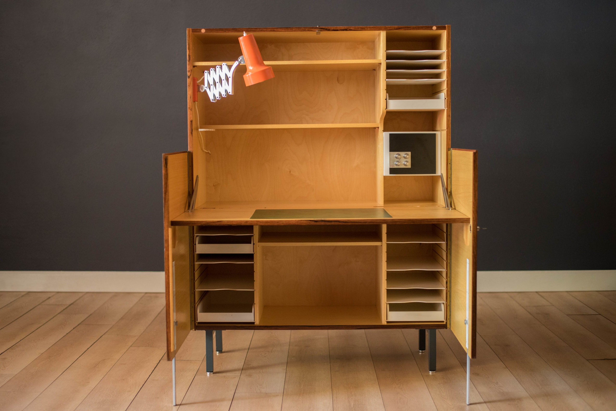 Mid-Century Modern Rosewood Fold Out Secretary Office Desk Cabinet