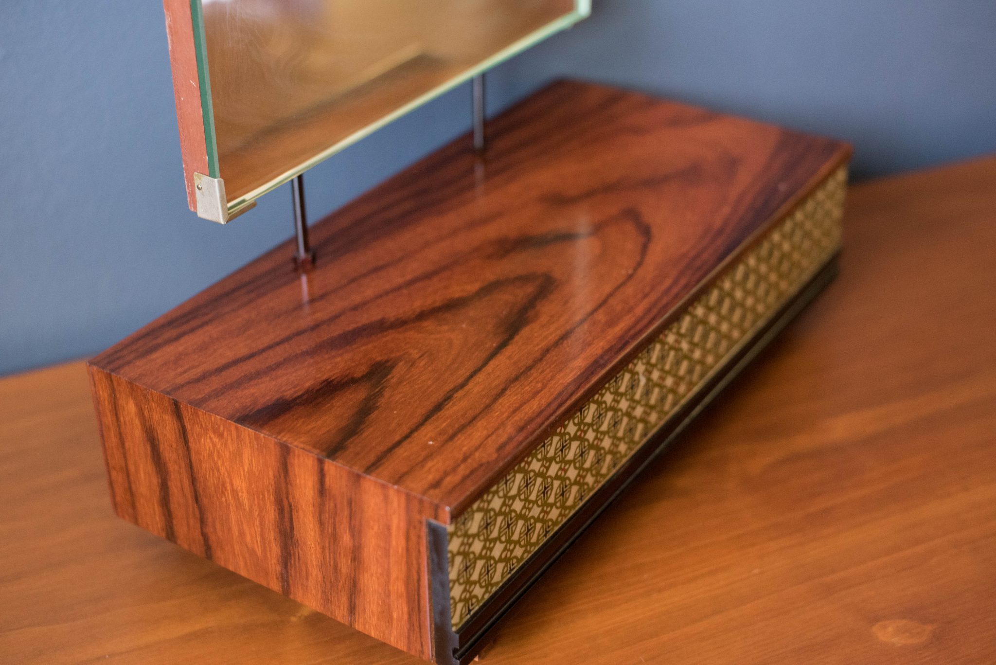 Mid-Century Modern Rosewood Jewelry Box with Mirror