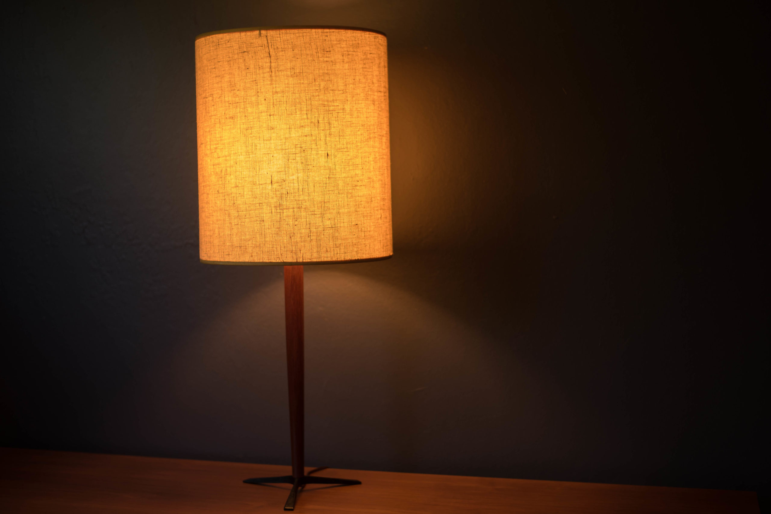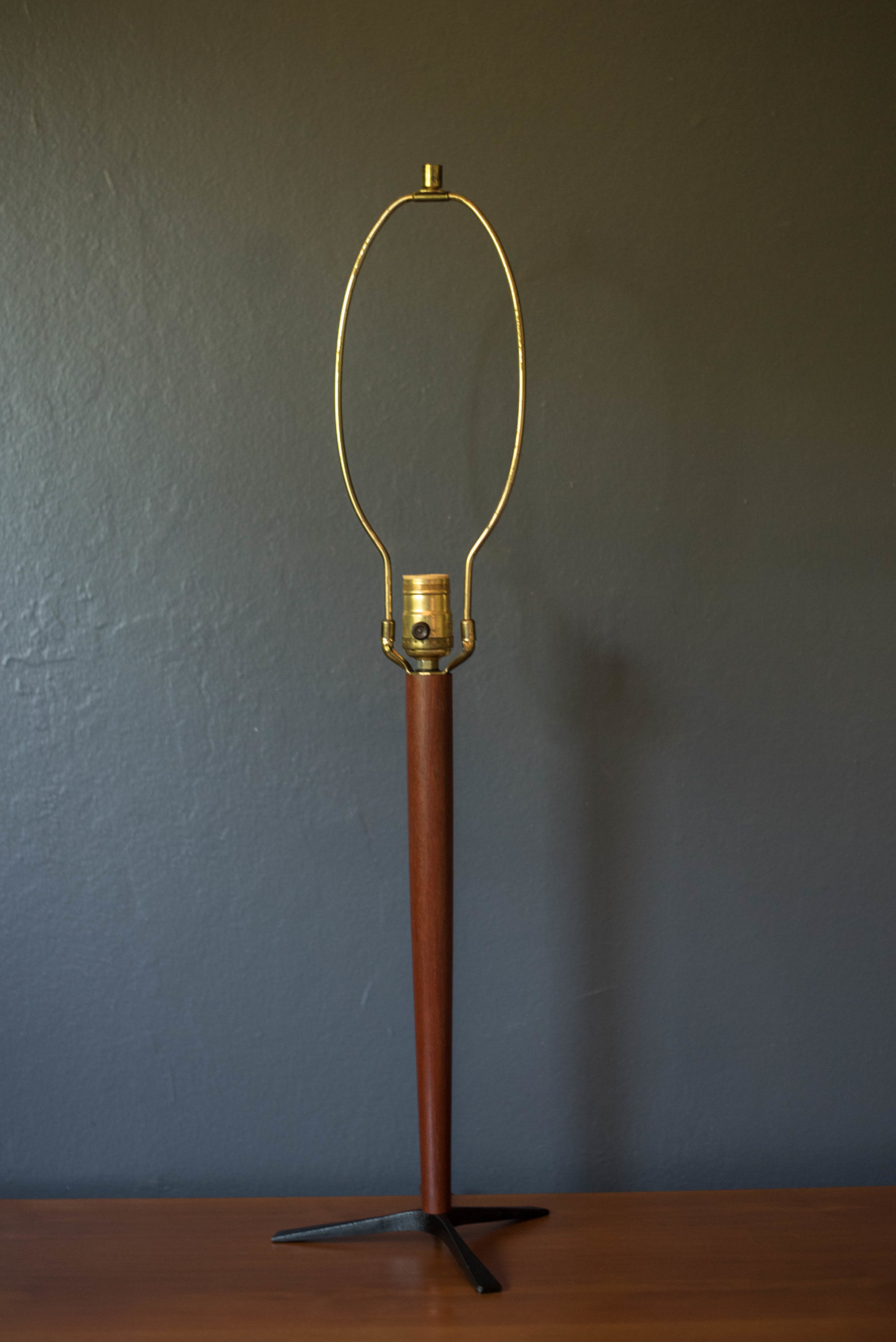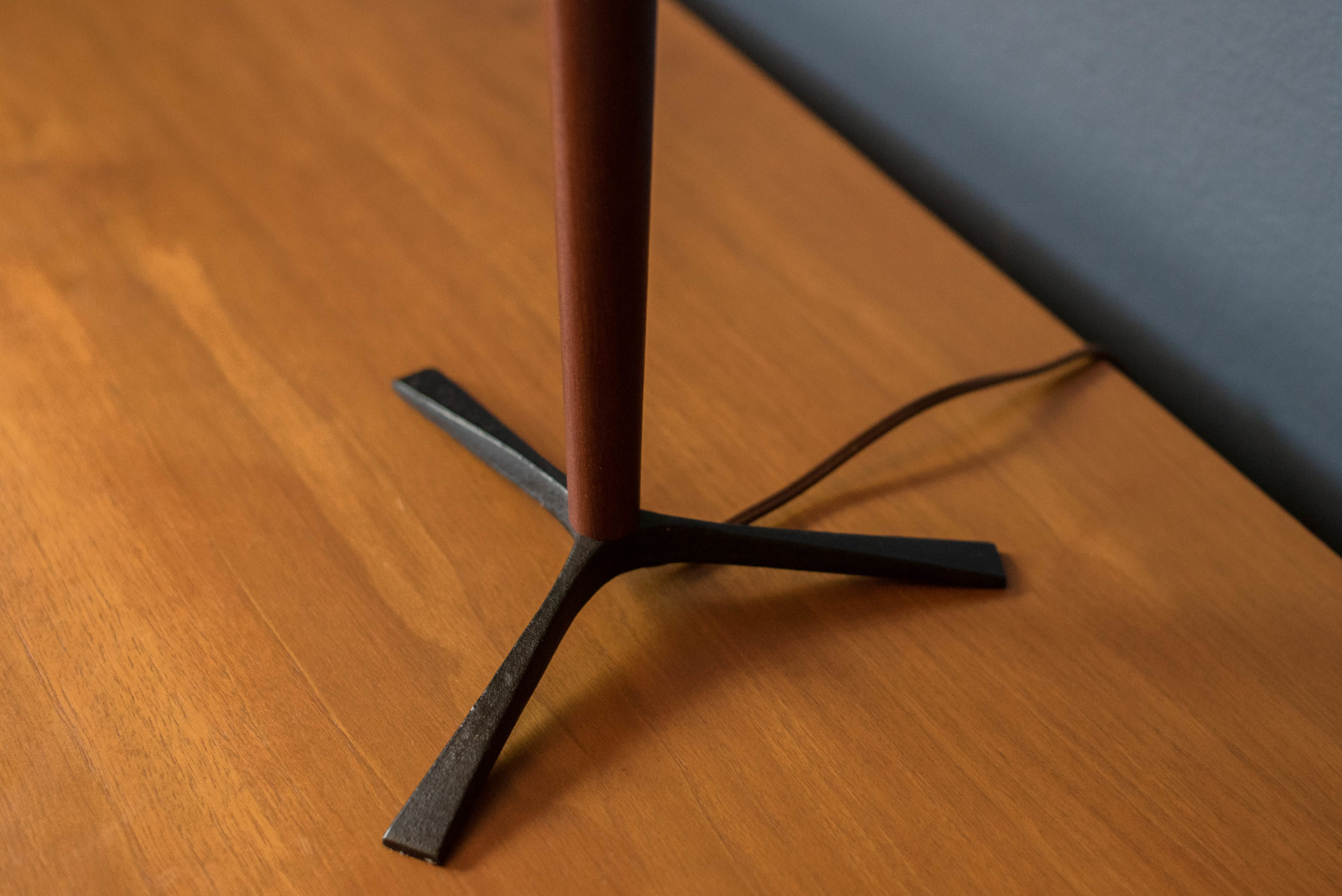 Mid Century Modern Sculptural Teak Table Lamp with Tripod Iron Base