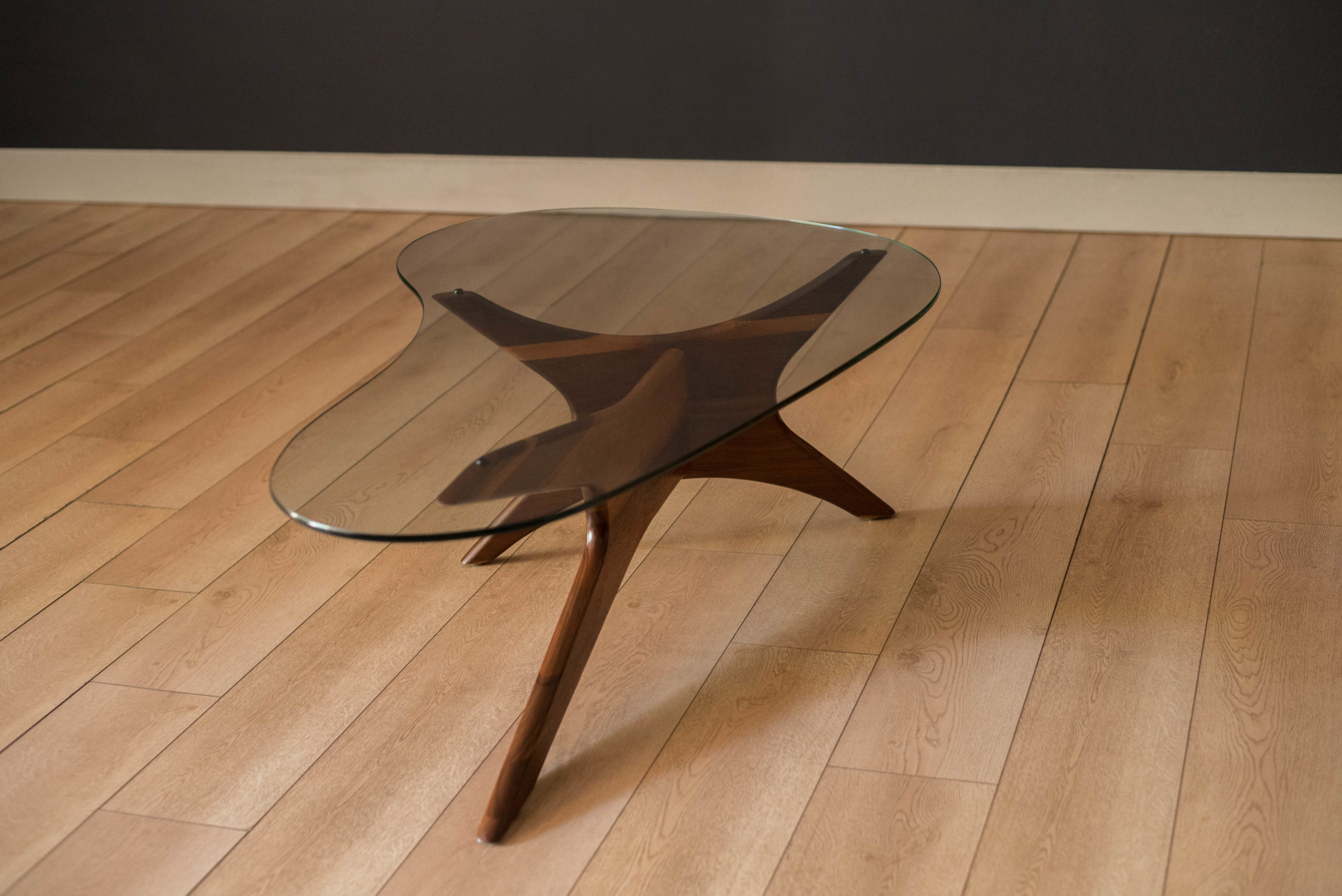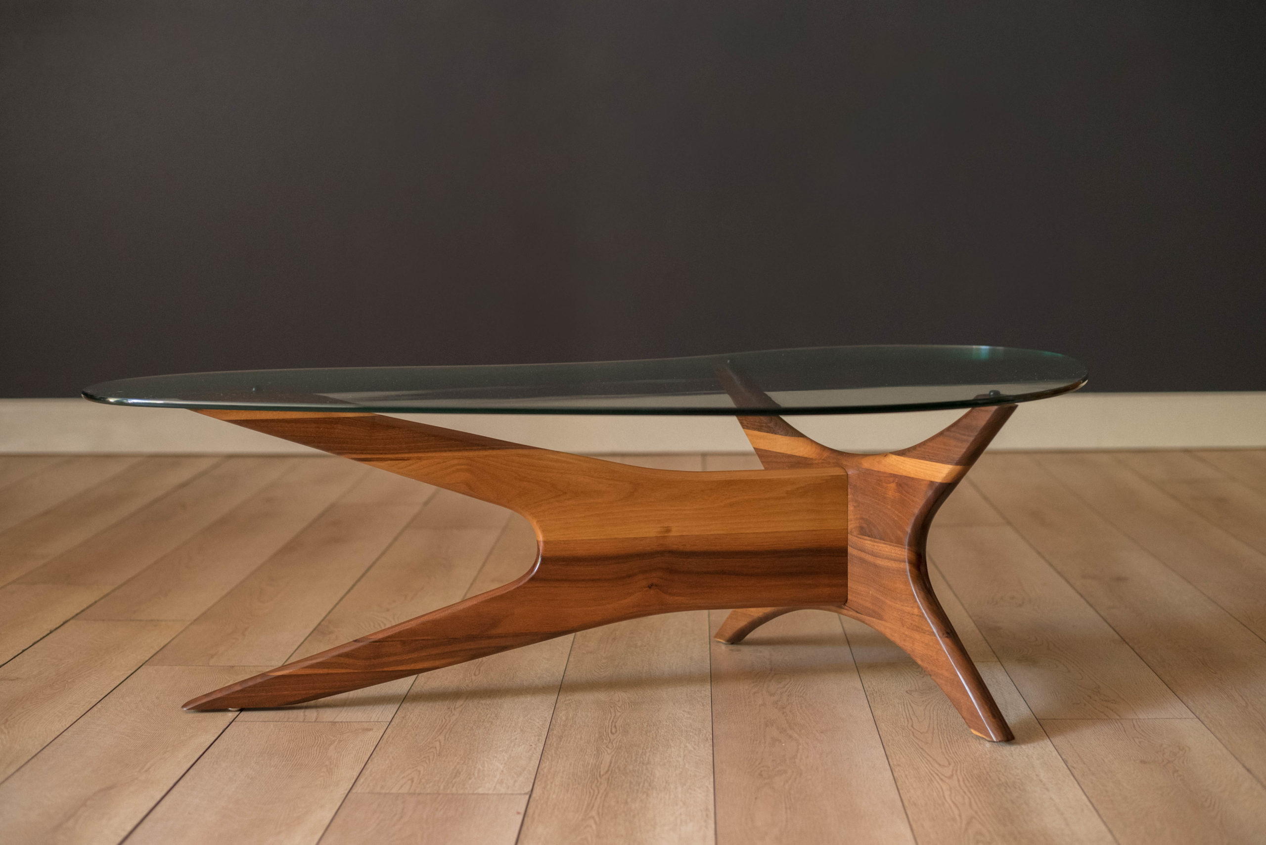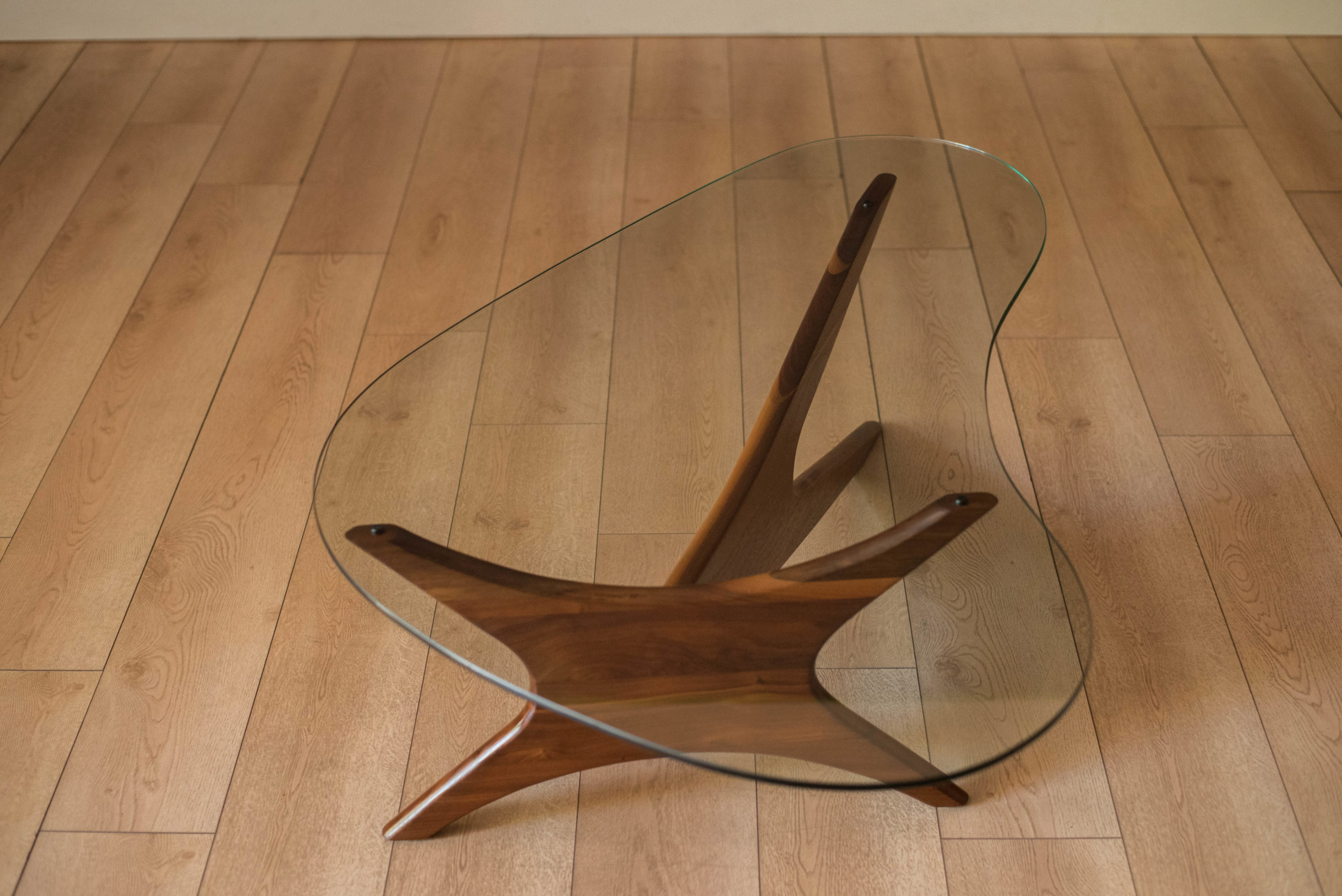 Mid Century Modern Solid Walnut and Glass Jacks Coffee Table by Adrian Pearsall