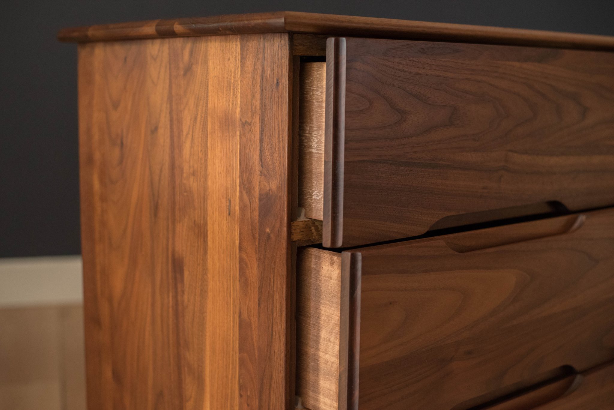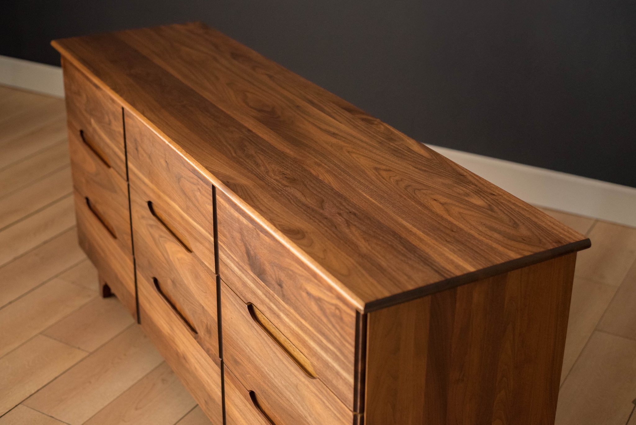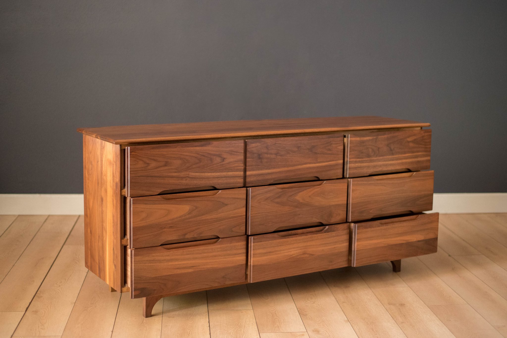 Mid-Century Modern Solid Walnut Triple Dresser