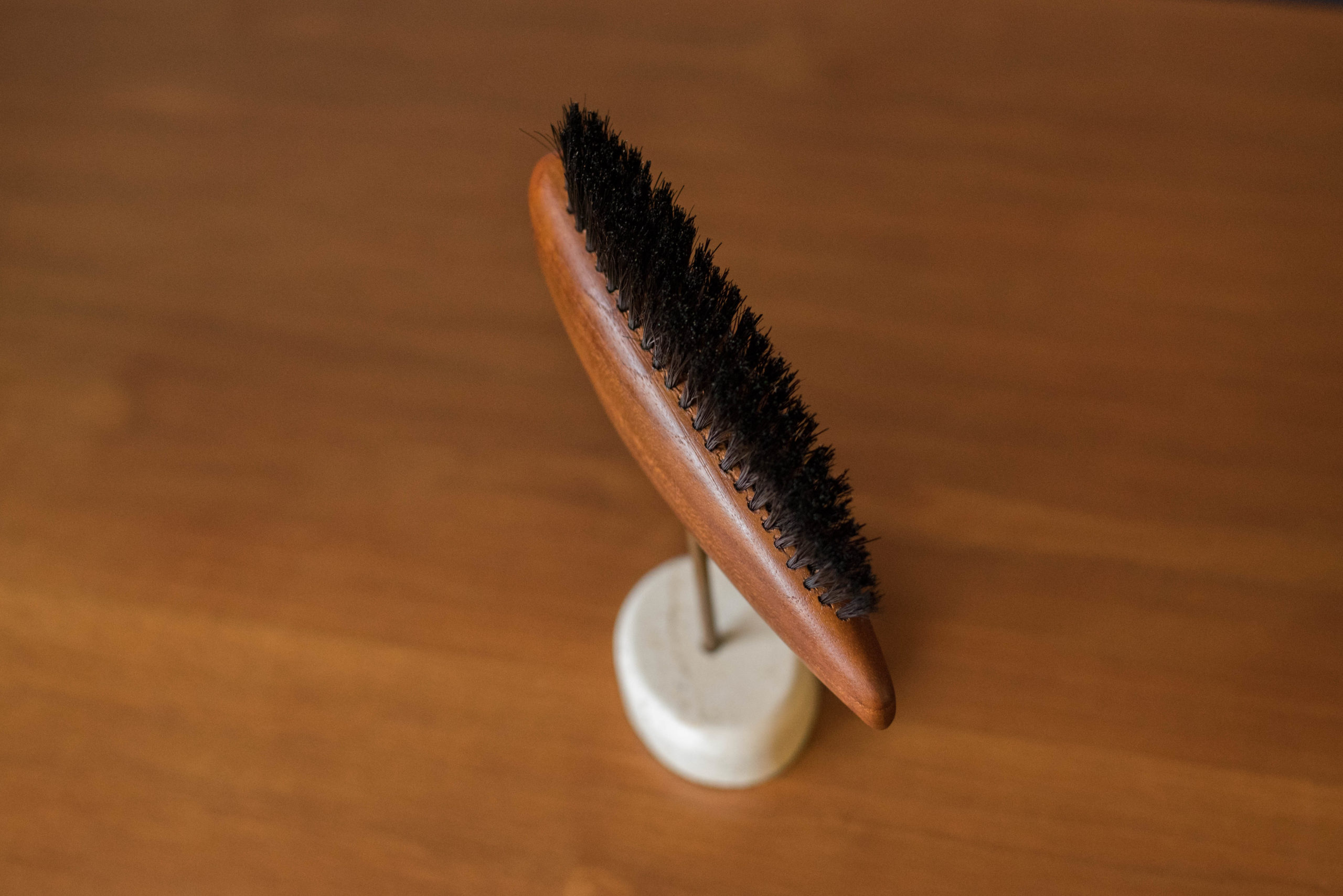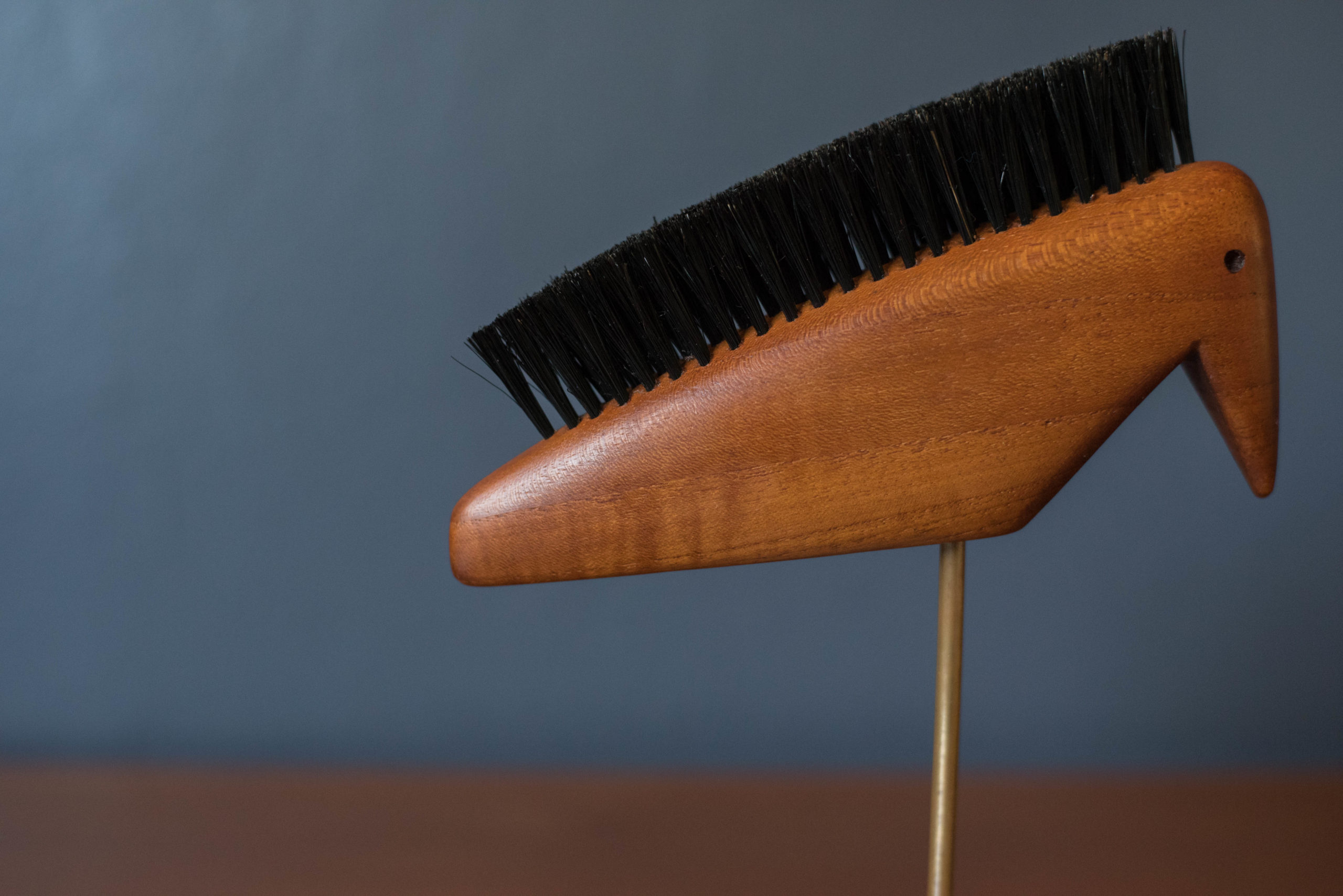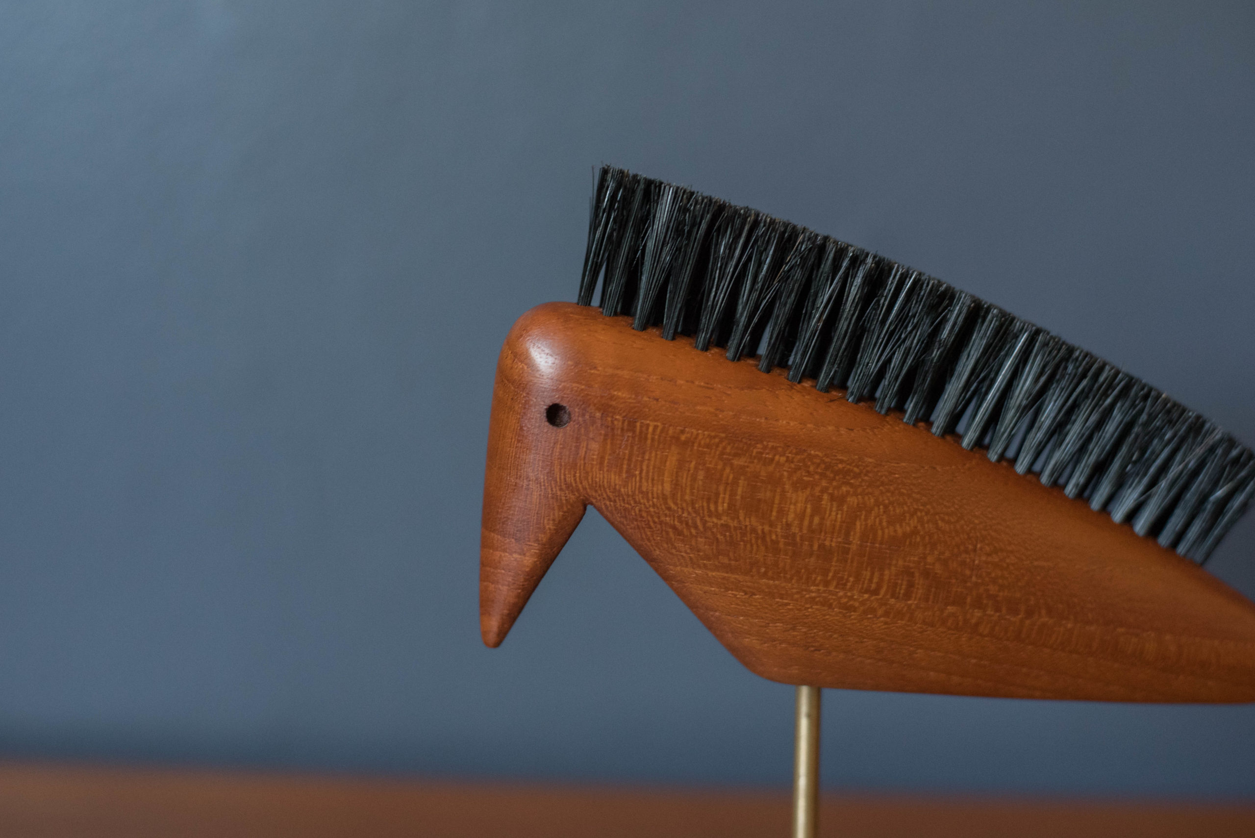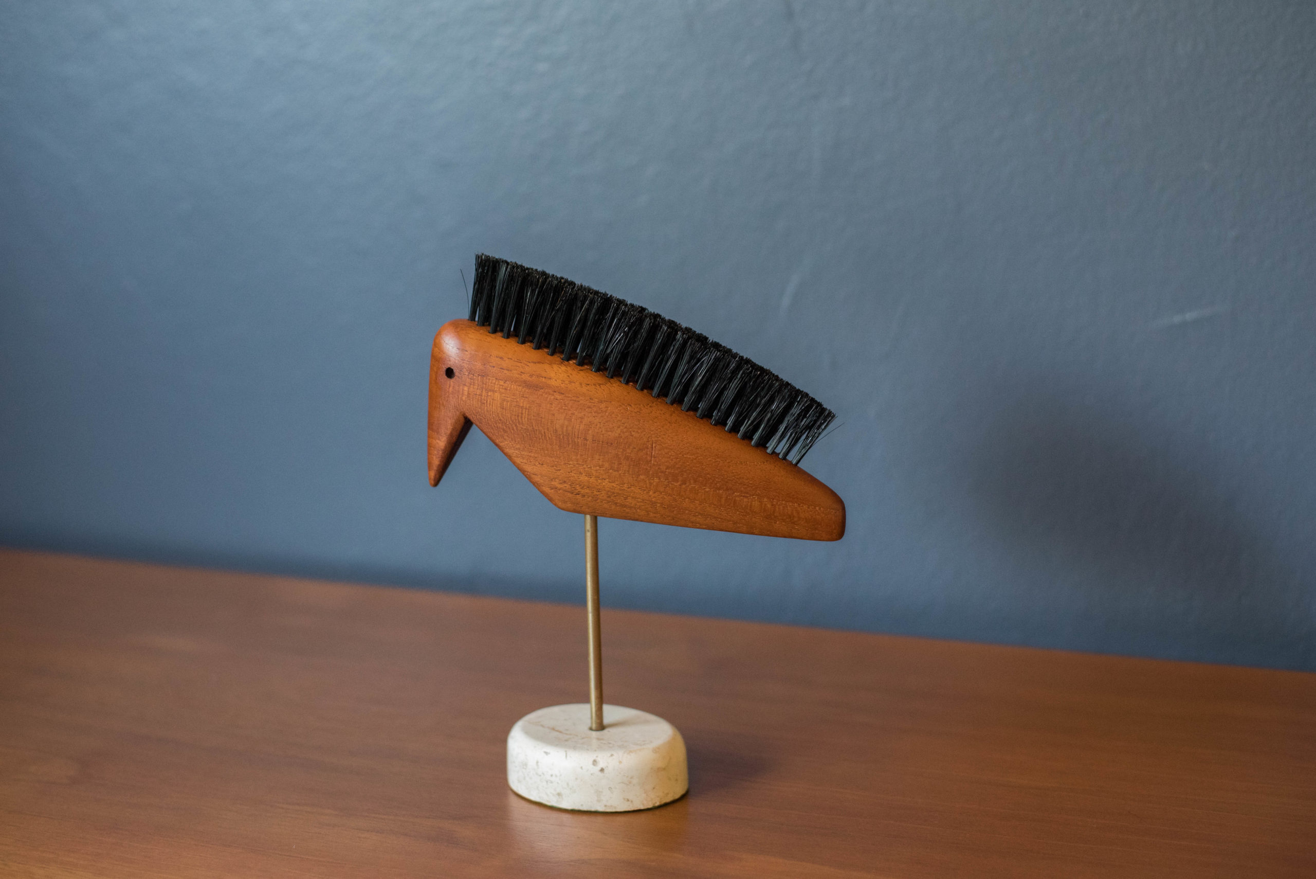 Mid Century Modern Teak Wood Animal Bird Sculpture Shoe Brush on Stone