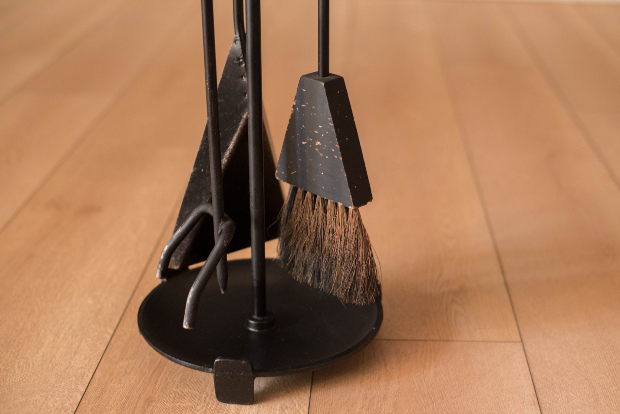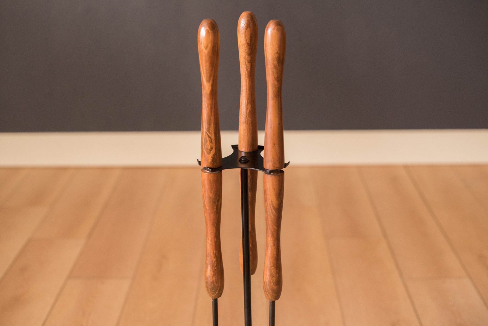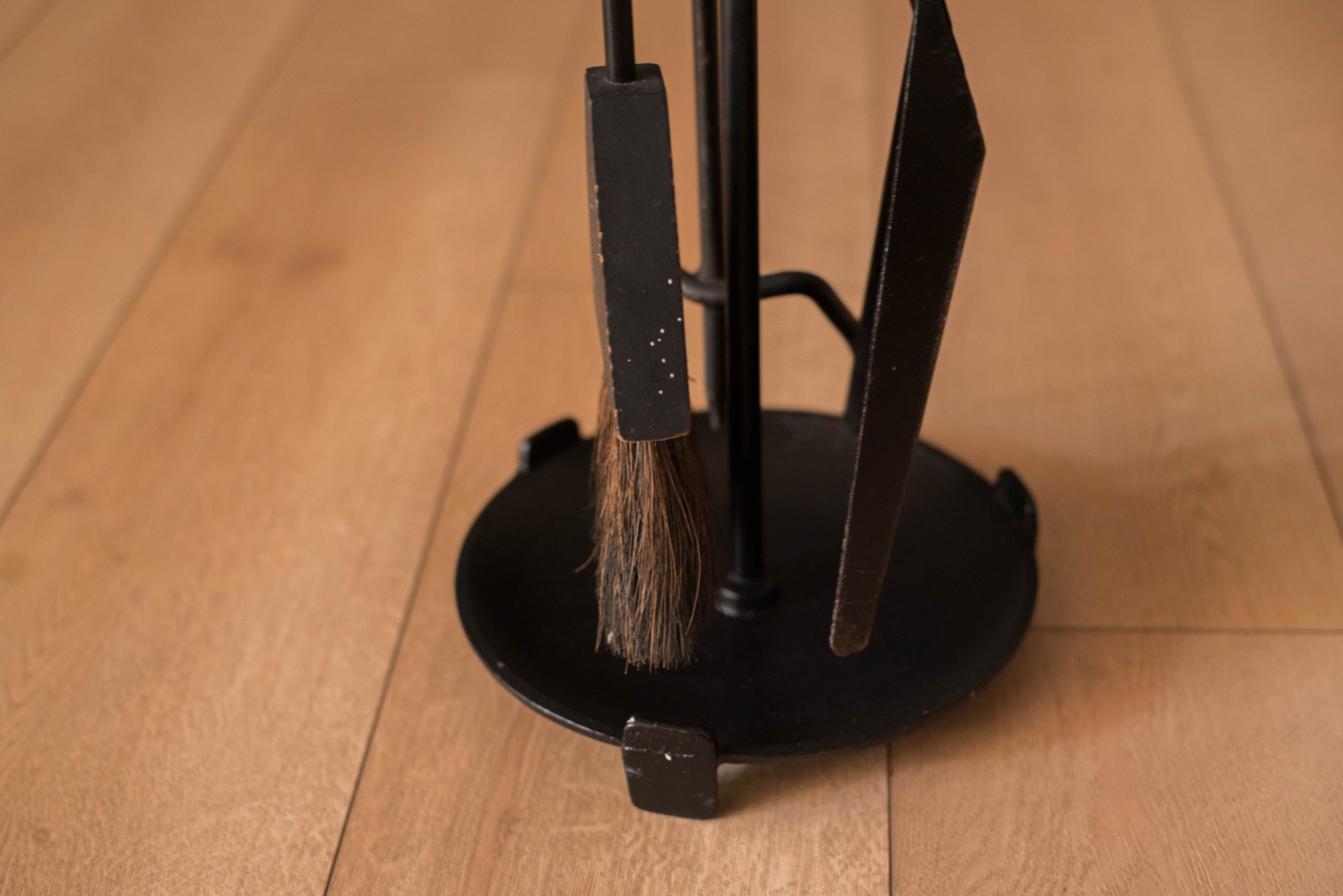 Mid-Century Modern Three-Piece Standing Fireplace Tool Set