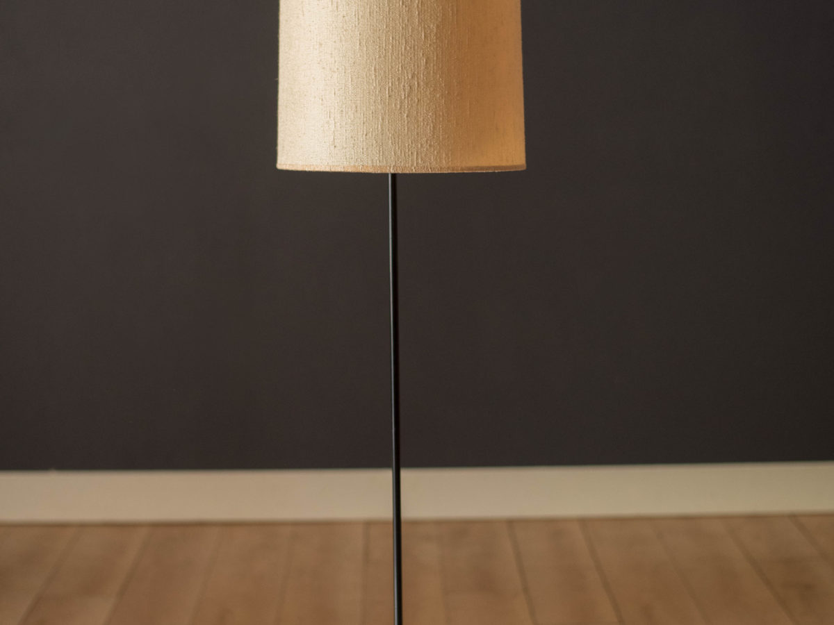 Classic vintage triple light floor lamp circa 1960’s. This unique piece features three tapered parchment fiber shades that emits a soft warm glow. Supporting base is made out of metal construction finished in black enamel.