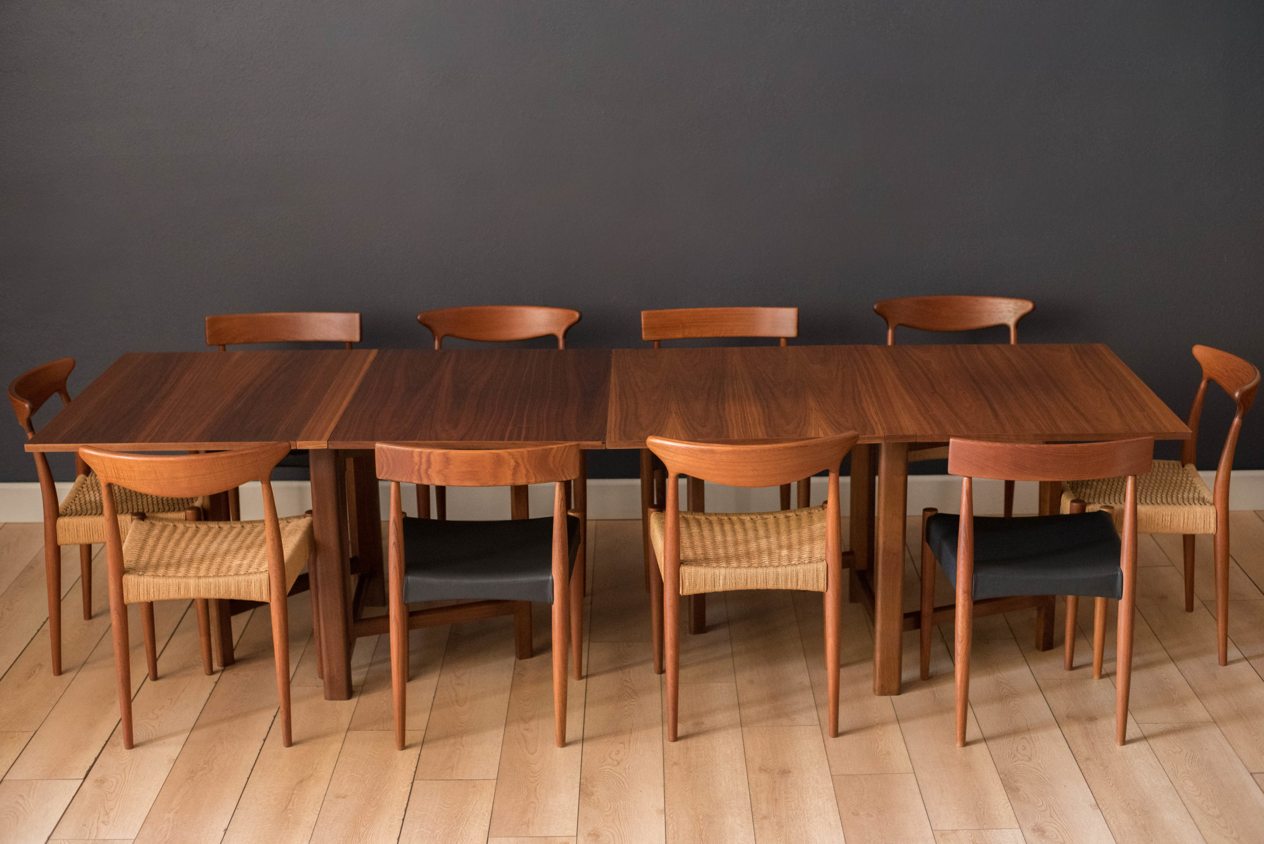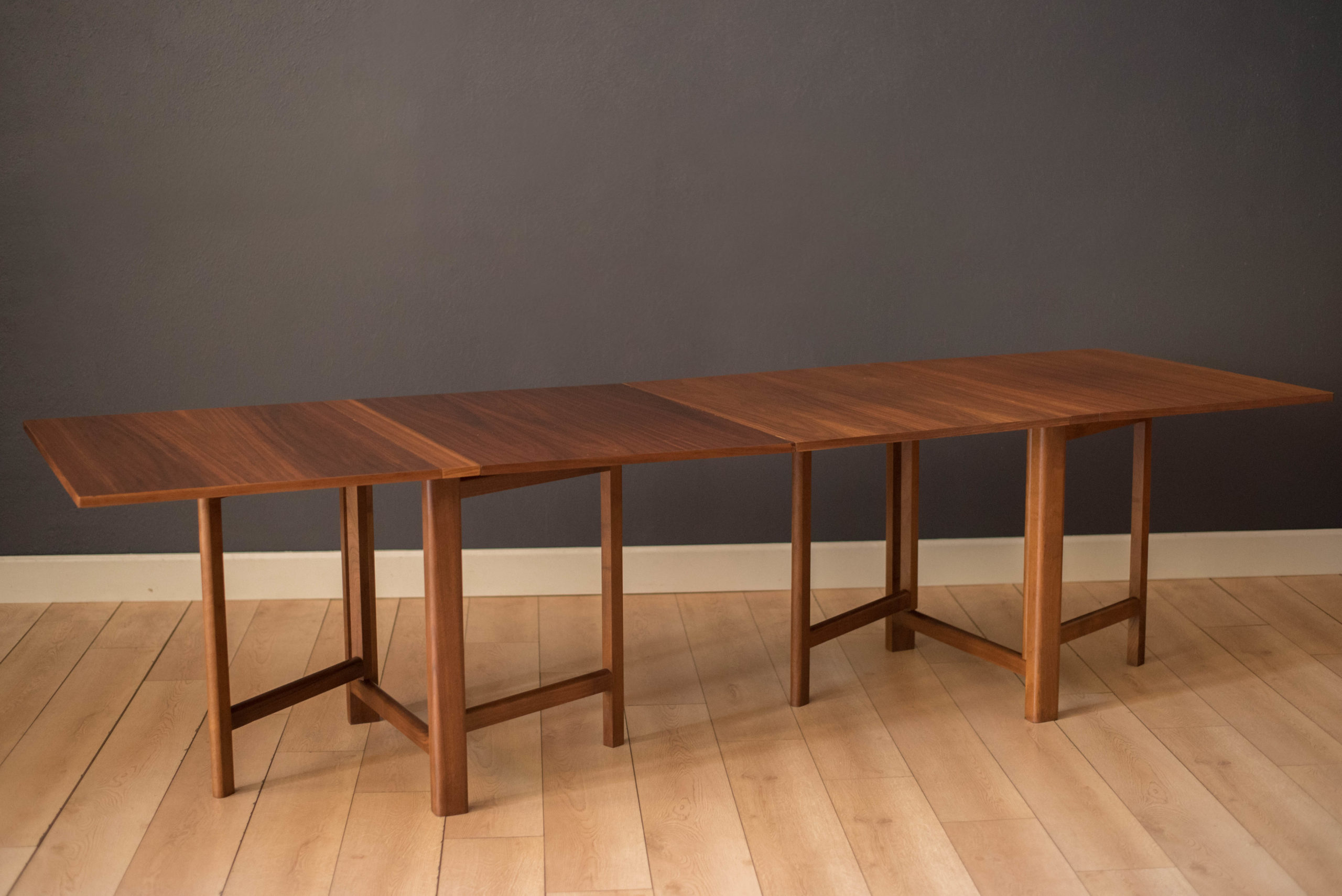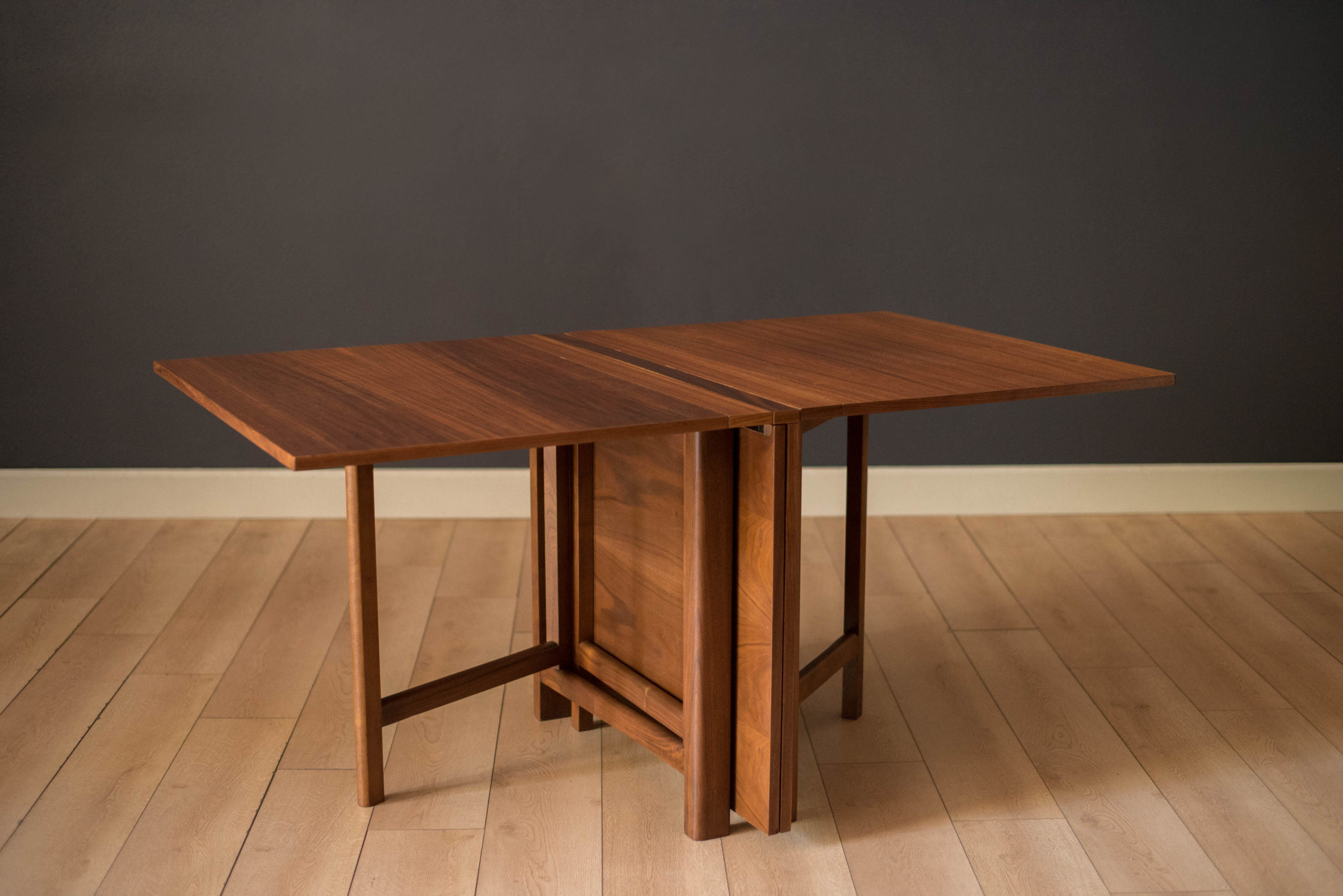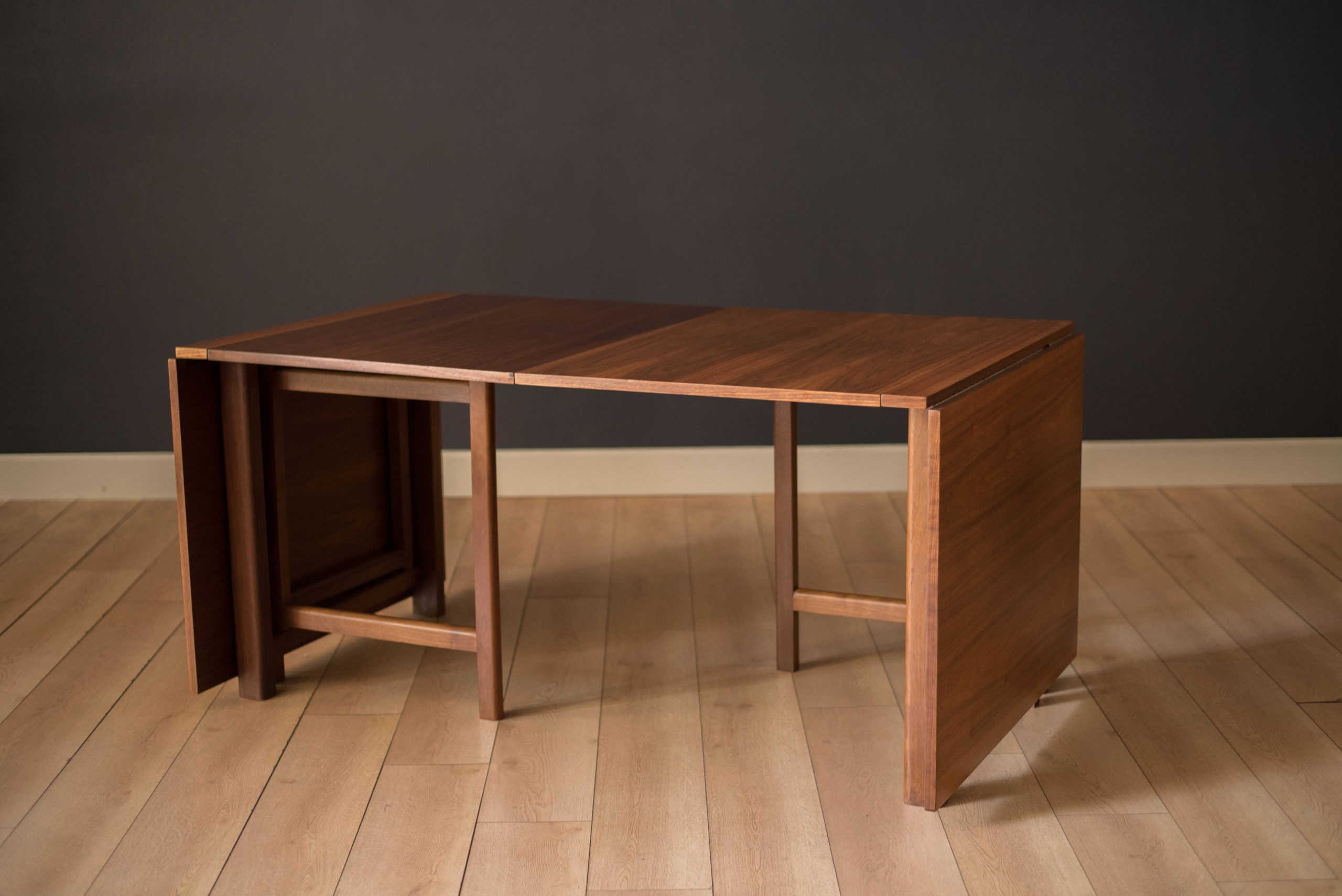 Mid-Century Modern Walnut Extending Drop Leaf Dining Table