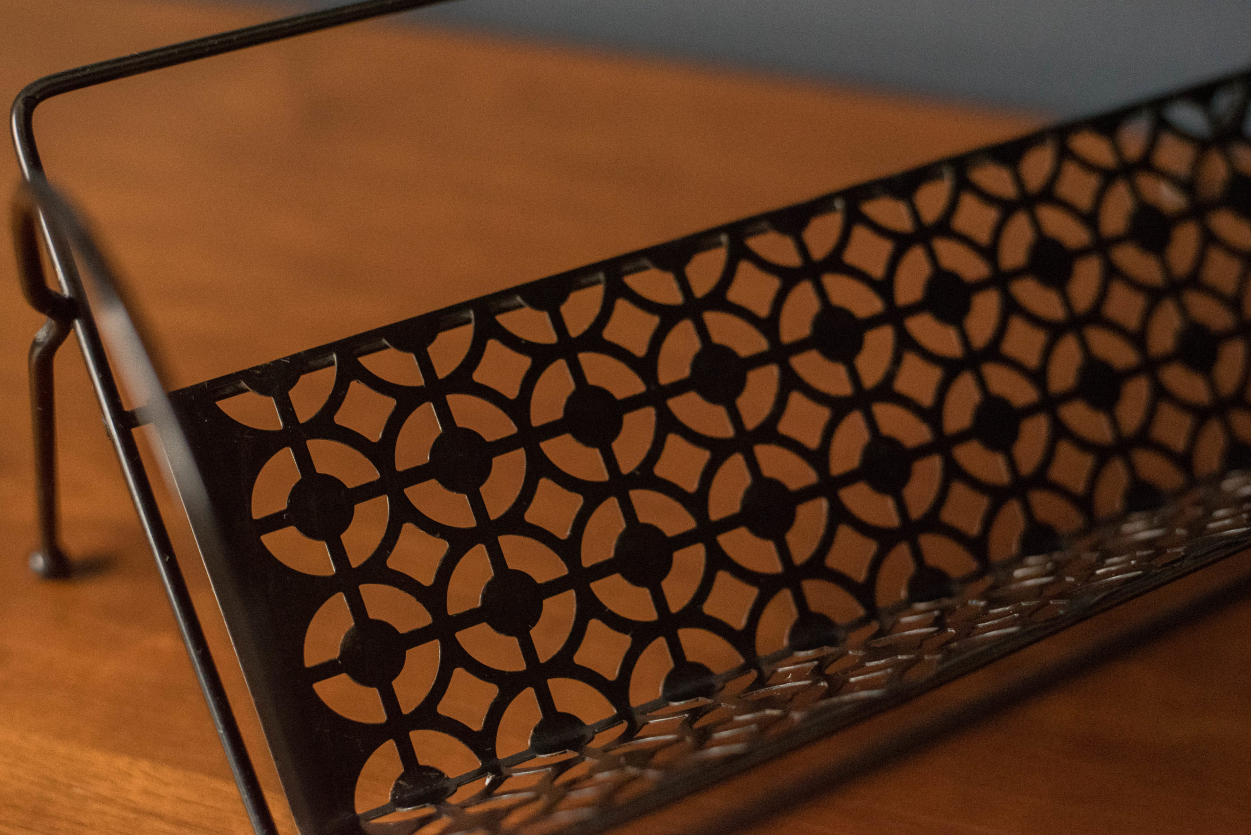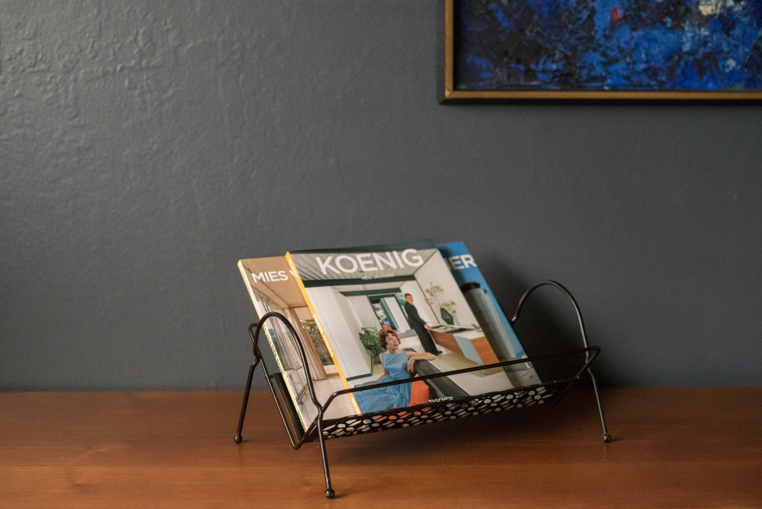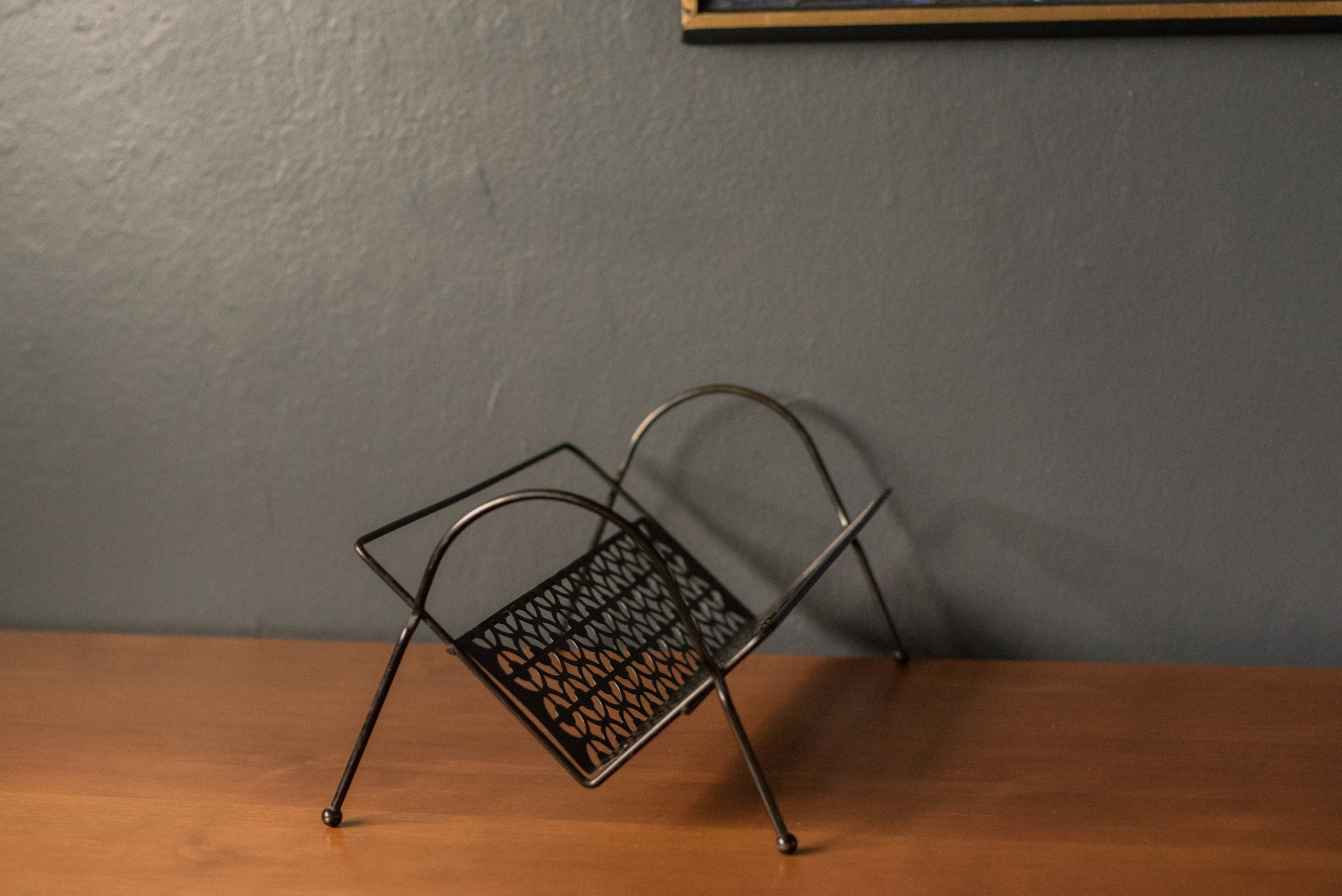 Mid Century Modernist Black Metal Magazine Rack LP Record Holder