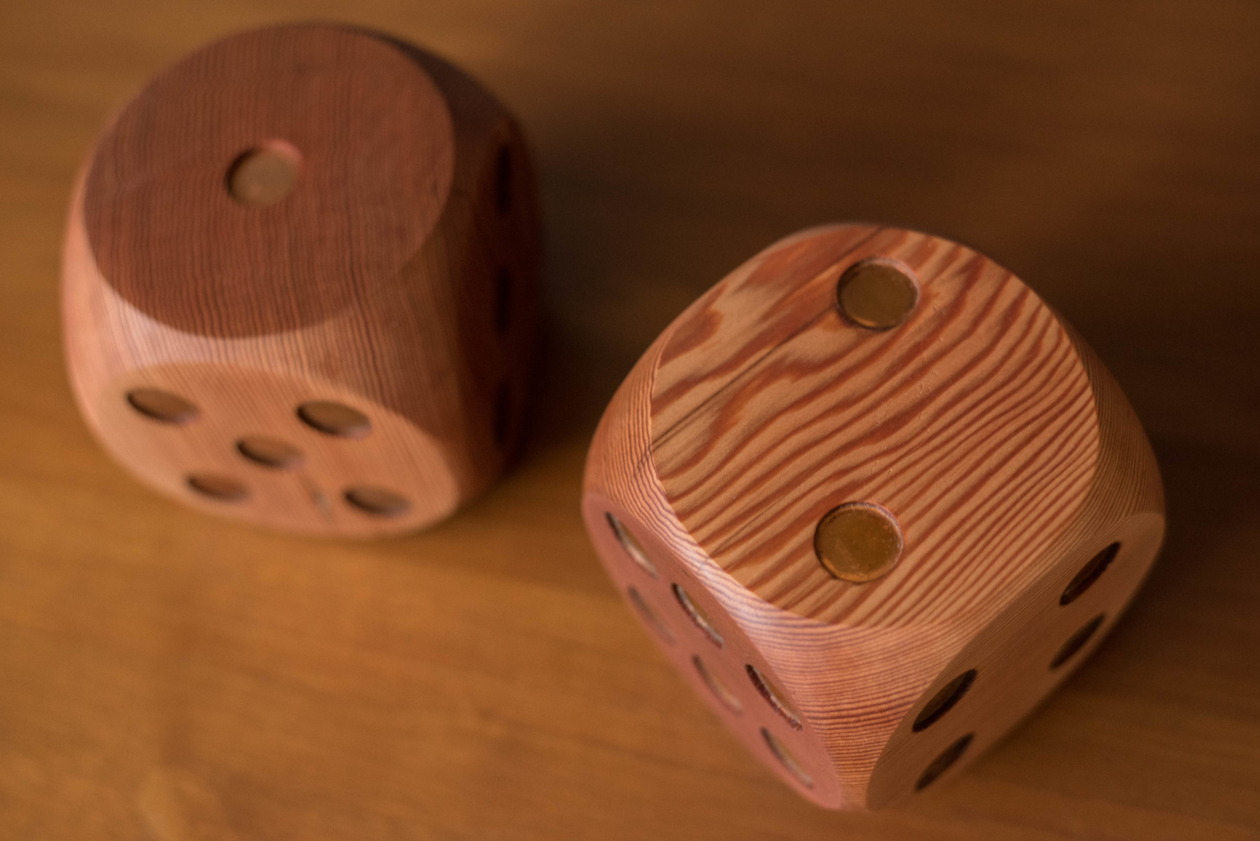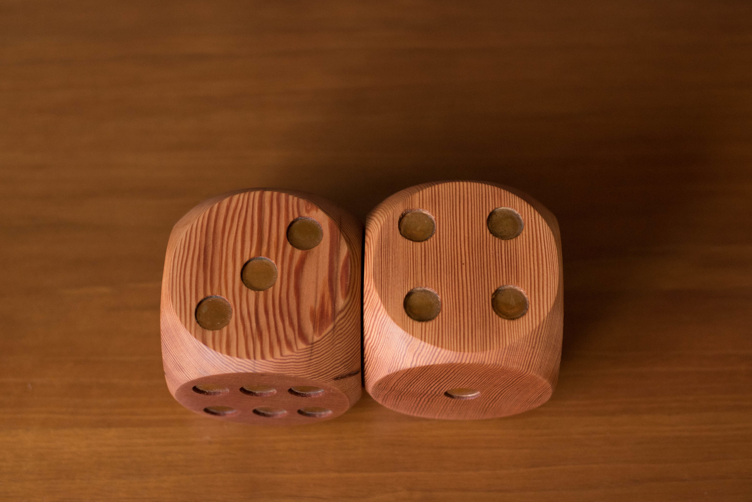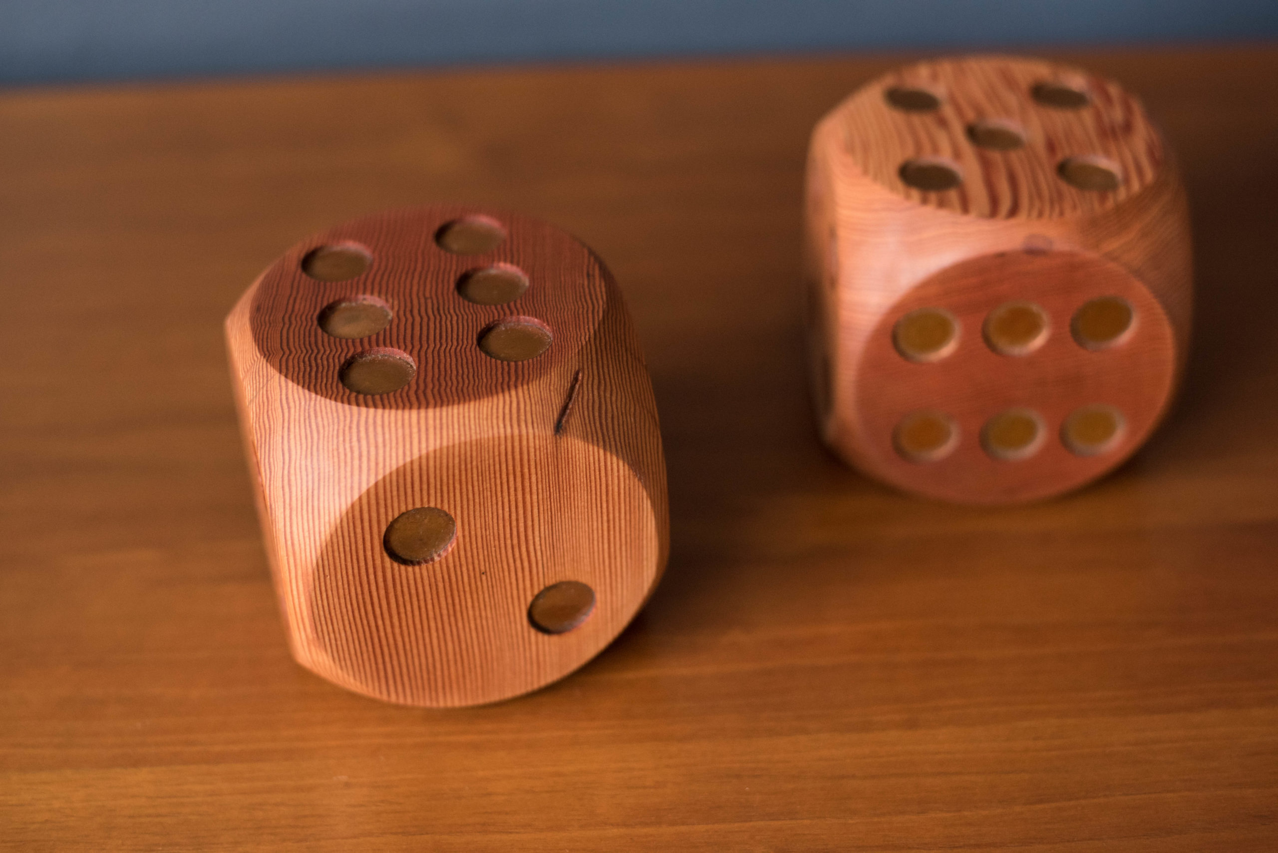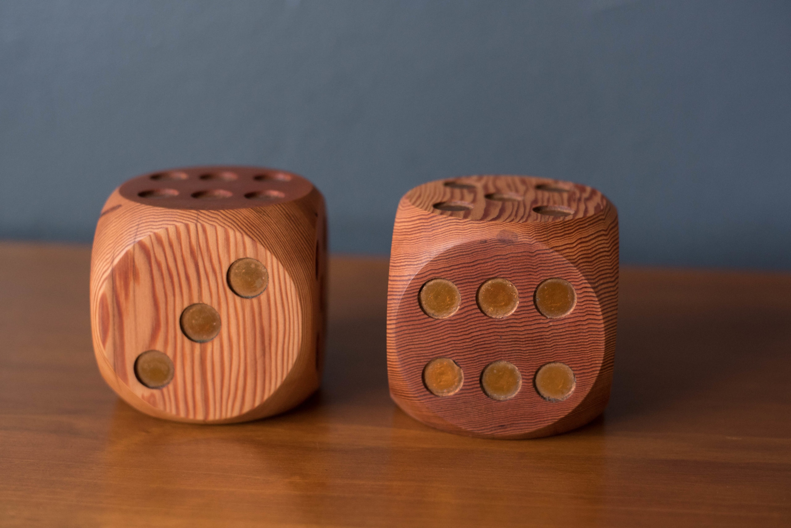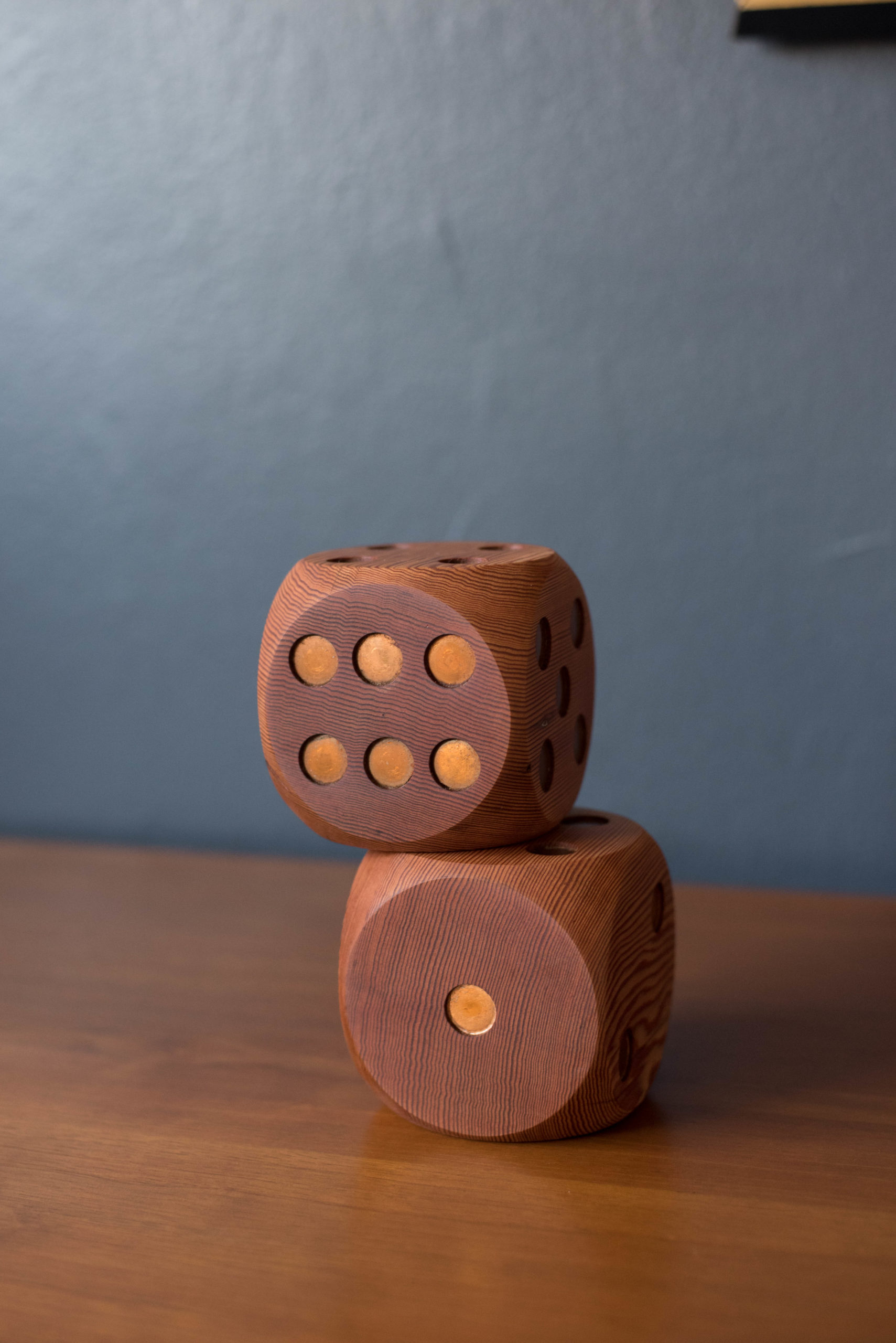 Mid Century Pair of Oversized Copper and Cedar Wood Dice Bookends