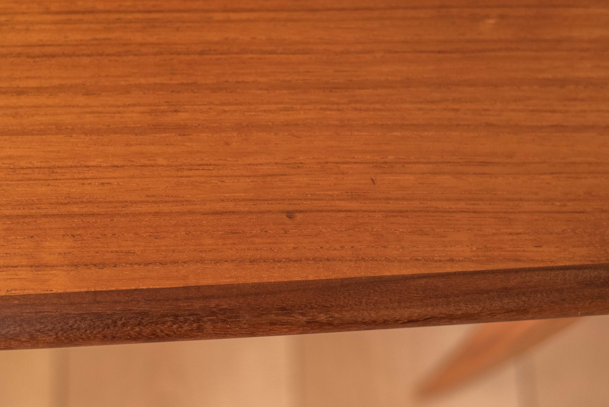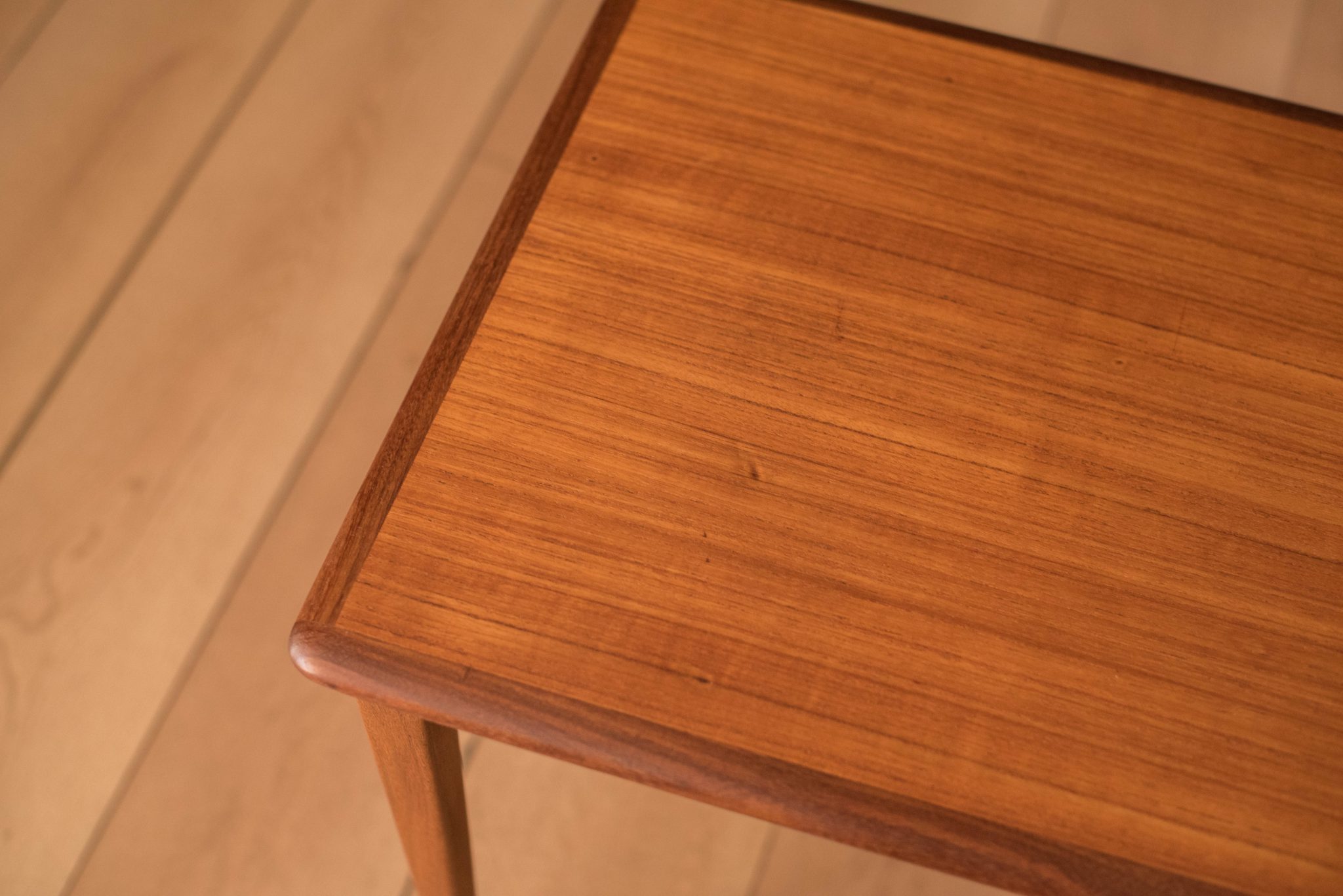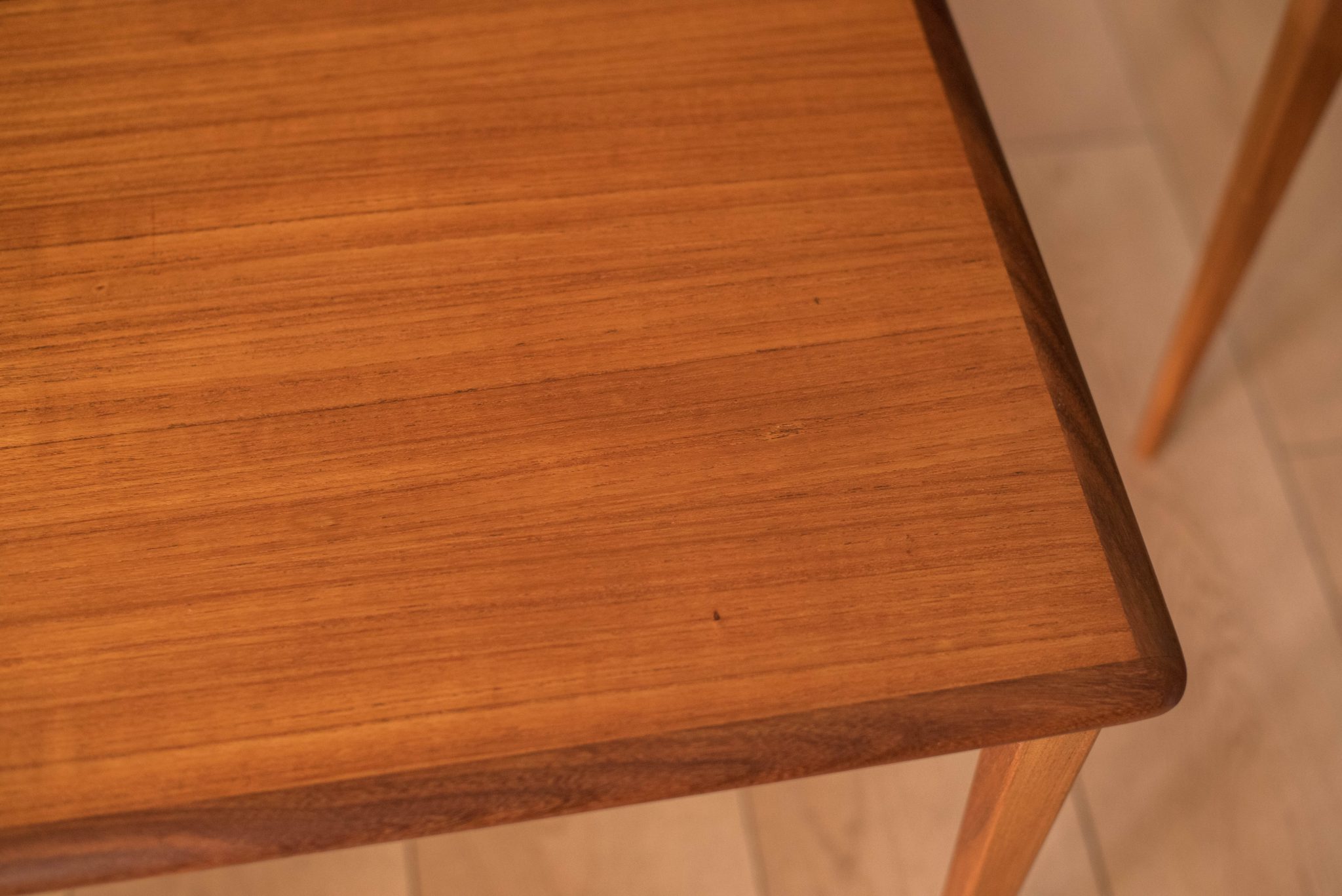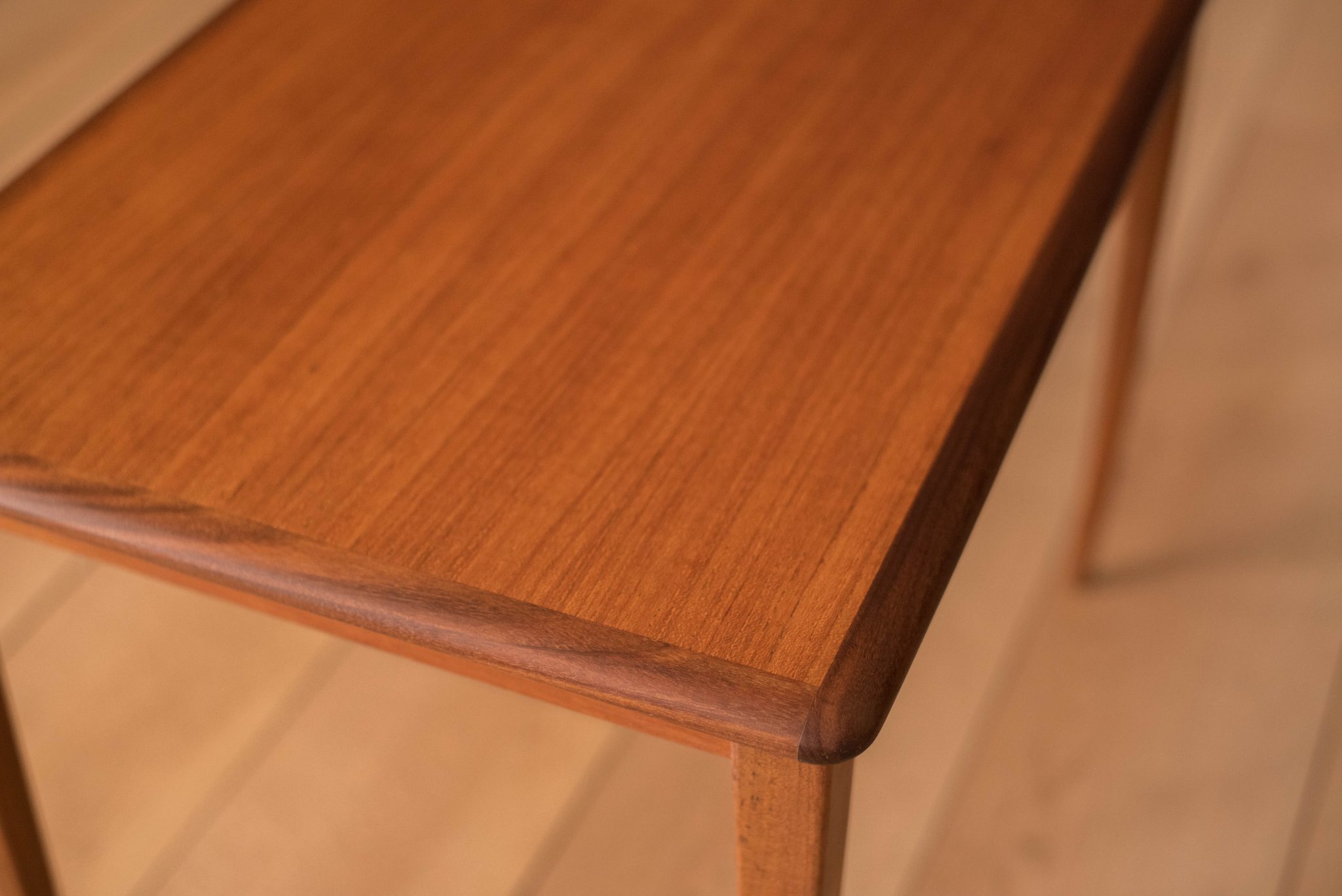 Vintage pair of side tables made in Sweden, circa 1960s. This set features tapered angled legs and teak table tops with contrasting solid afromasia edges.