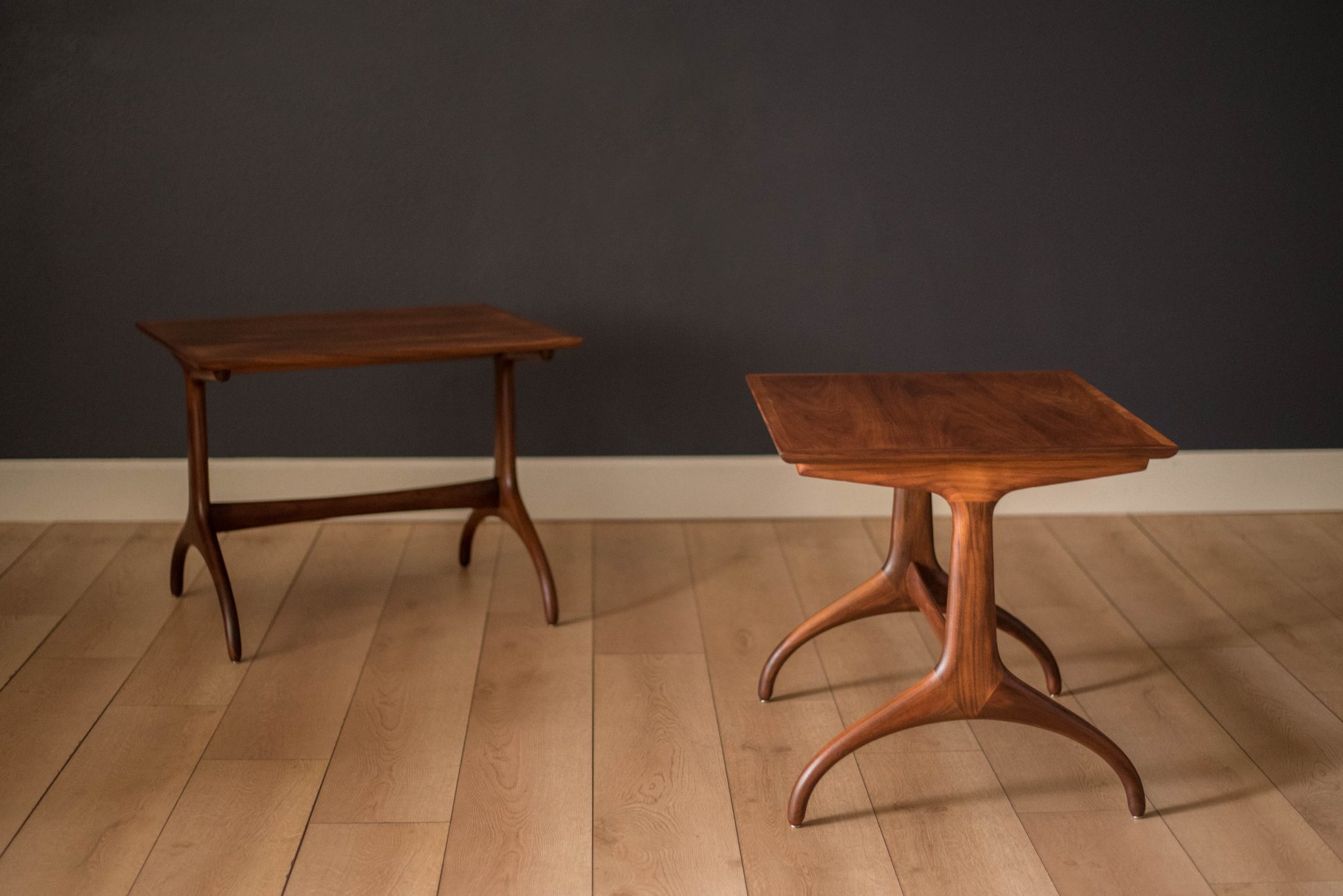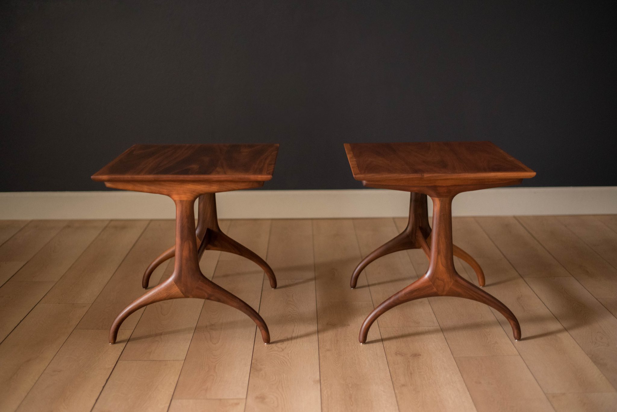 Mid Century Pair of Walnut Heritage Wishbone End Tables