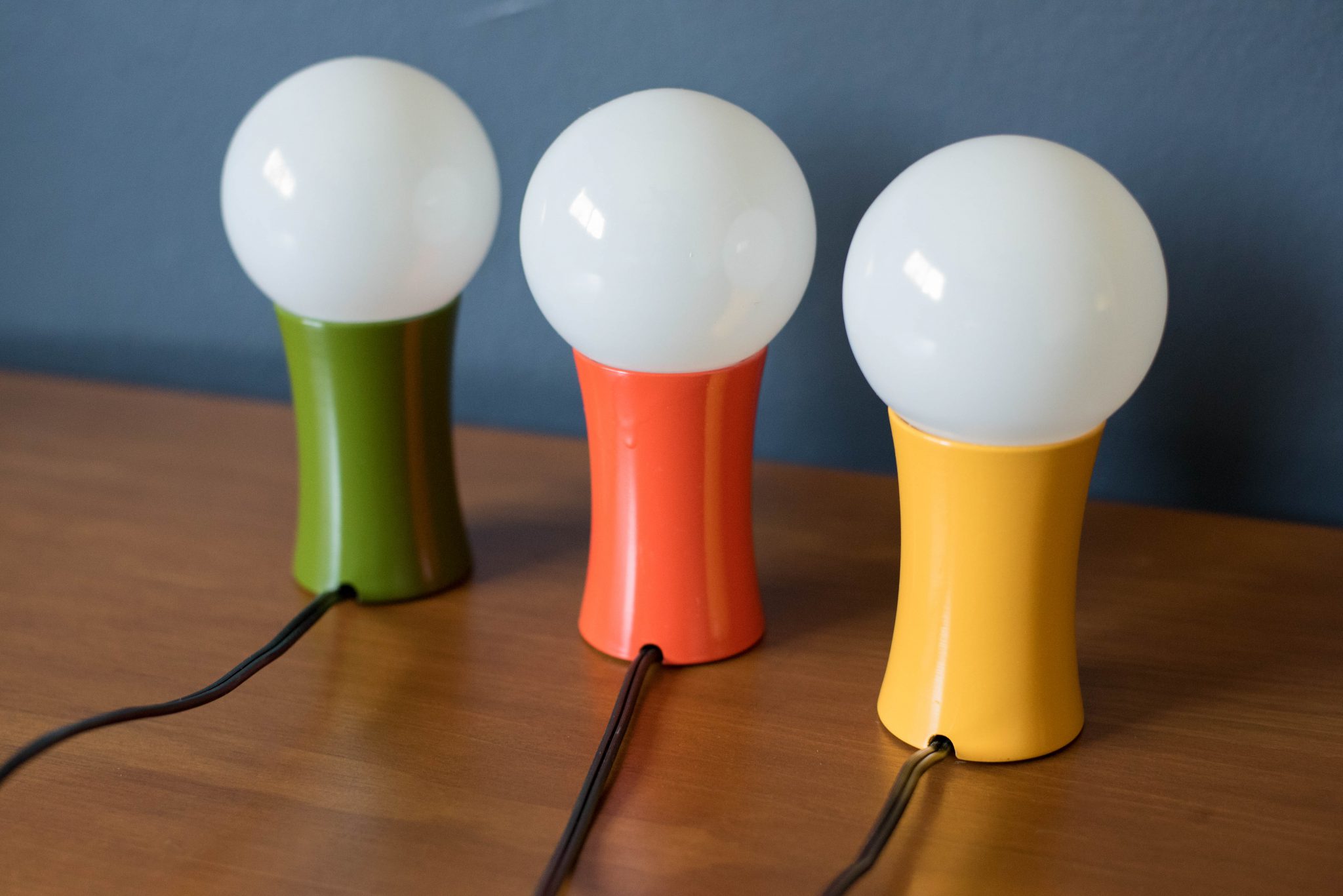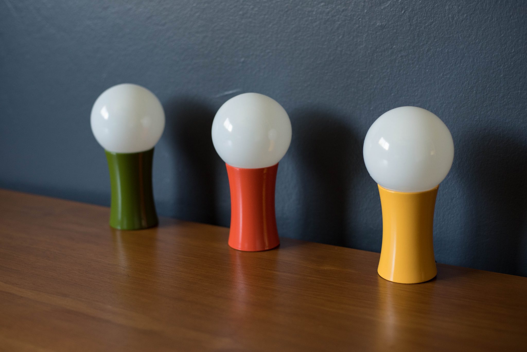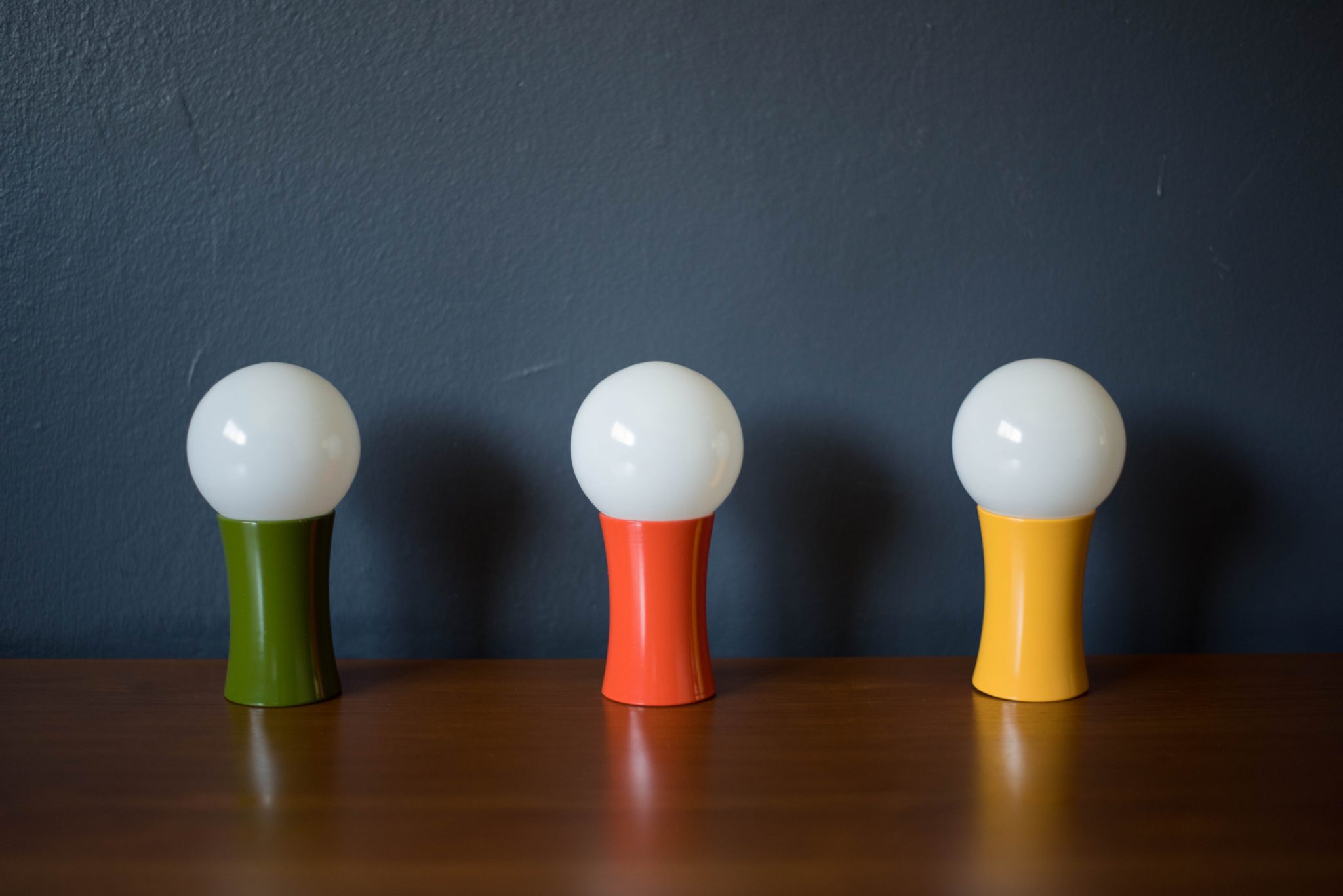 Vintage pop art accent lamps made in Japan and imported by Takahashi Trading Company in San Francisco. Includes the original bulb and package. Three different shades available in mod orange, green, and yellow. Price is for each.