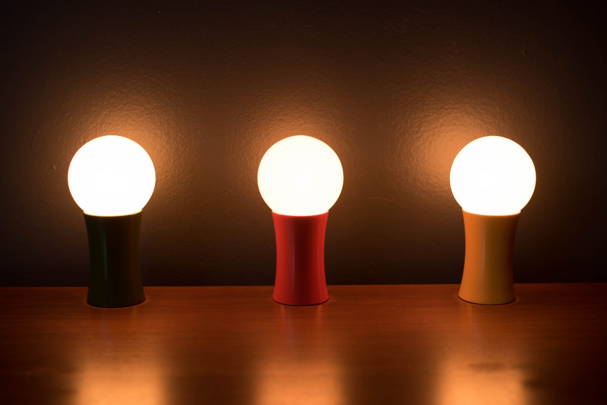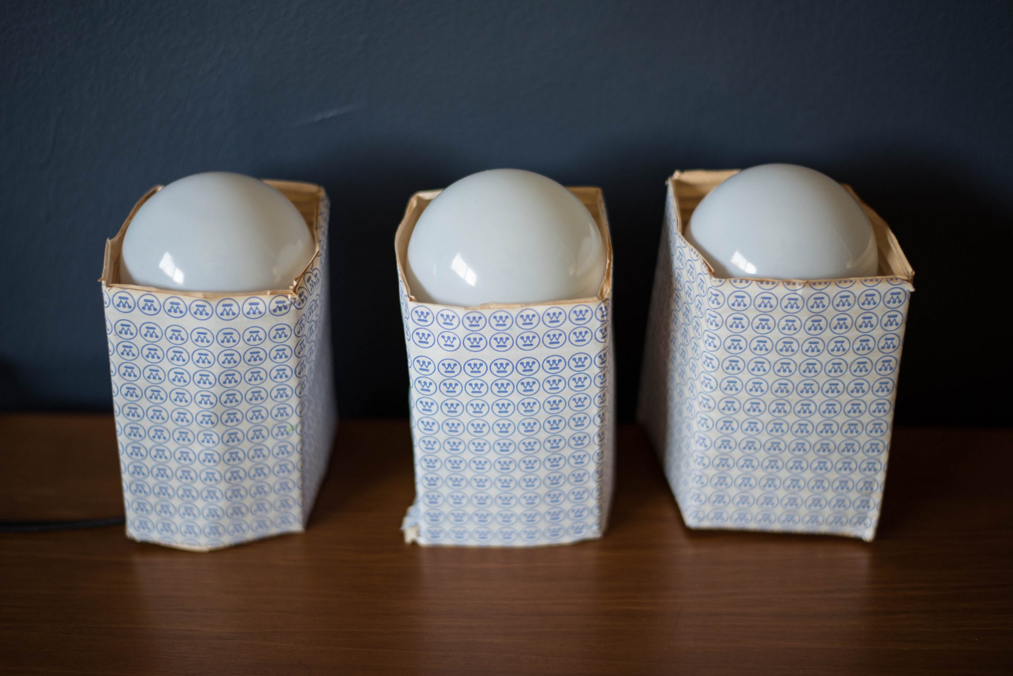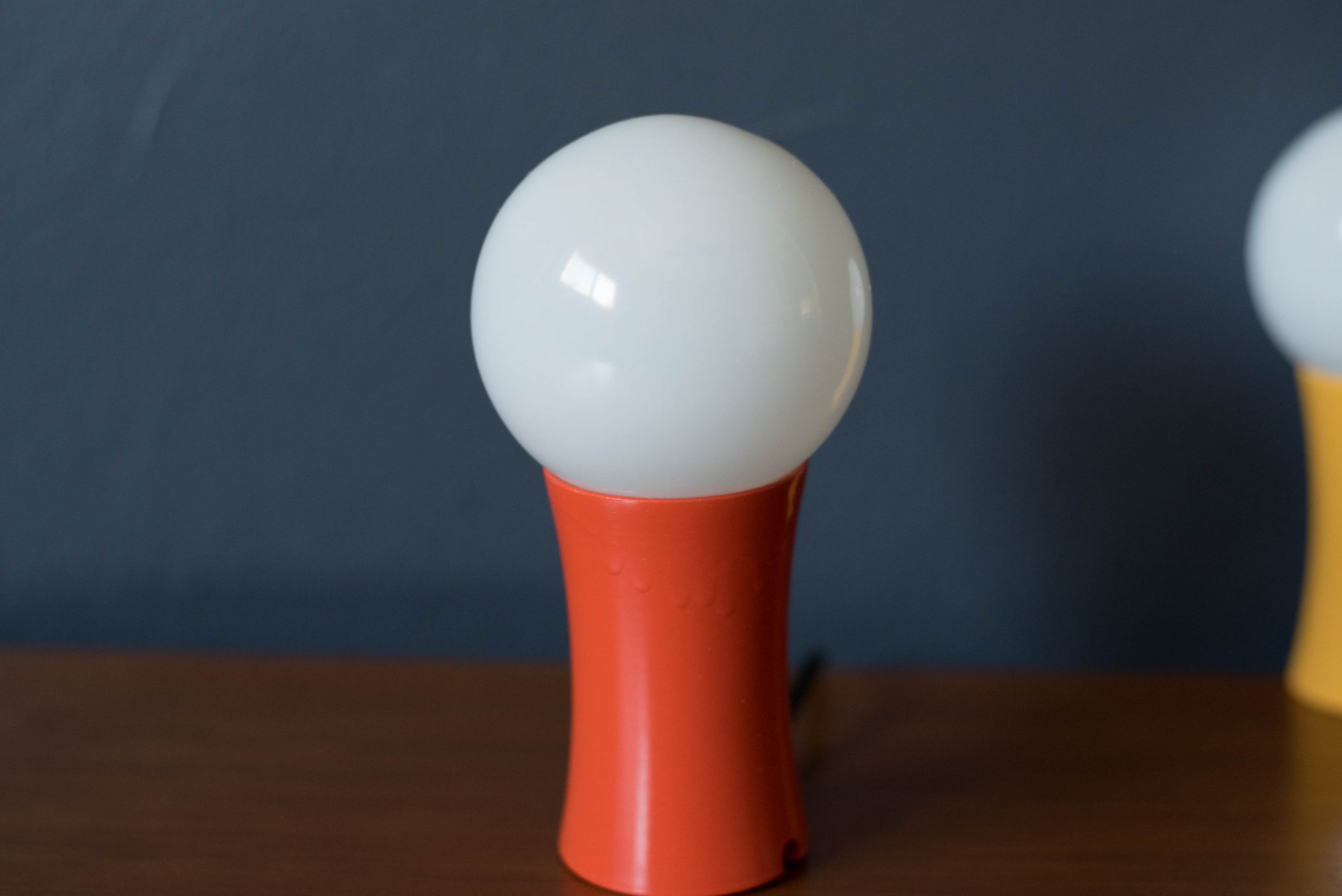 Vintage pop art accent lamps made in Japan and imported by Takahashi Trading Company in San Francisco. Includes the original bulb and package. Three different shades available in mod orange, green, and yellow. Price is for each.