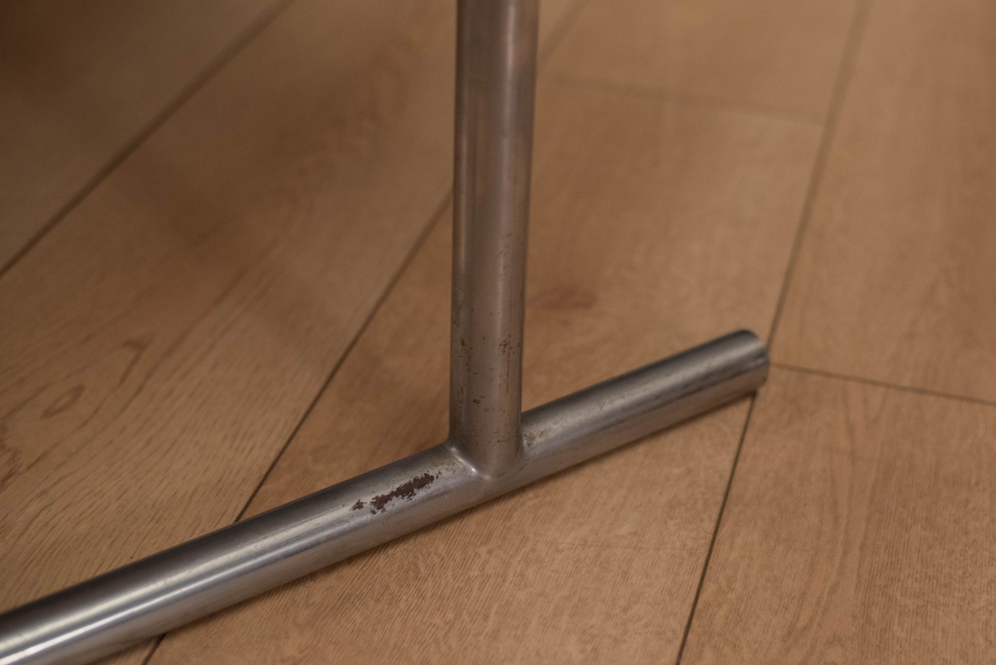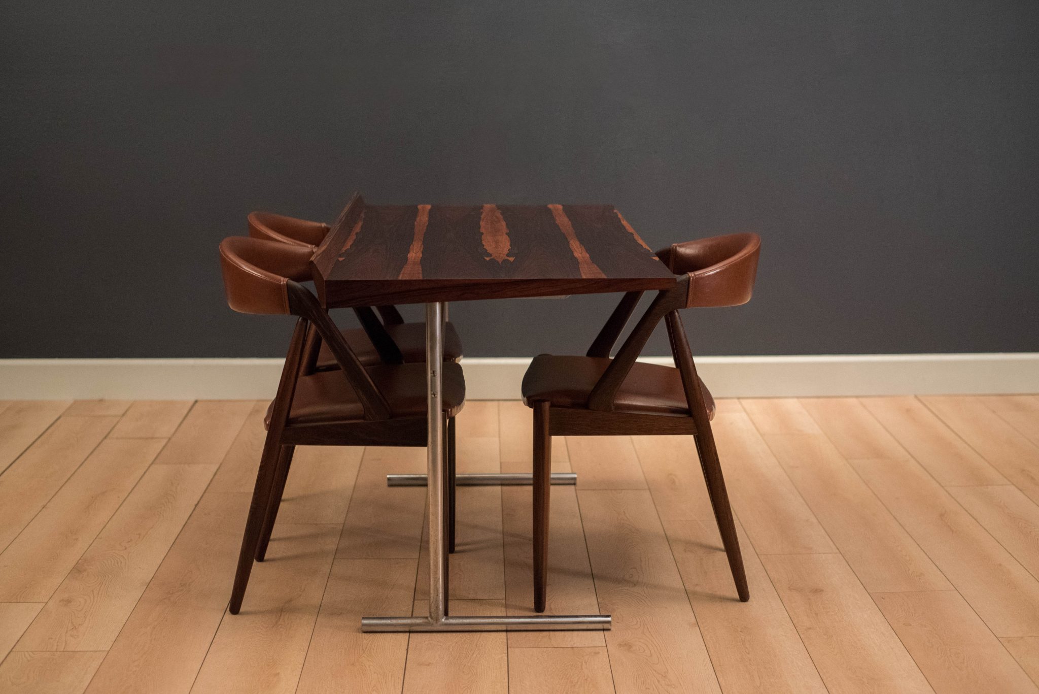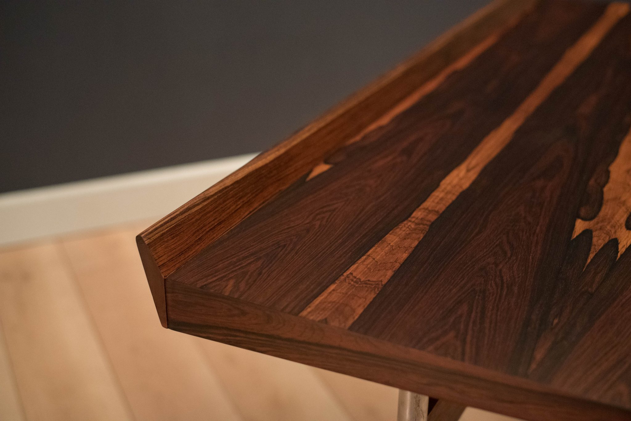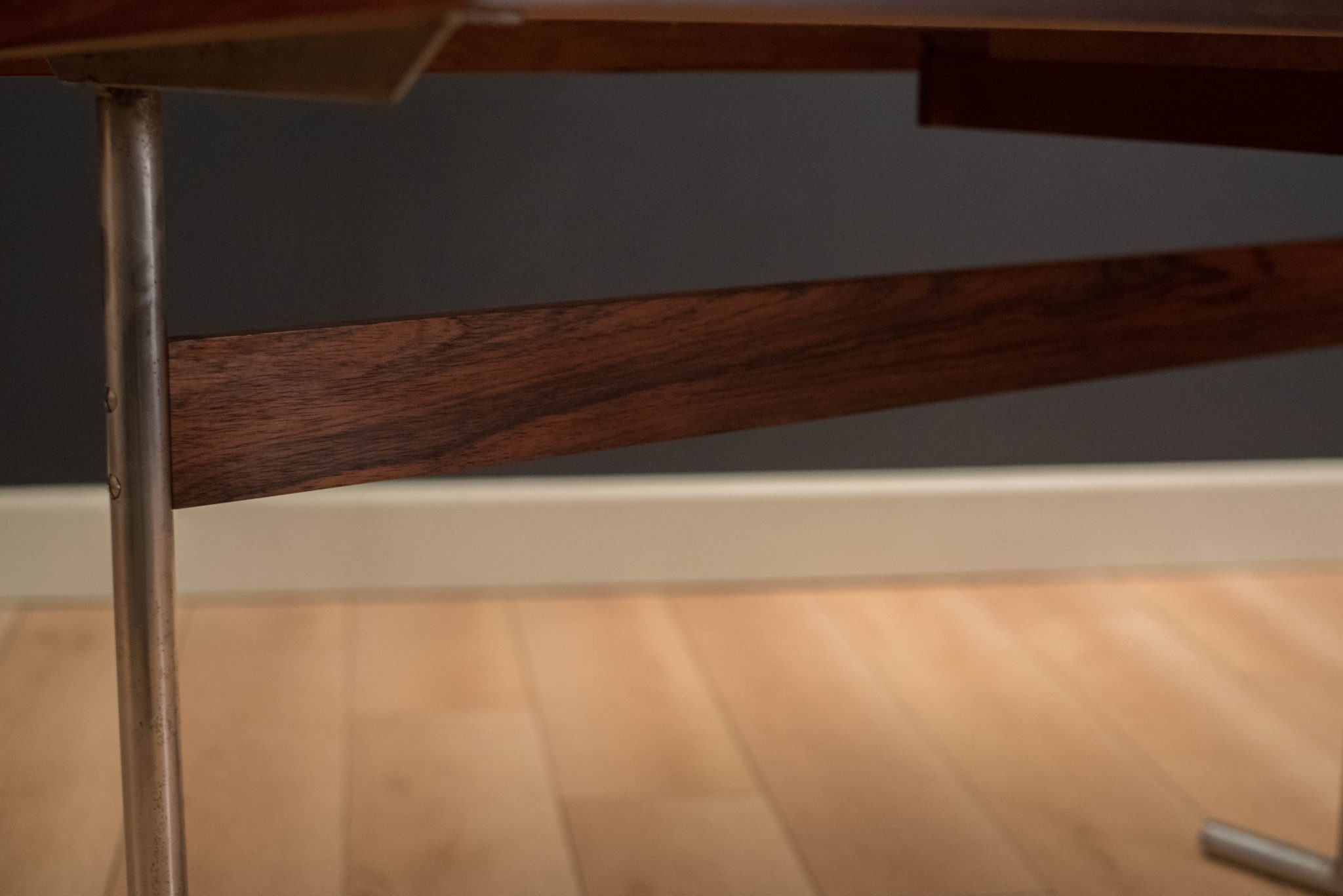 Vintage rosewood writing desk made in Western Germany. This piece features a raised edge table top and includes one storage drawer. Writing top is supported by an industrial style tubular chrome base.