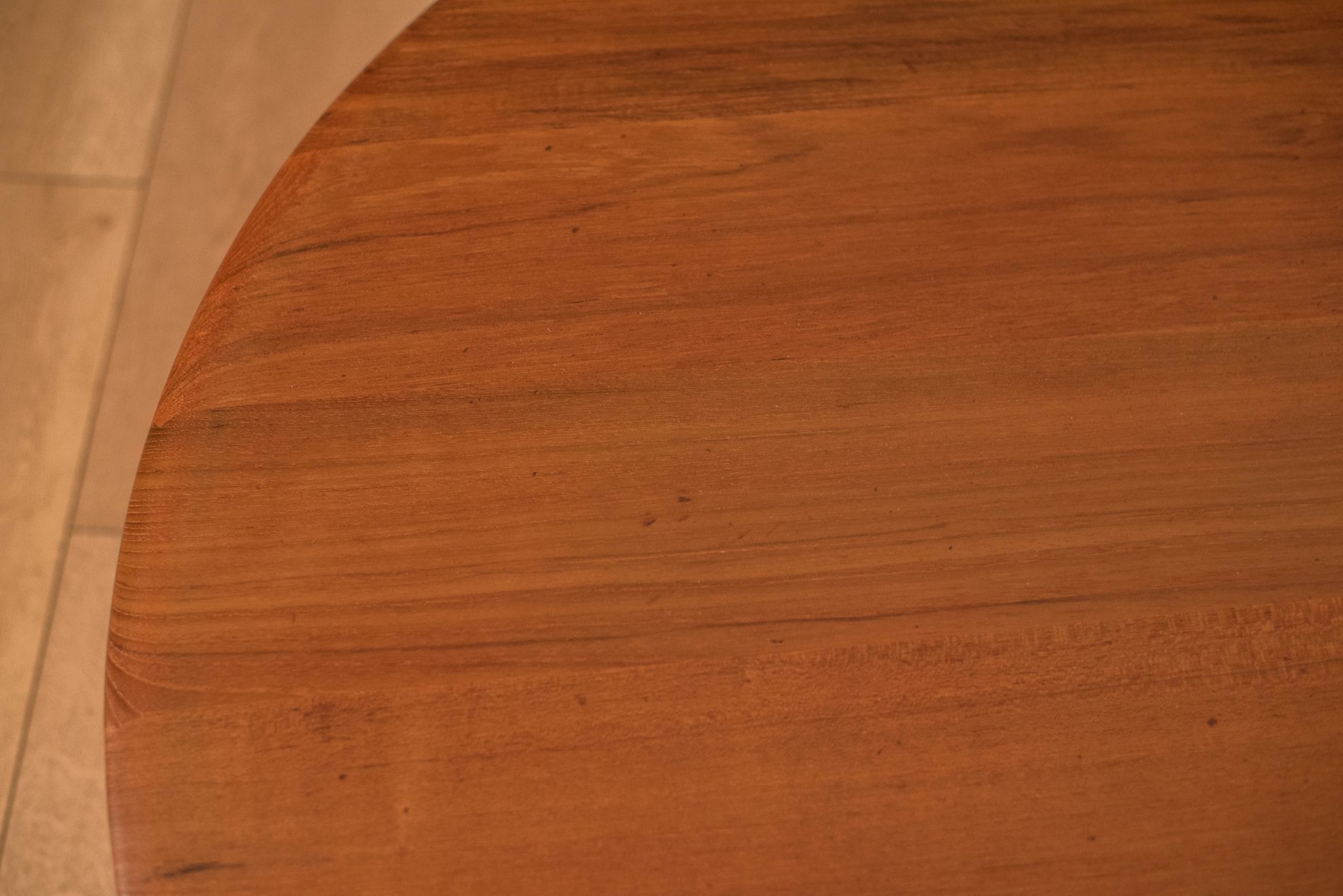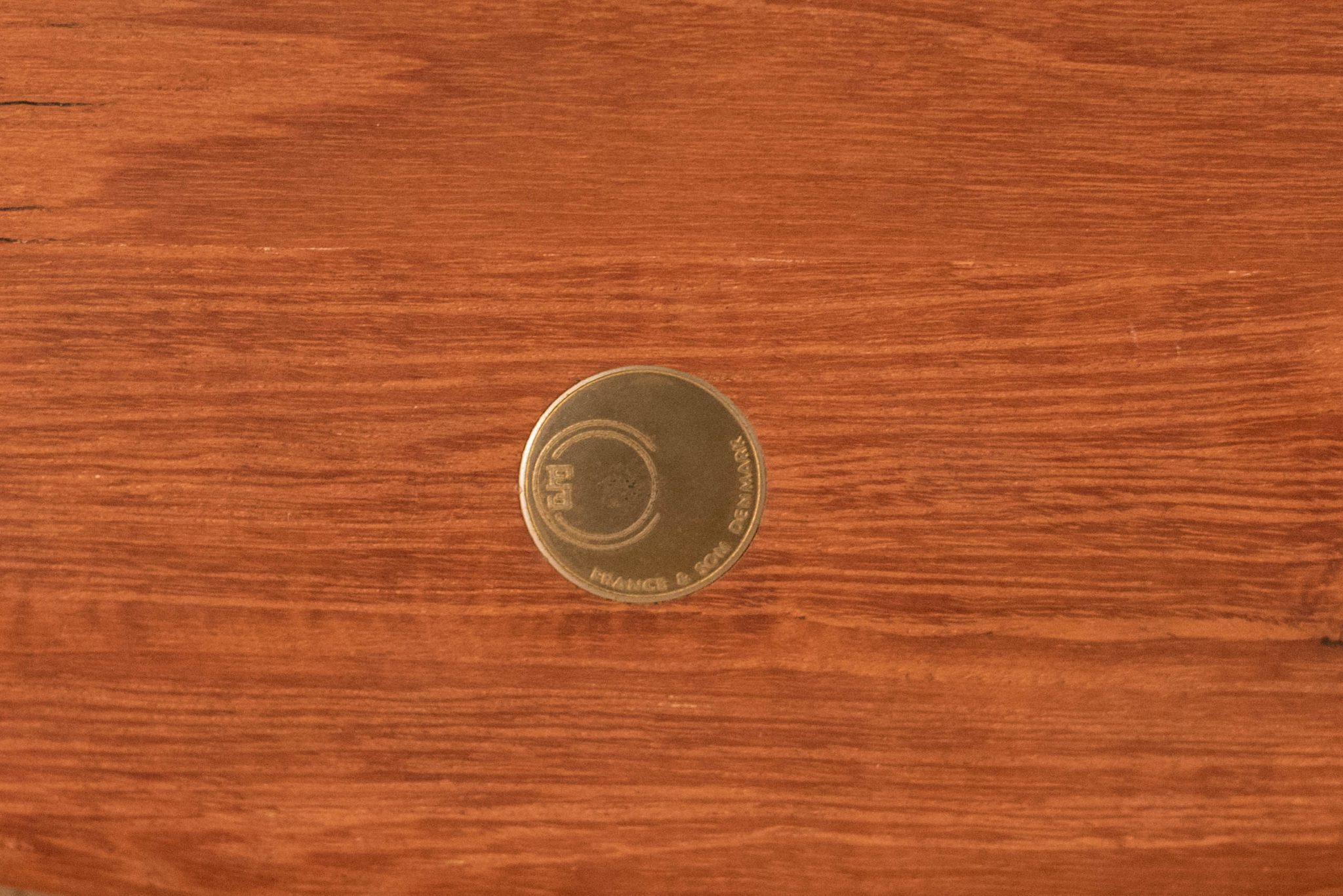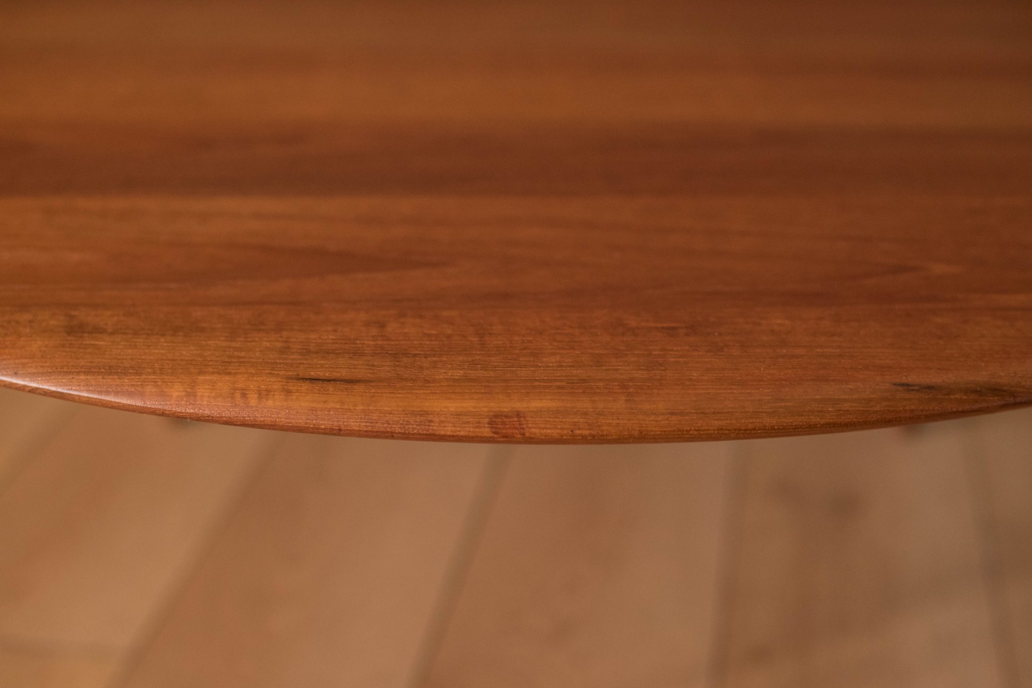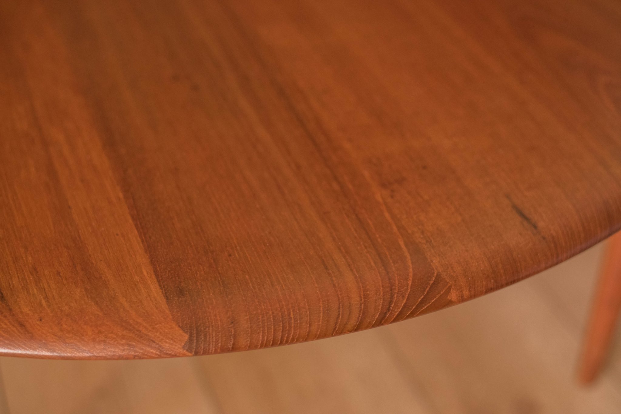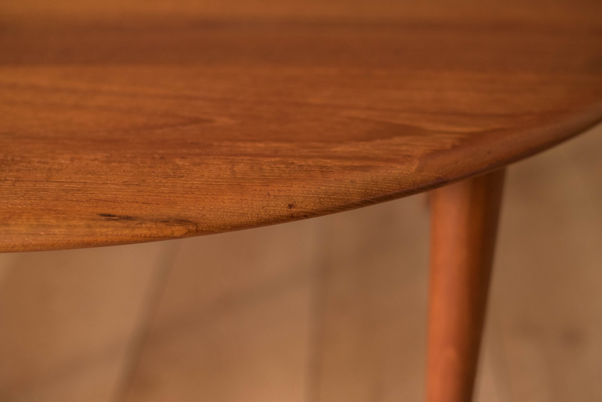 Vintage round coffee table model FD 515 designed by Peter Hvidt and Orla Mølgaard-Nielsen for France & Søn. This piece displays a low profile and is constructed of solid planked teak.