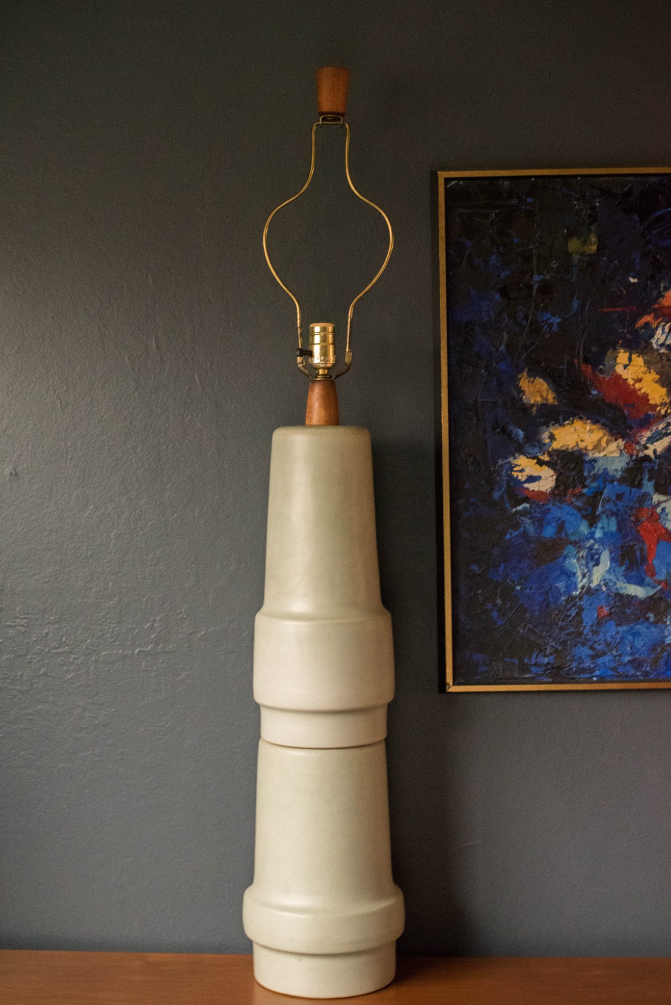 Mid Century Stacked Ceramic Pottery Table Lamp by Martz