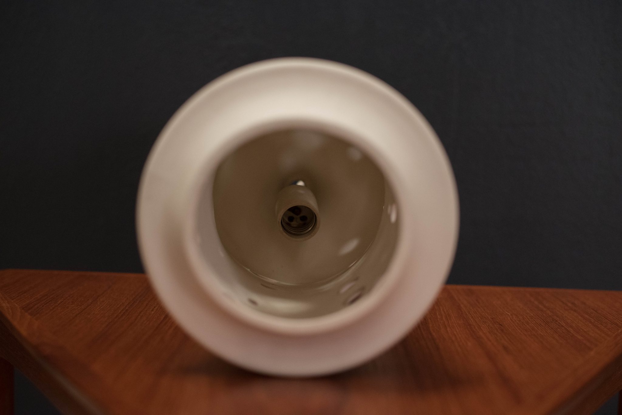 Mid Century Stoneware Pendant Fixture c. 1960’s. This piece features a unique shape in a white ceramic finish that illuminates when lit up. In great condition with minimal vintage wear.