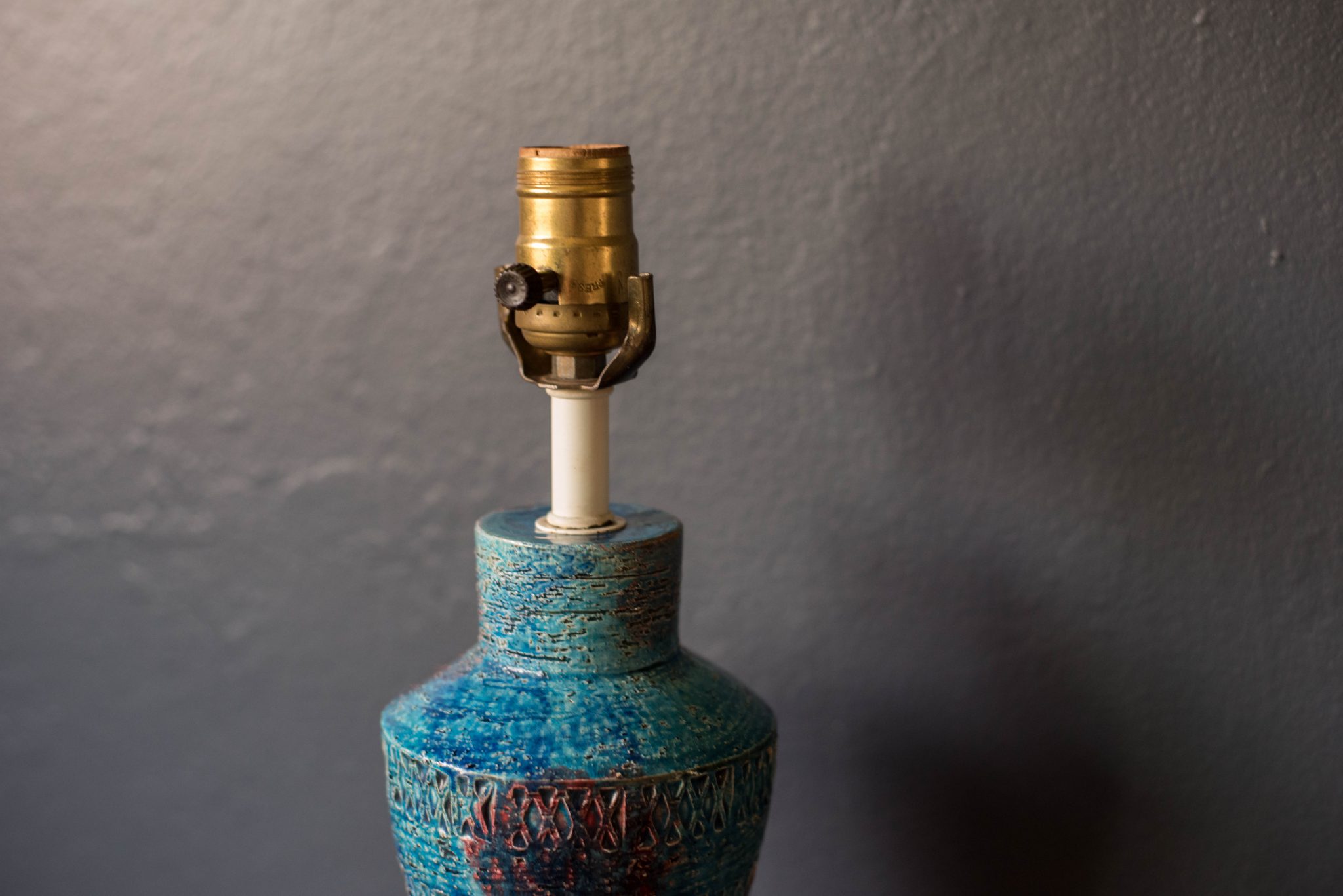 Mid Century Tall Rimini Blue Bitossi Lamp by Aldo Londi