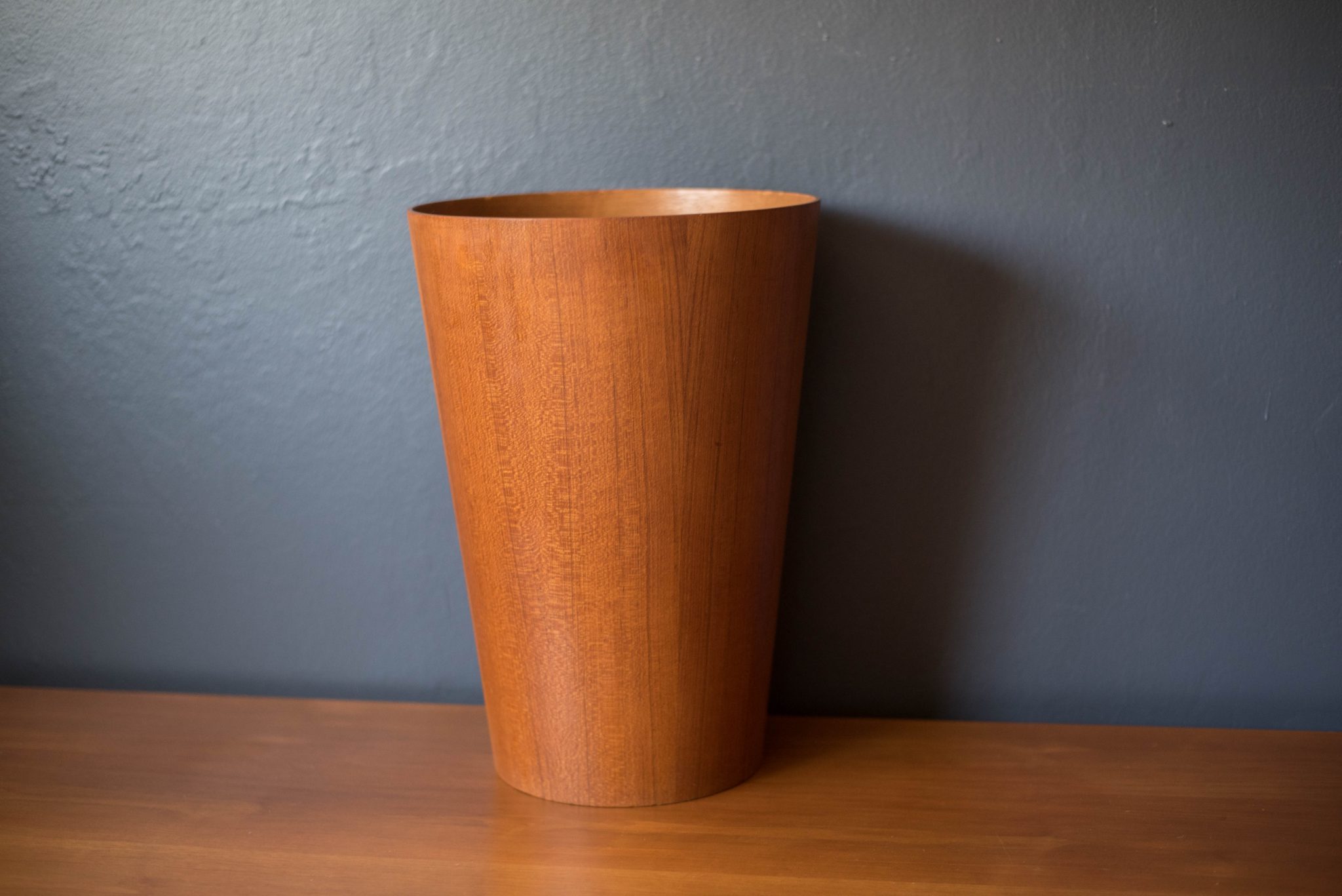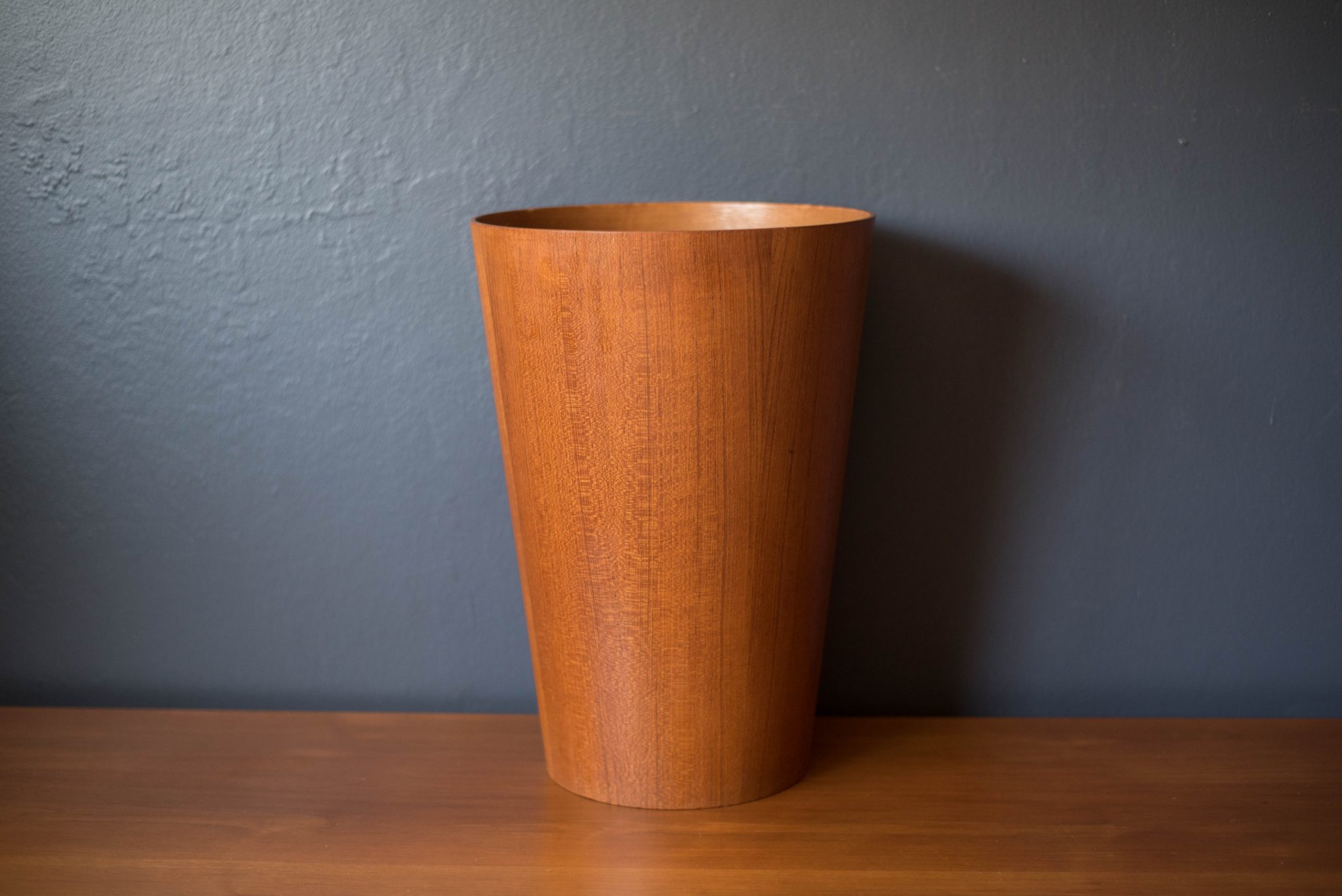 Vintage Mid Century Waste Paper Basket in teak. This piece works perfect in any office or modern decor. In good condition with minimal vintage wear.