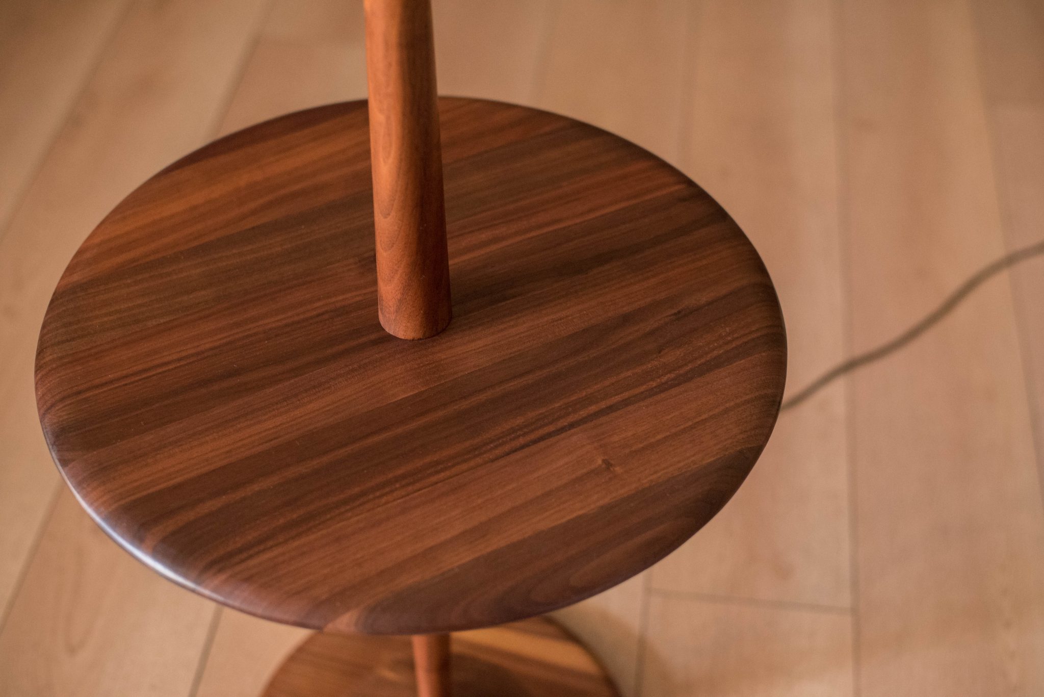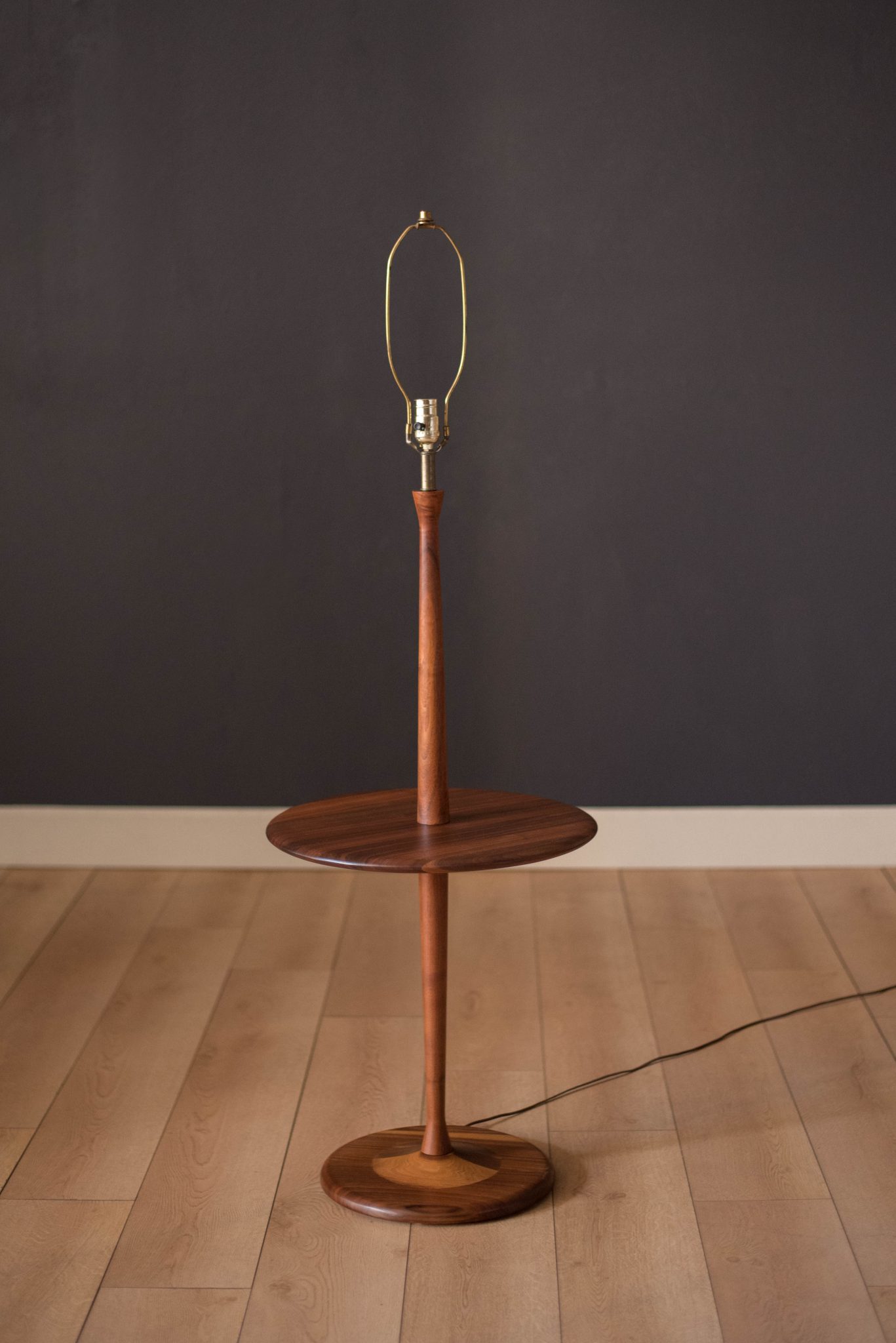 Mid Century Walnut Laurel Floor Lamp with Side Table